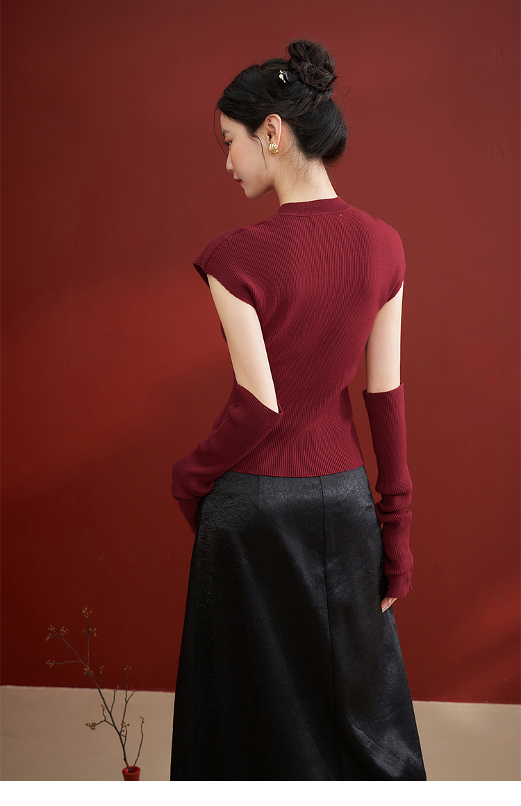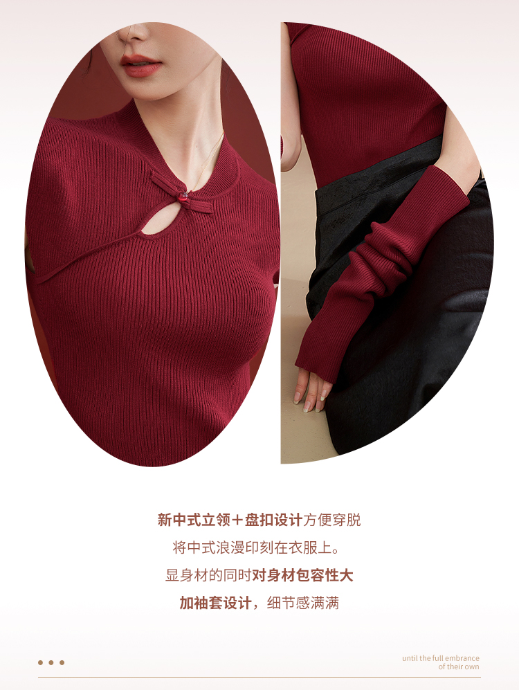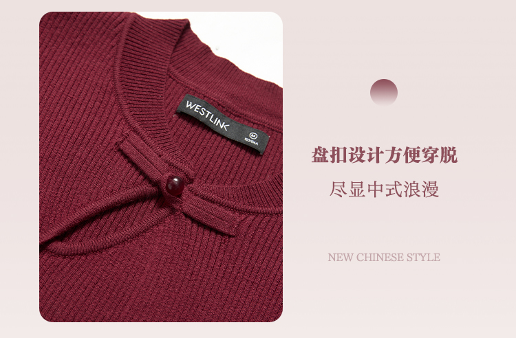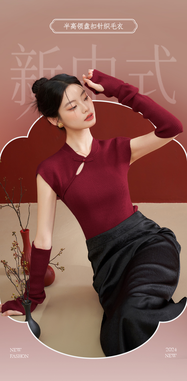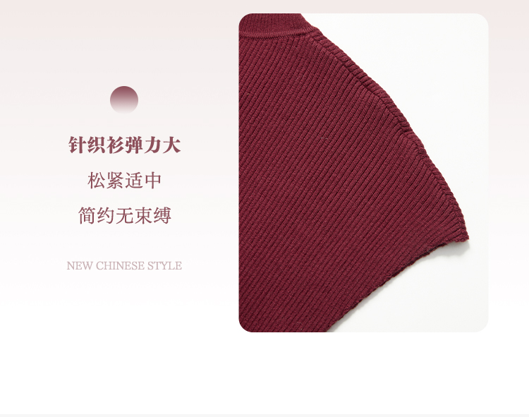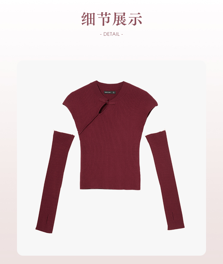 西遇新中式半高领盘扣针织毛衣女2024新款可拆卸袖套毛衣上衣10340089