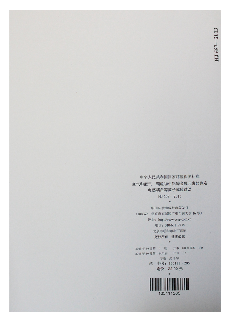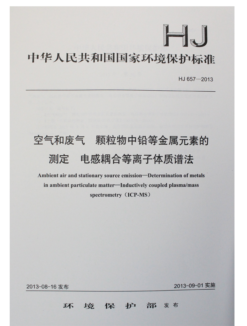 HJ 657-2013 空气和废气 颗粒物中铅等金属元素的测定 电感耦合等离子体质谱法GB环境保护中国环境出版社135111285