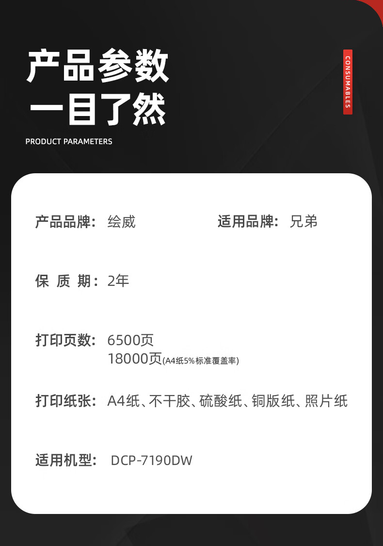 绘威7190dw粉盒适用兄弟DCP-7190DW打印机专用粉盒7190dw硒鼓墨粉墨盒 大容量墨粉盒