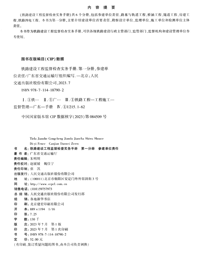 书名:铁路建设工程监督检查实务手册 第一分册 参建单位责任