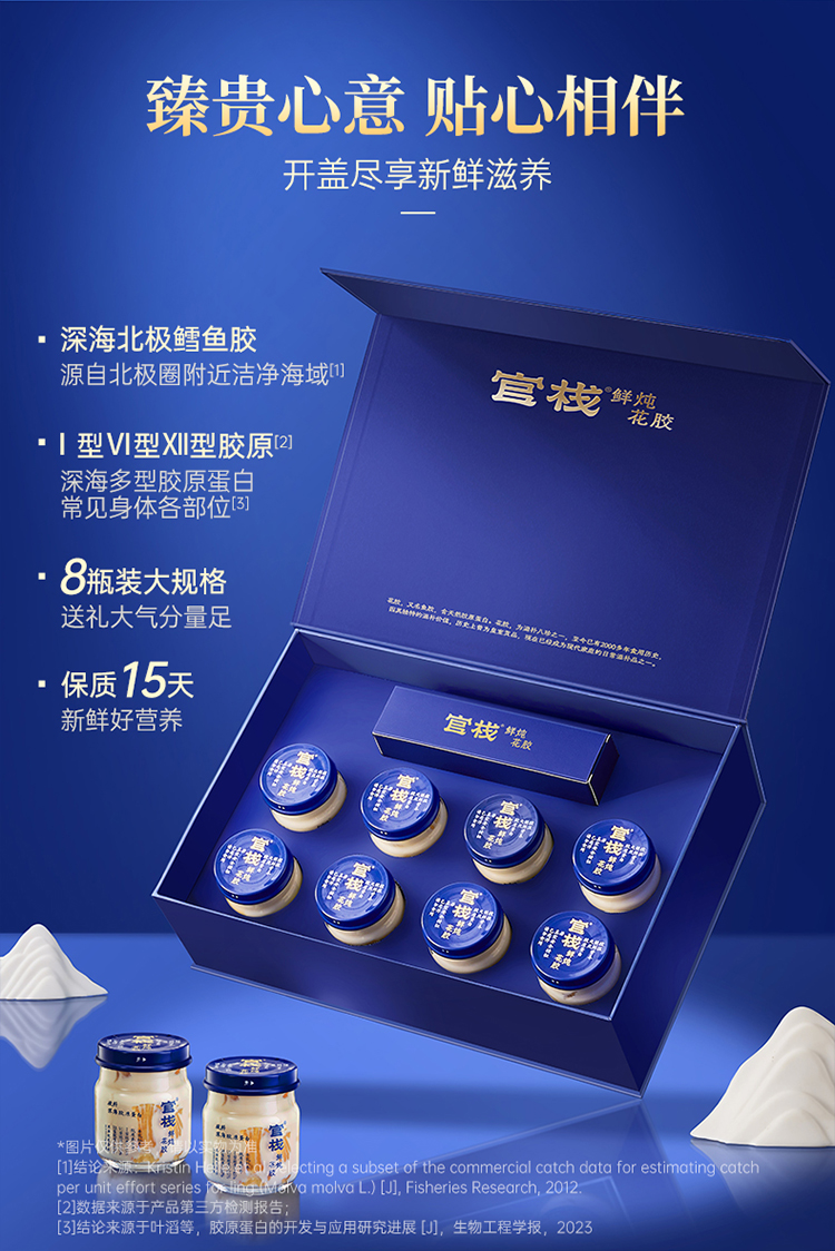 【私信门店顾问享专属折扣】礼盒款-官栈鲜炖花胶·凝粹系列 北极圈洁净海域 深海天然胶原蛋白(75g*8瓶)