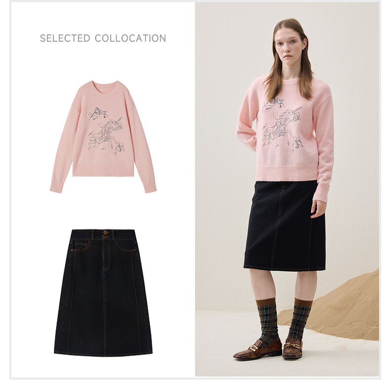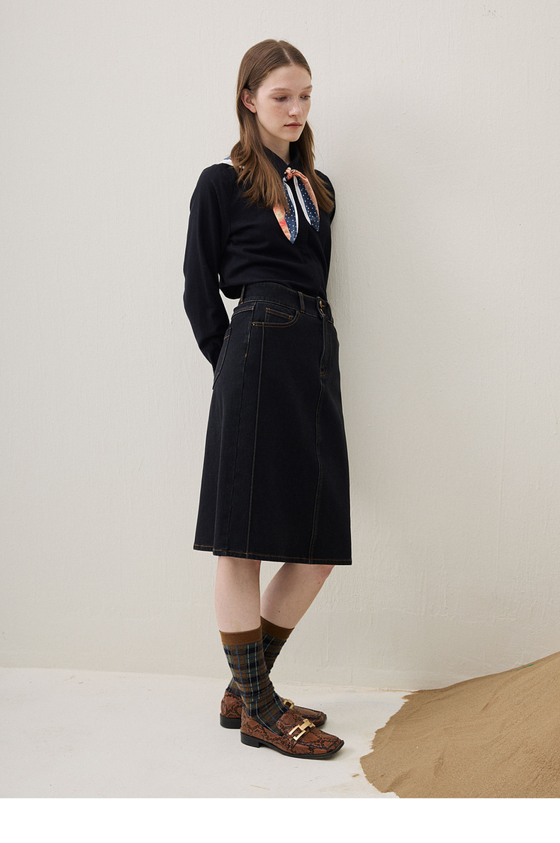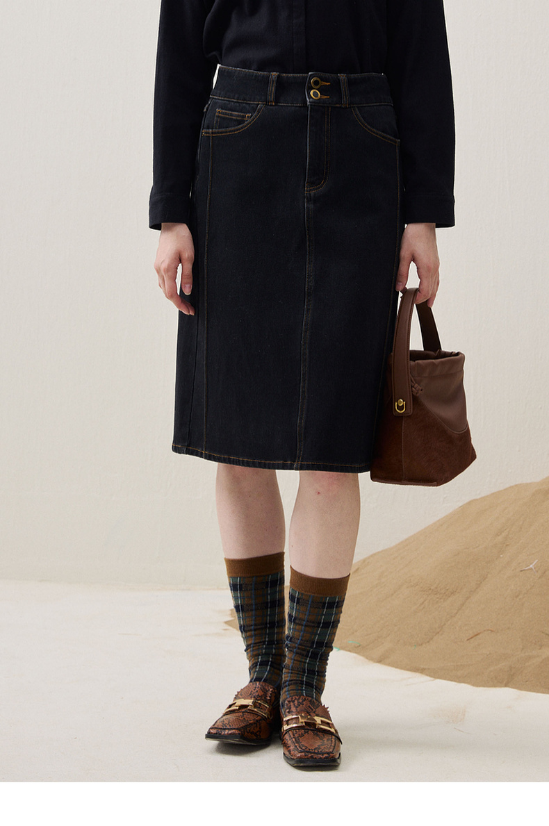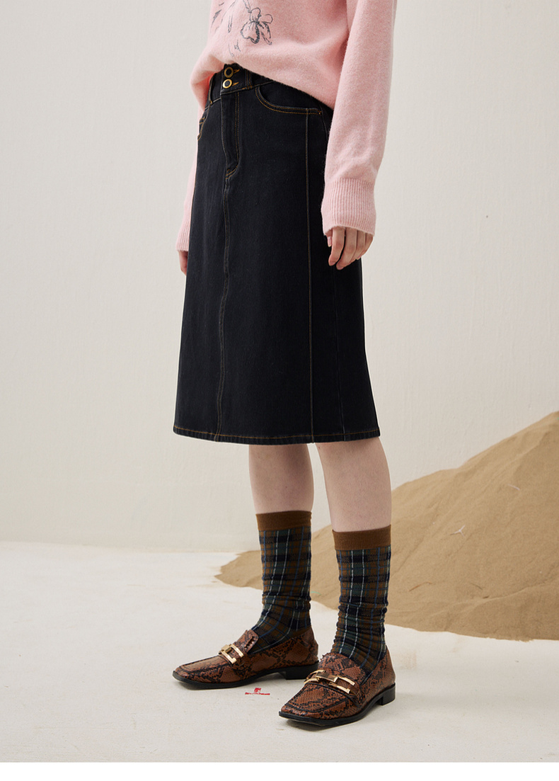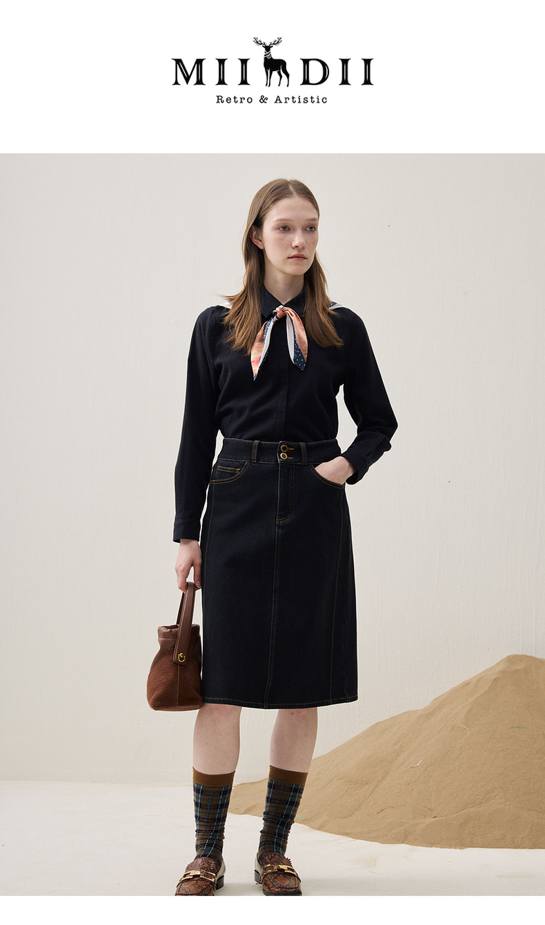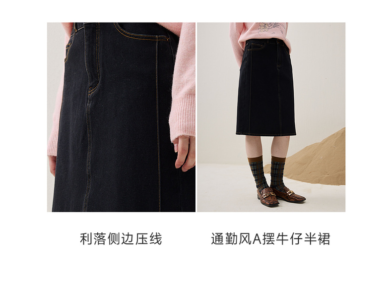 谜底牛仔半裙2025年冬季新品磨毛牛仔不掉色压线显瘦女254MB1452