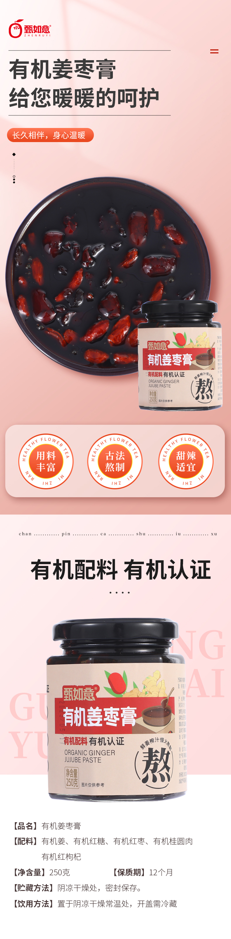 有机姜枣膏250g瓶装