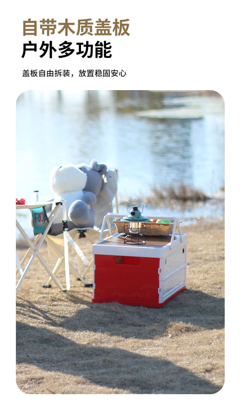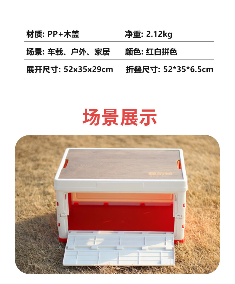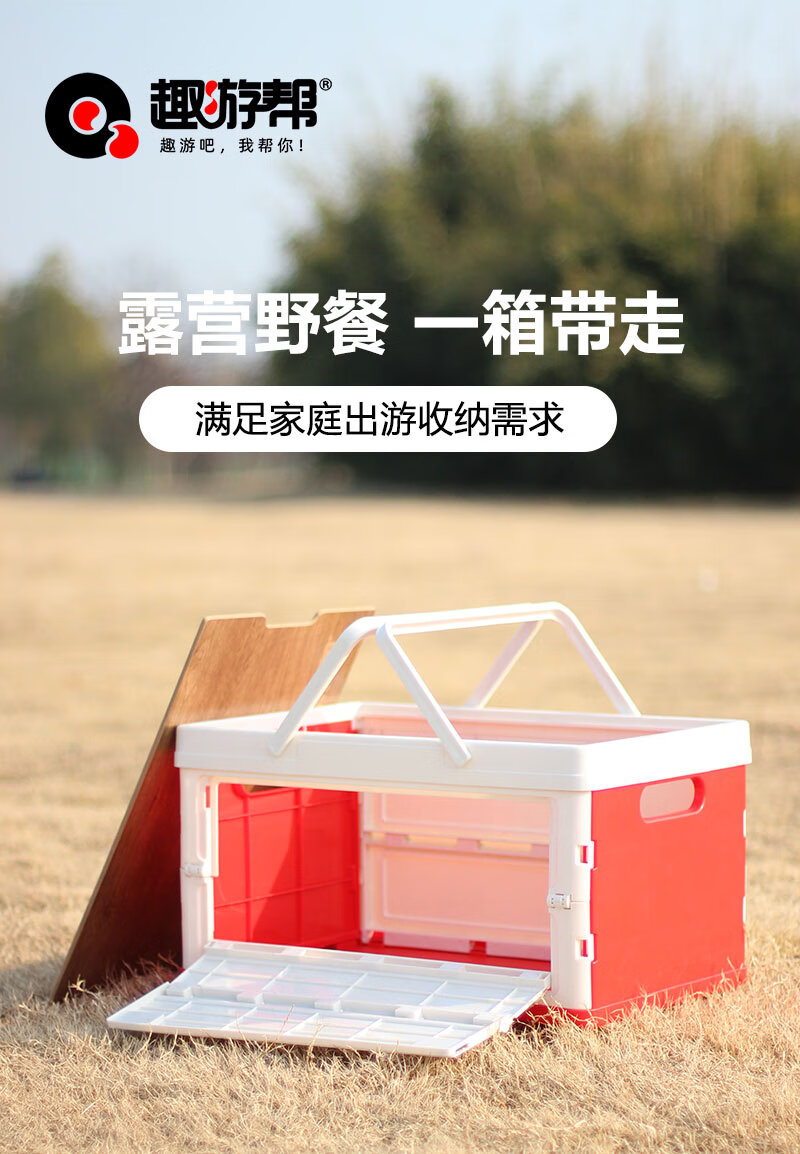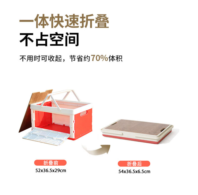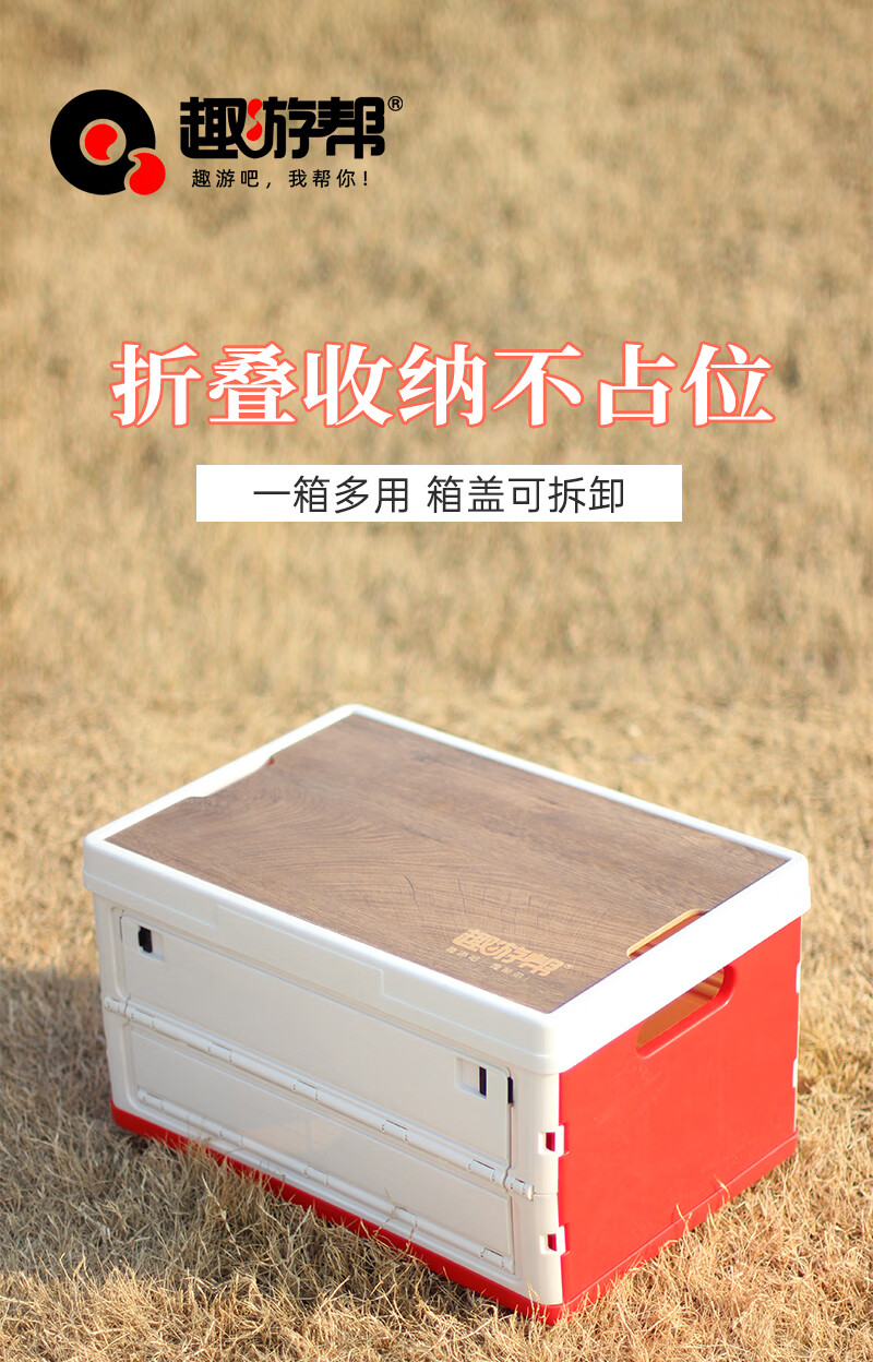 【小家电】趣游帮侧开木盖款折叠收纳箱55L Q55-C HF