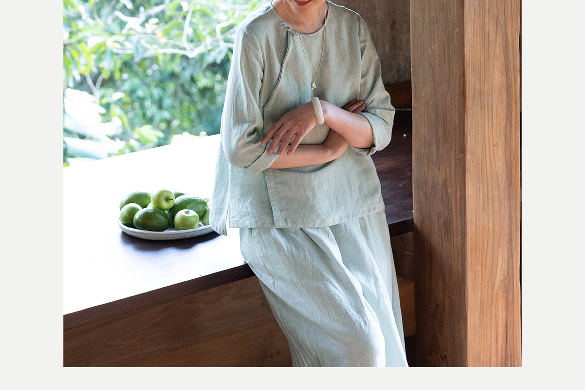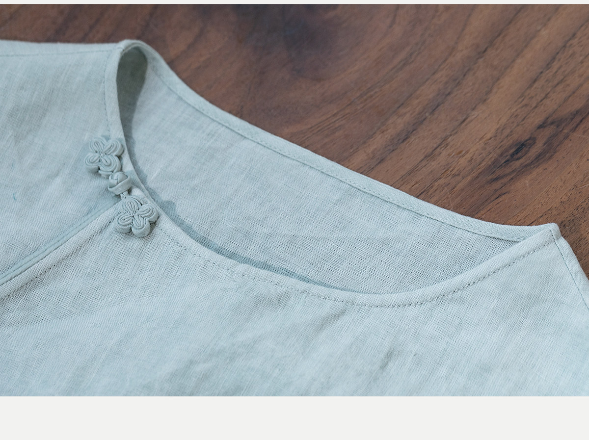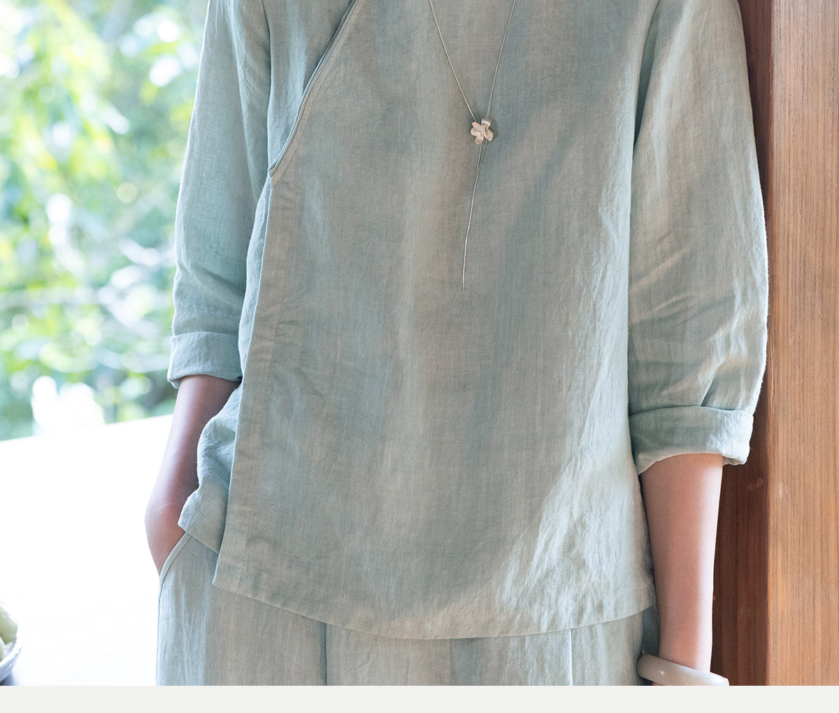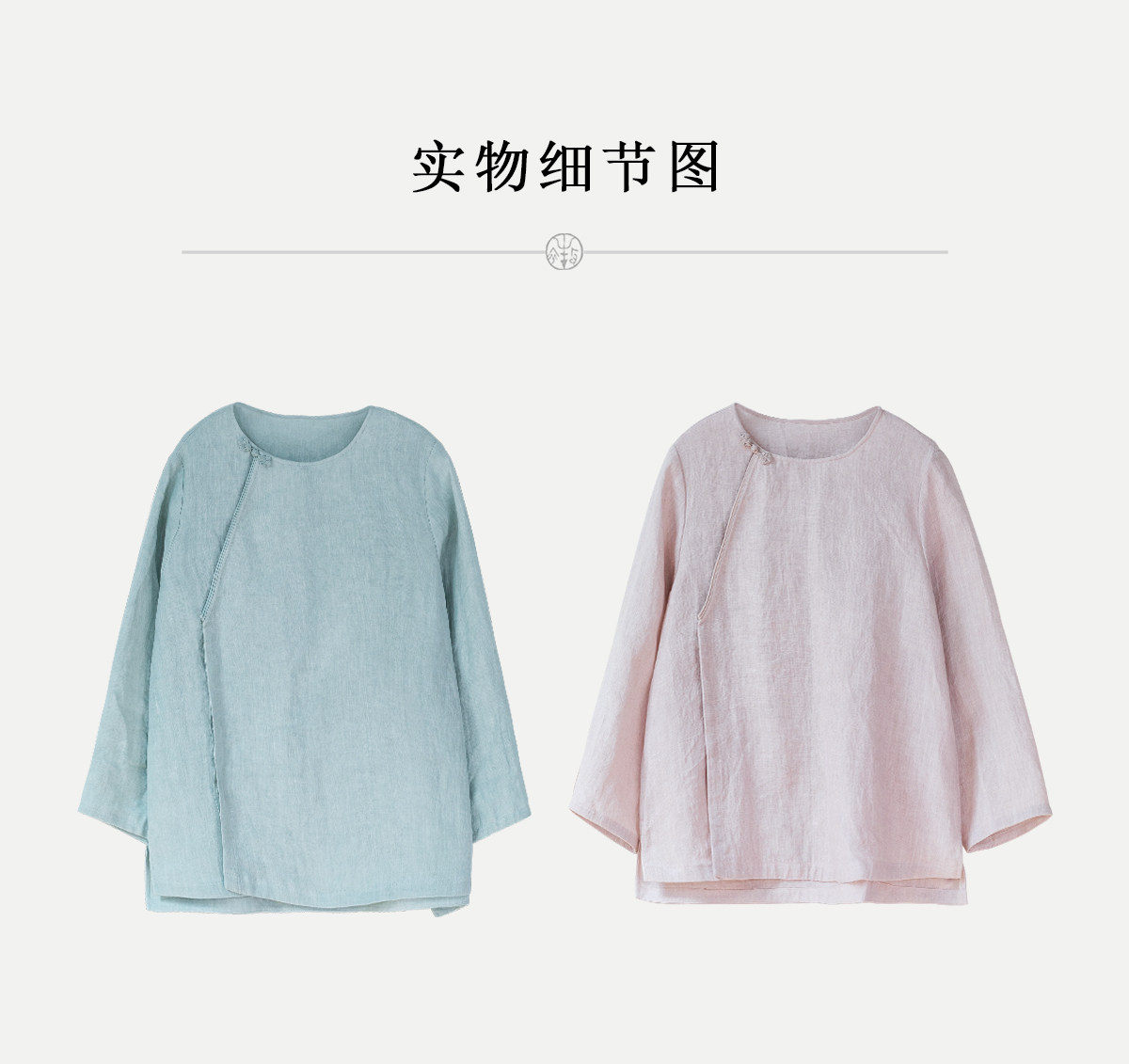 牧衣游原创 净色汉麻衬衫女新款轻薄柔软极简斜襟中式风衬衣 苍桧