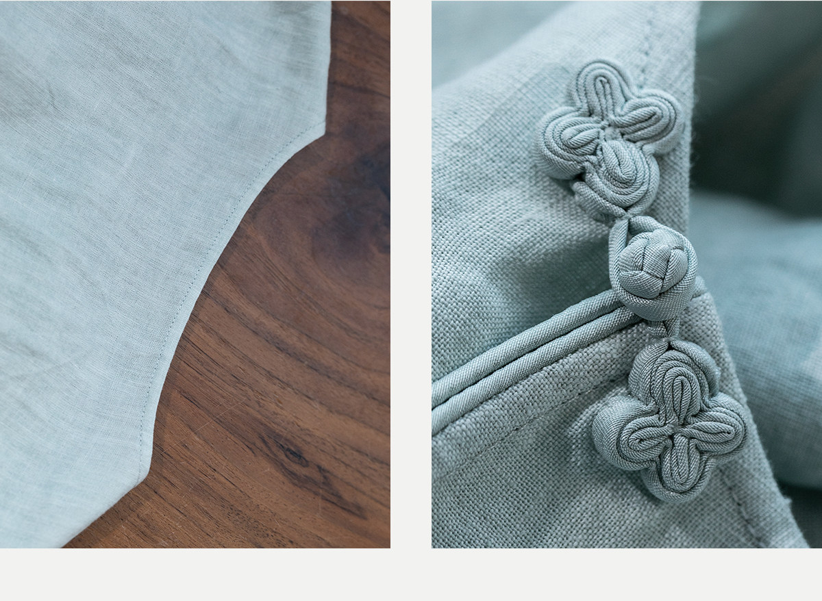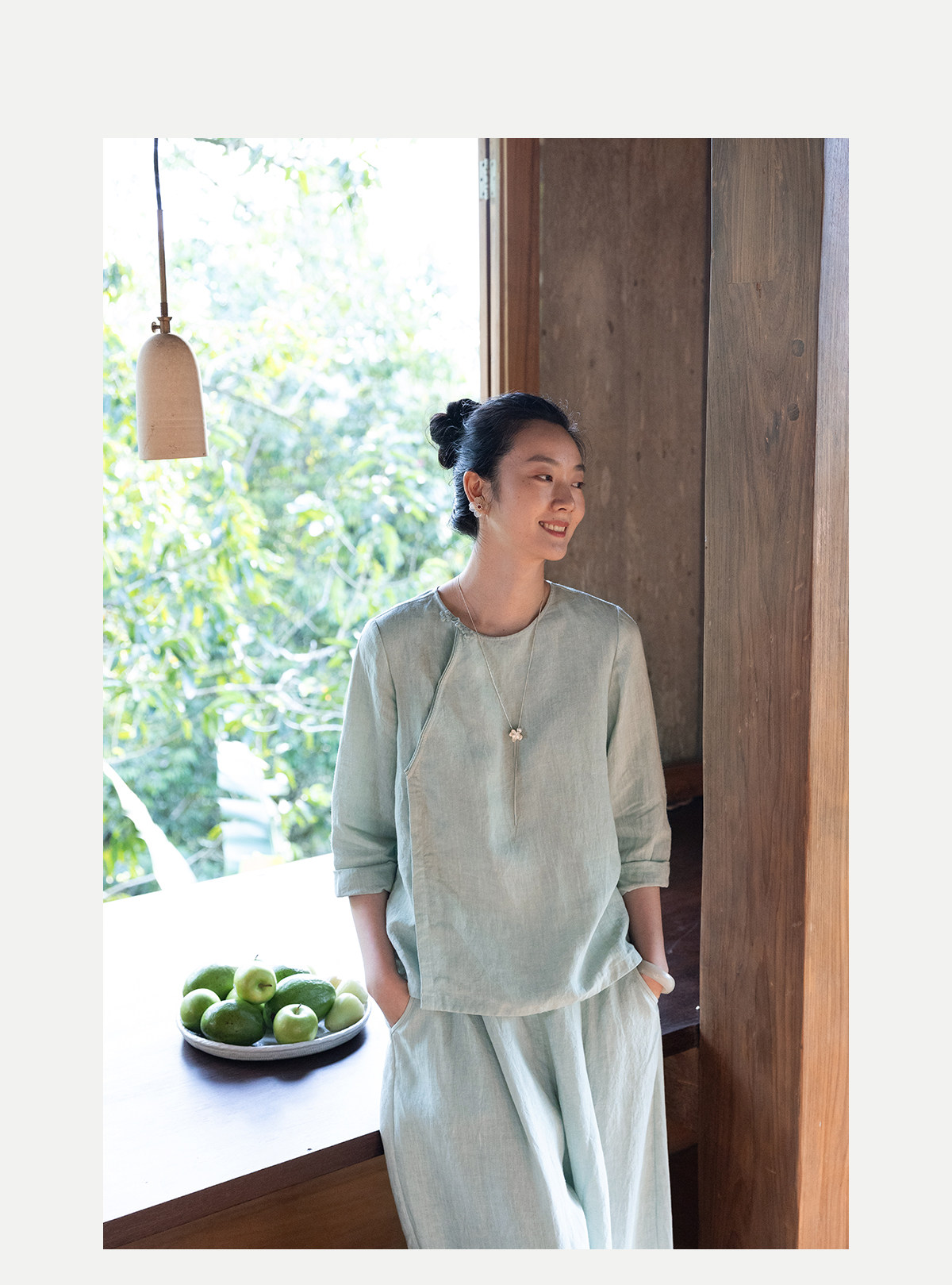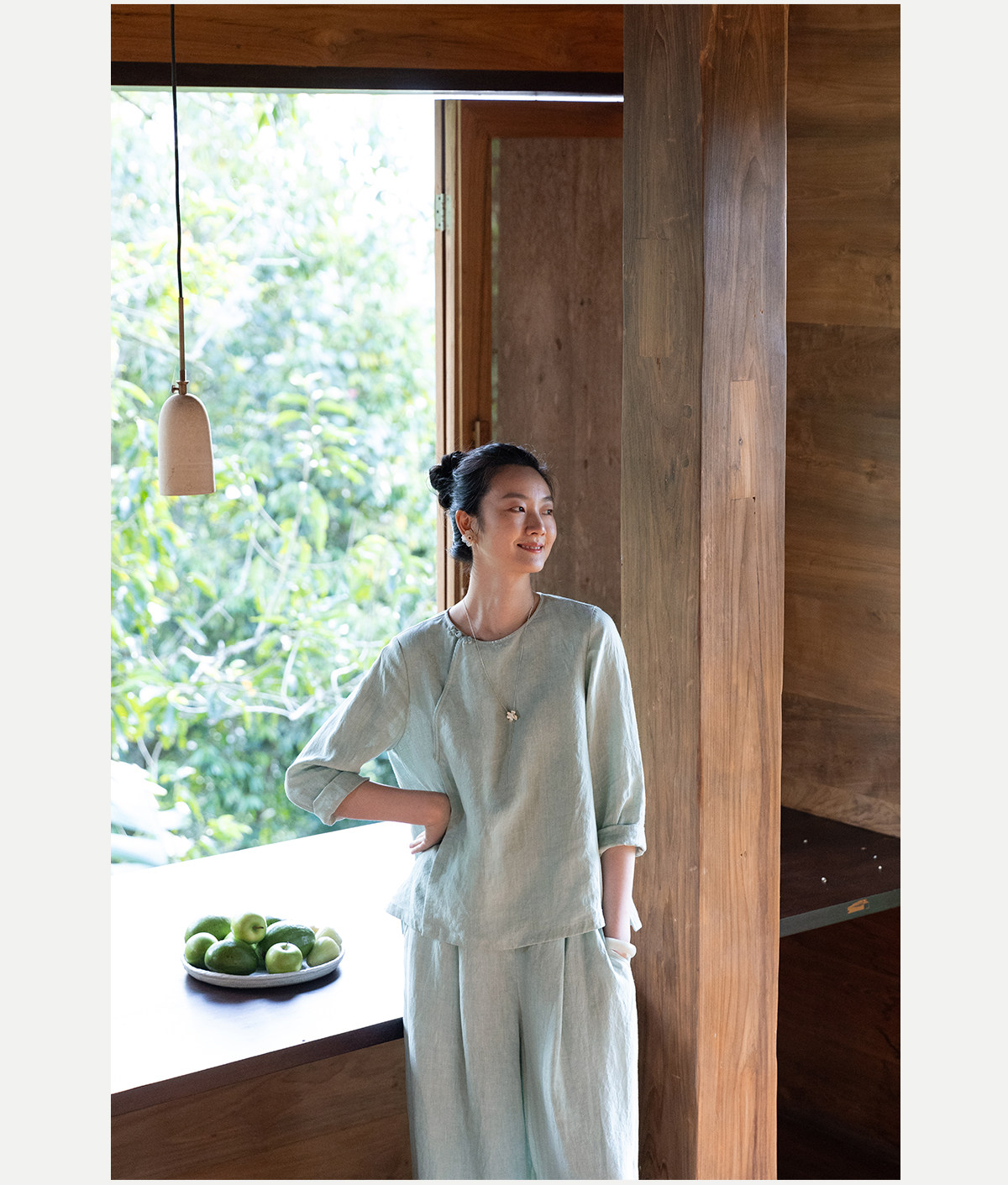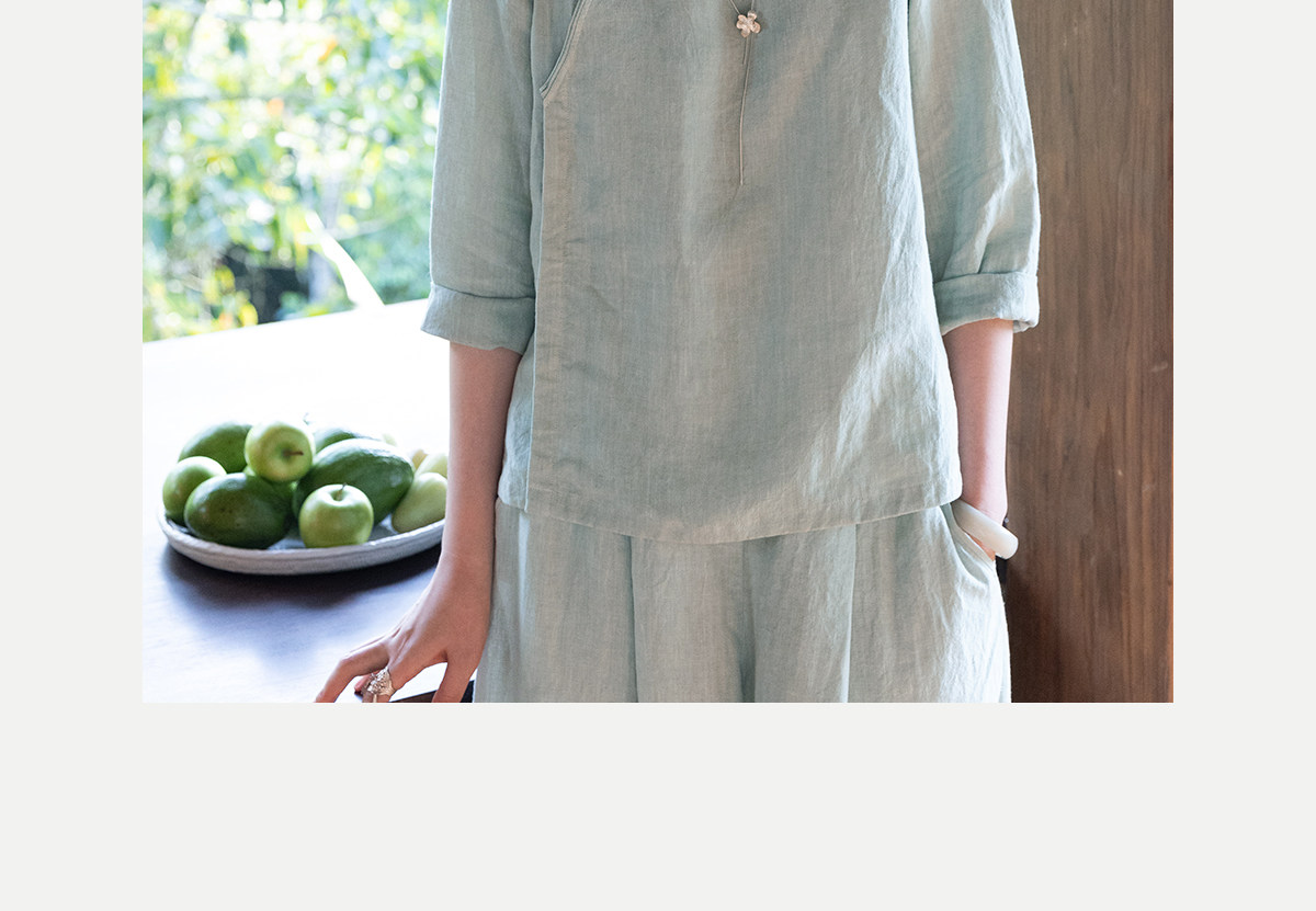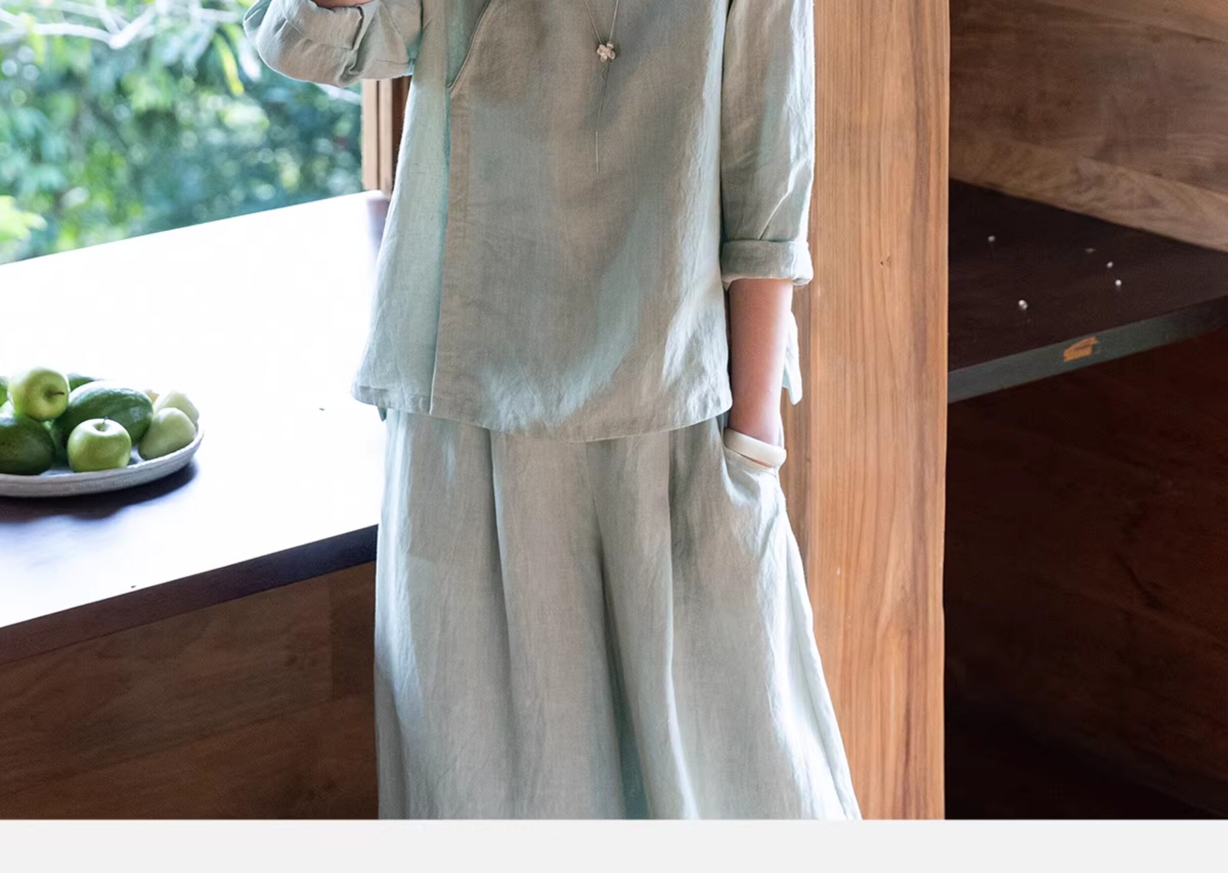 牧衣游原创 净色汉麻衬衫女新款轻薄柔软极简斜襟中式风衬衣 苍桧