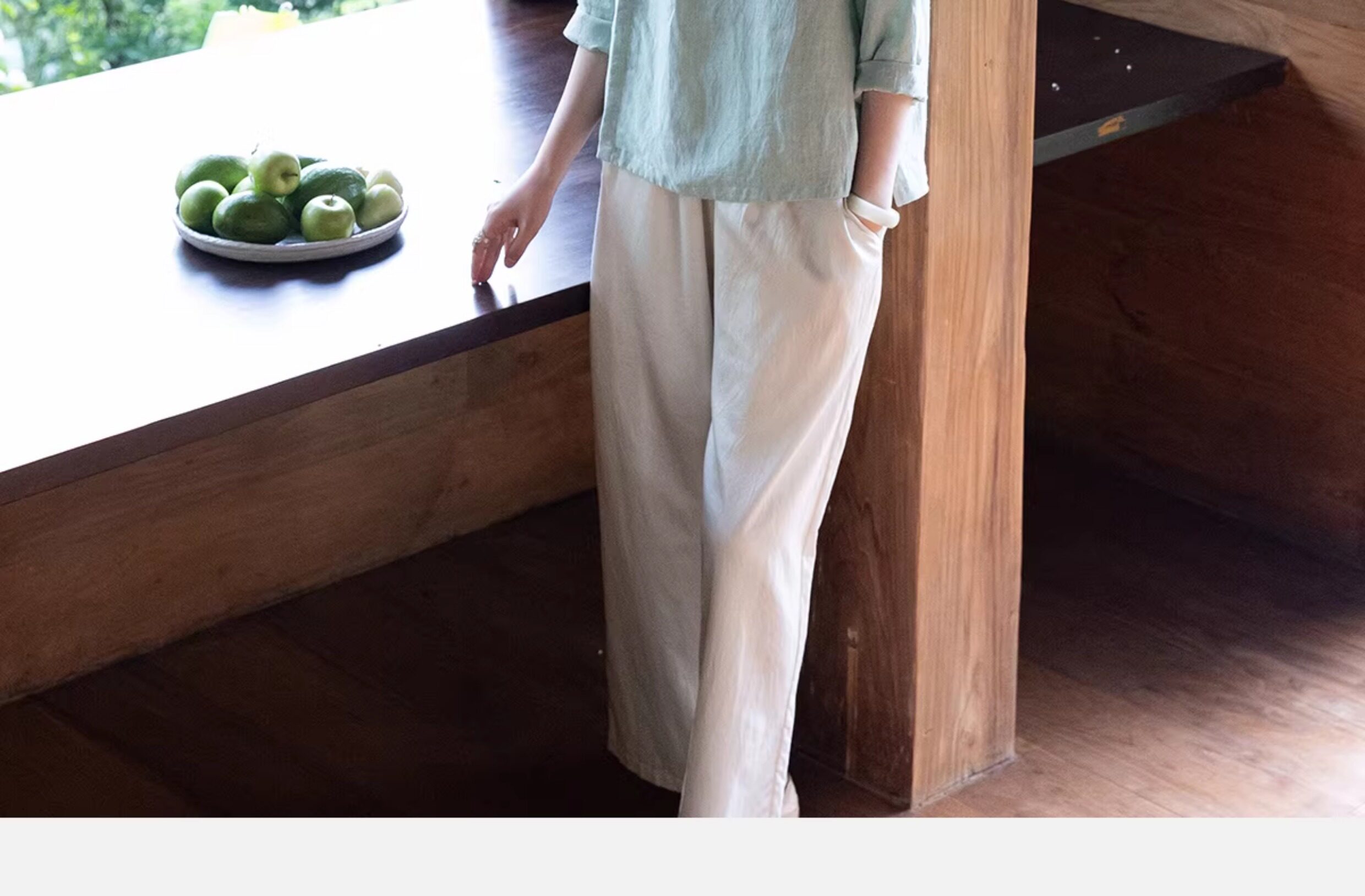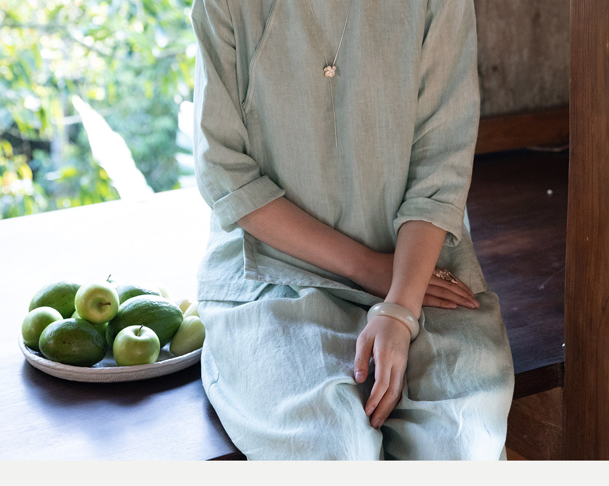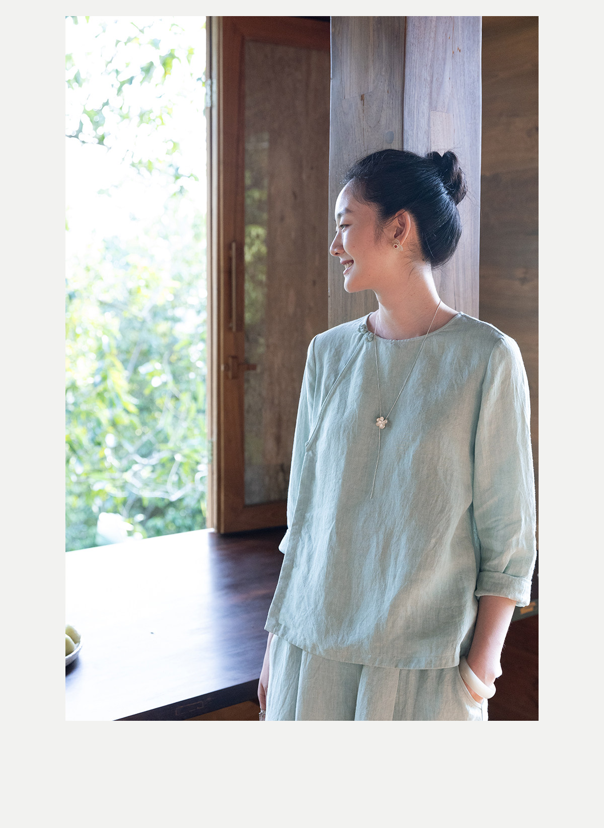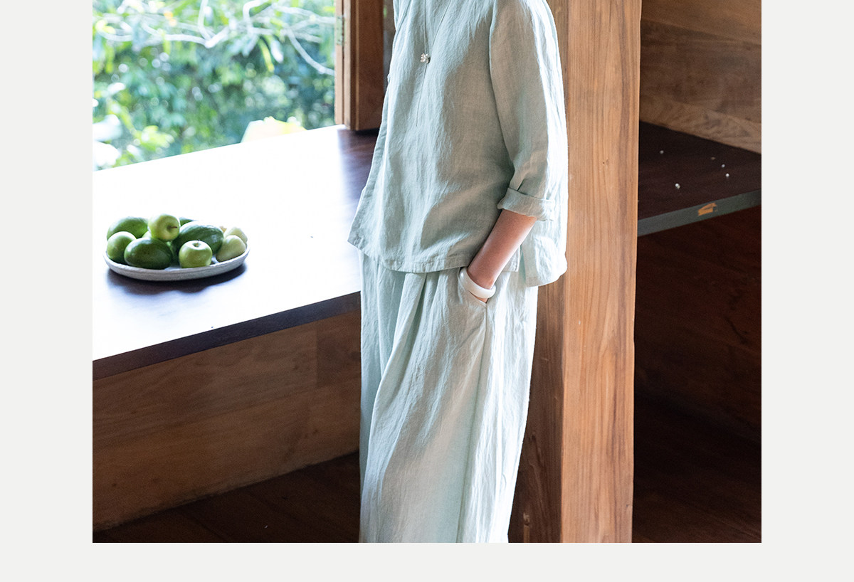 牧衣游原创 净色汉麻衬衫女新款轻薄柔软极简斜襟中式风衬衣 苍桧