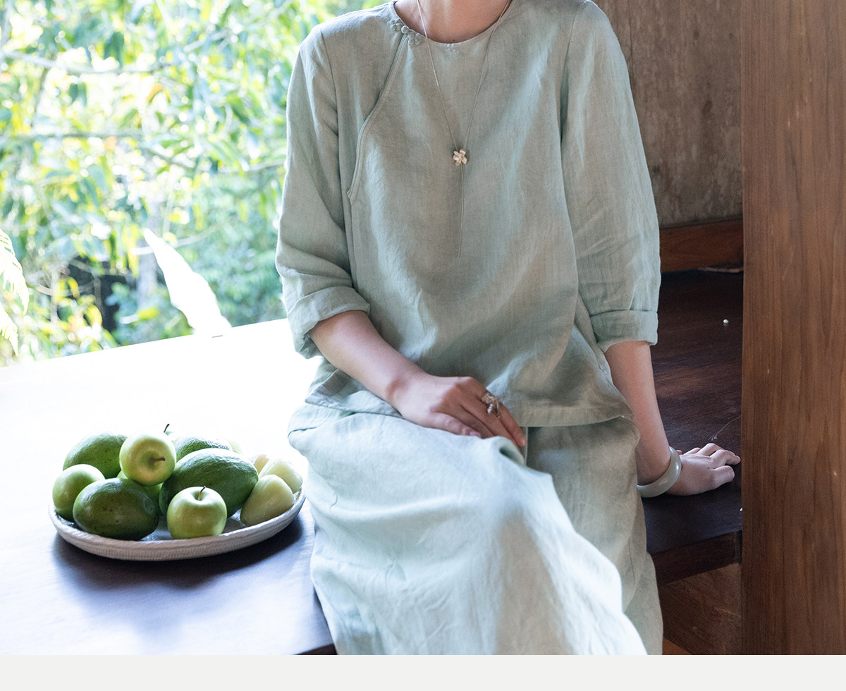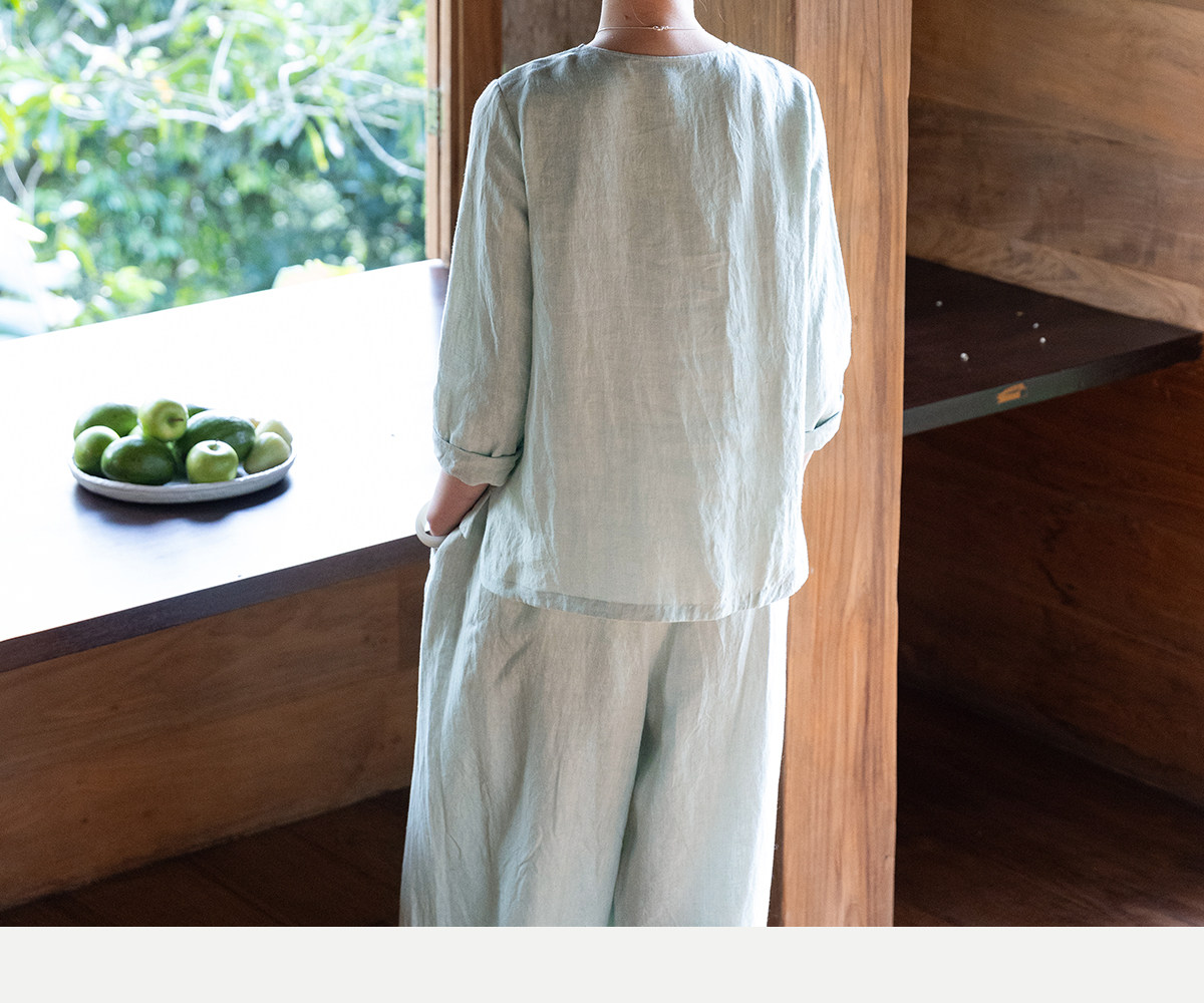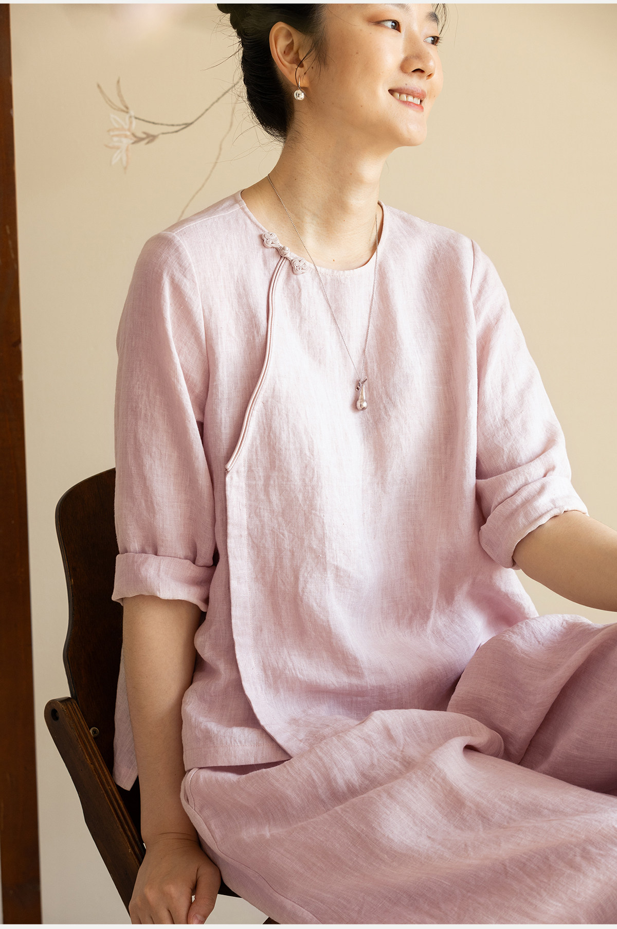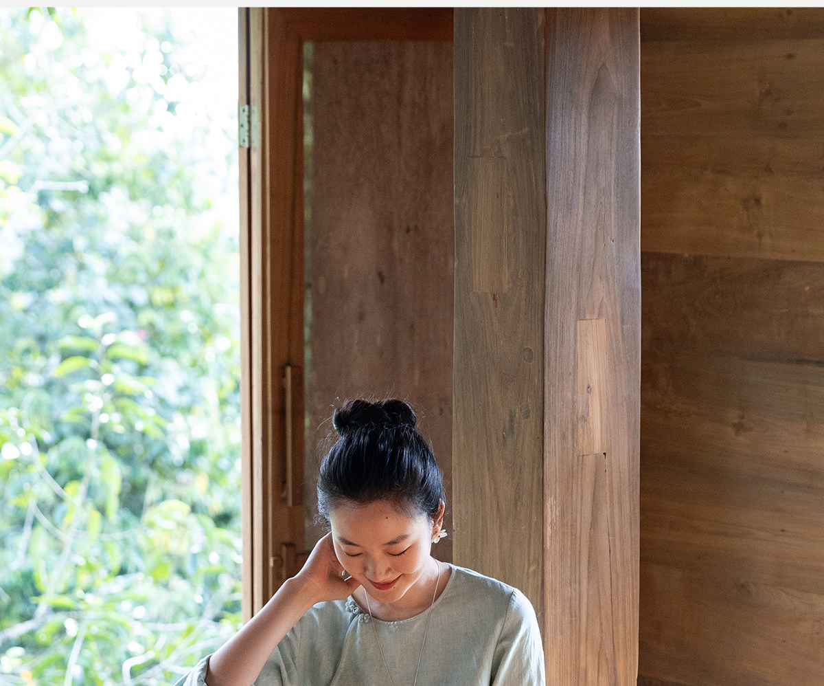 牧衣游原创 净色汉麻衬衫女新款轻薄柔软极简斜襟中式风衬衣 苍桧