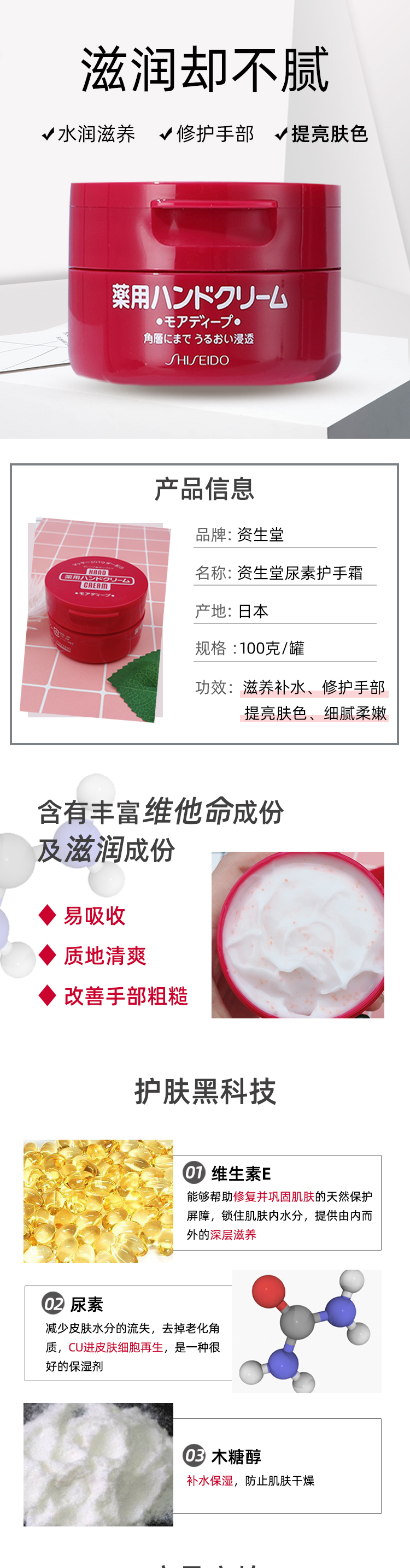 SHISEIDO资生堂 护手霜红罐滋润保湿冬季防干裂滋润保湿 100g【不足200元订单,默认顺丰快递到付】