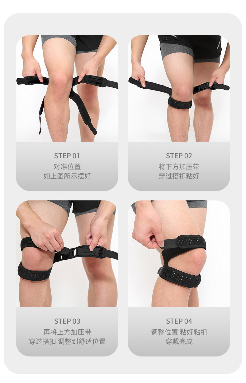 升级半月板运动髌骨带防滑硅胶运动护膝可调节带稳定减震髌骨护具
