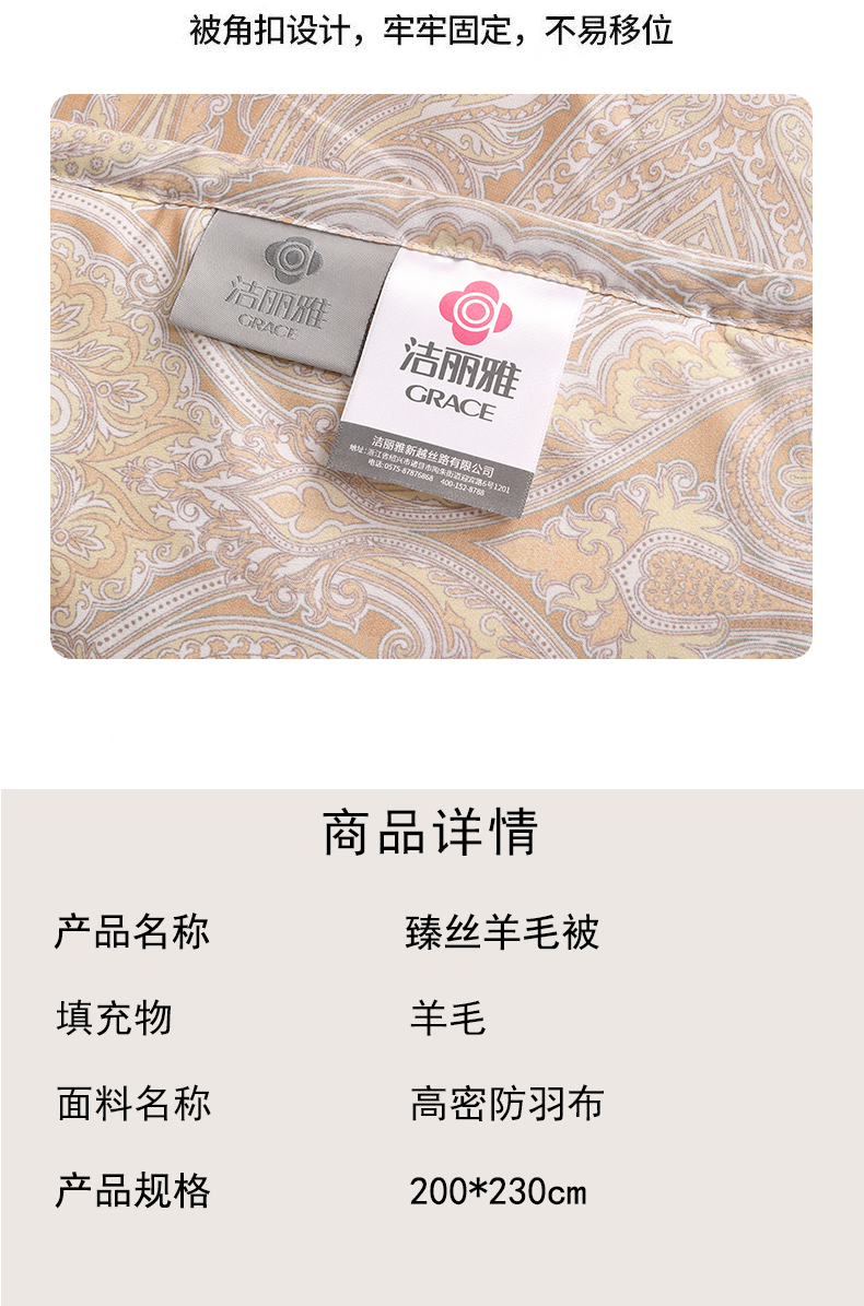 洁丽雅丨臻丝羊毛被 JLY-YHK016