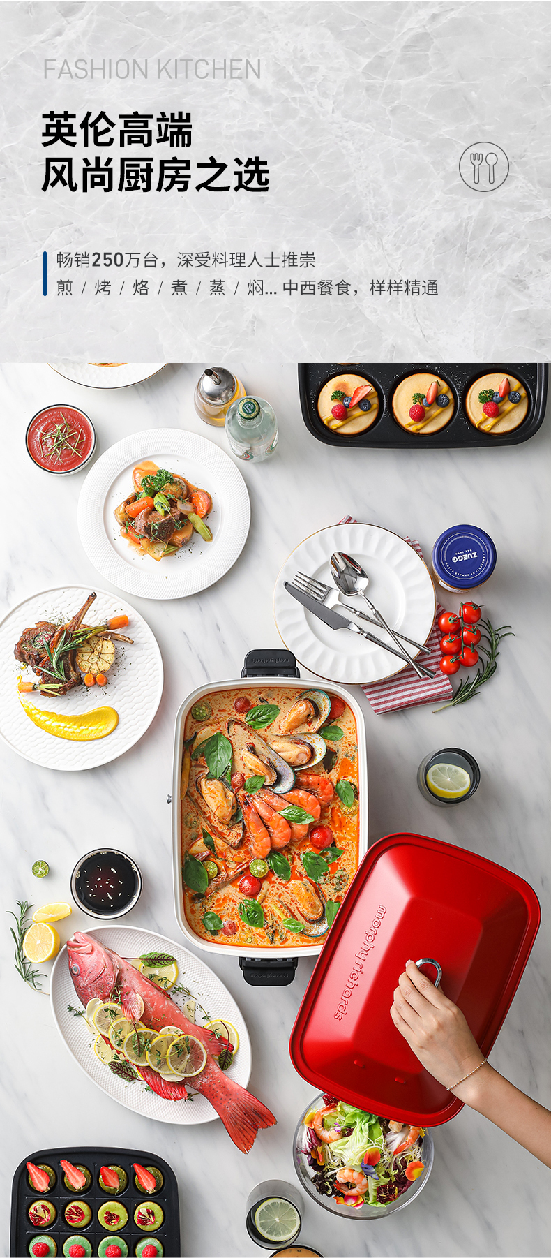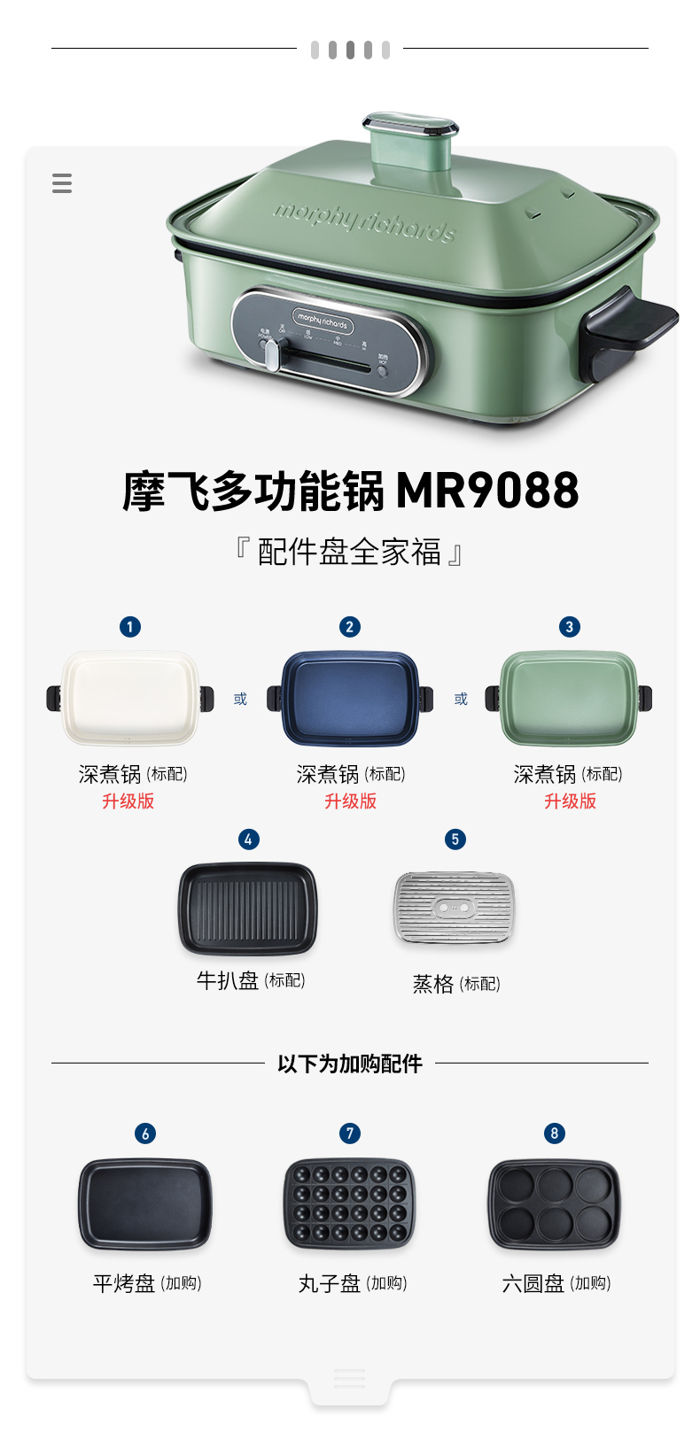 【100代金券】Morphy Richards/摩飞 多功能料理锅MR9088 全套6盘 [福利品]