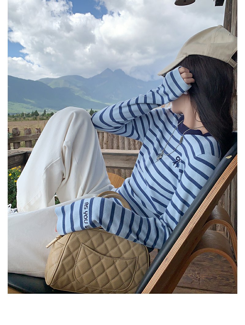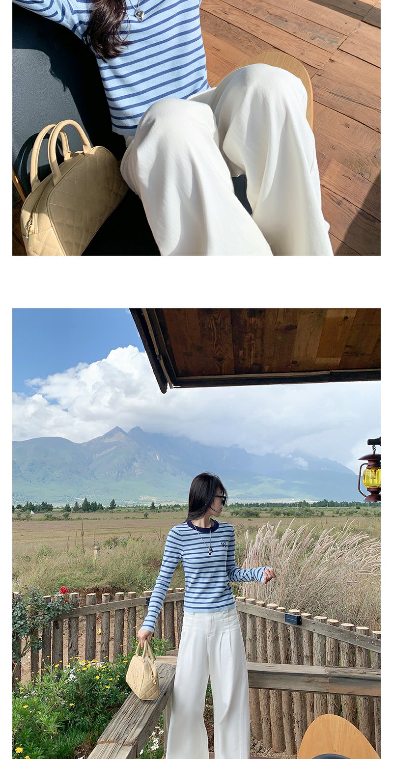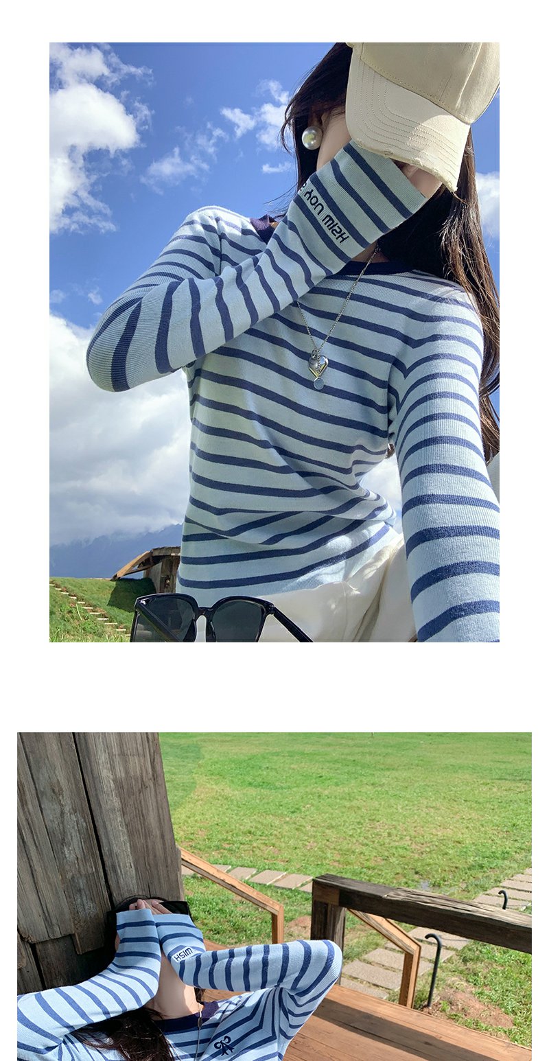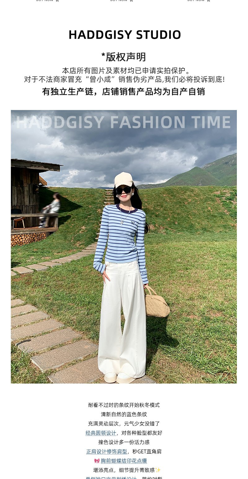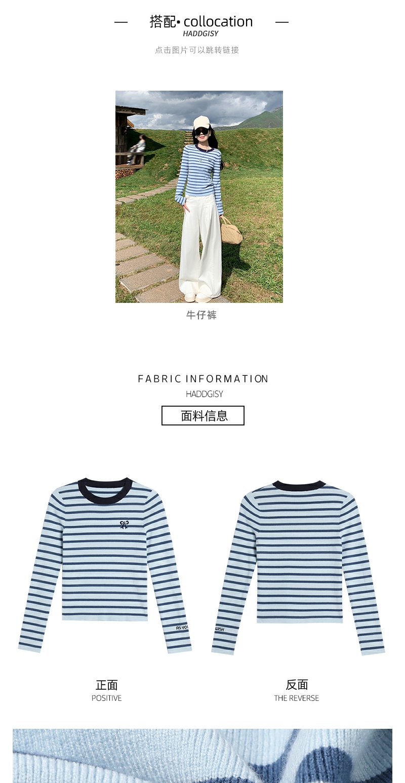 <曾小咸推荐>百搭休闲蓝色条纹修身针织衫
