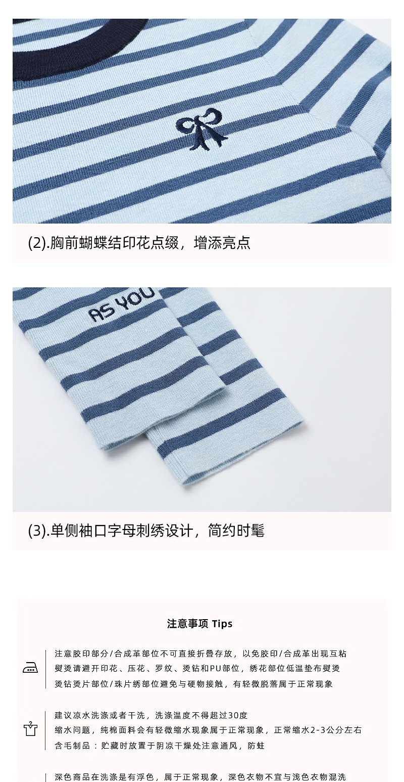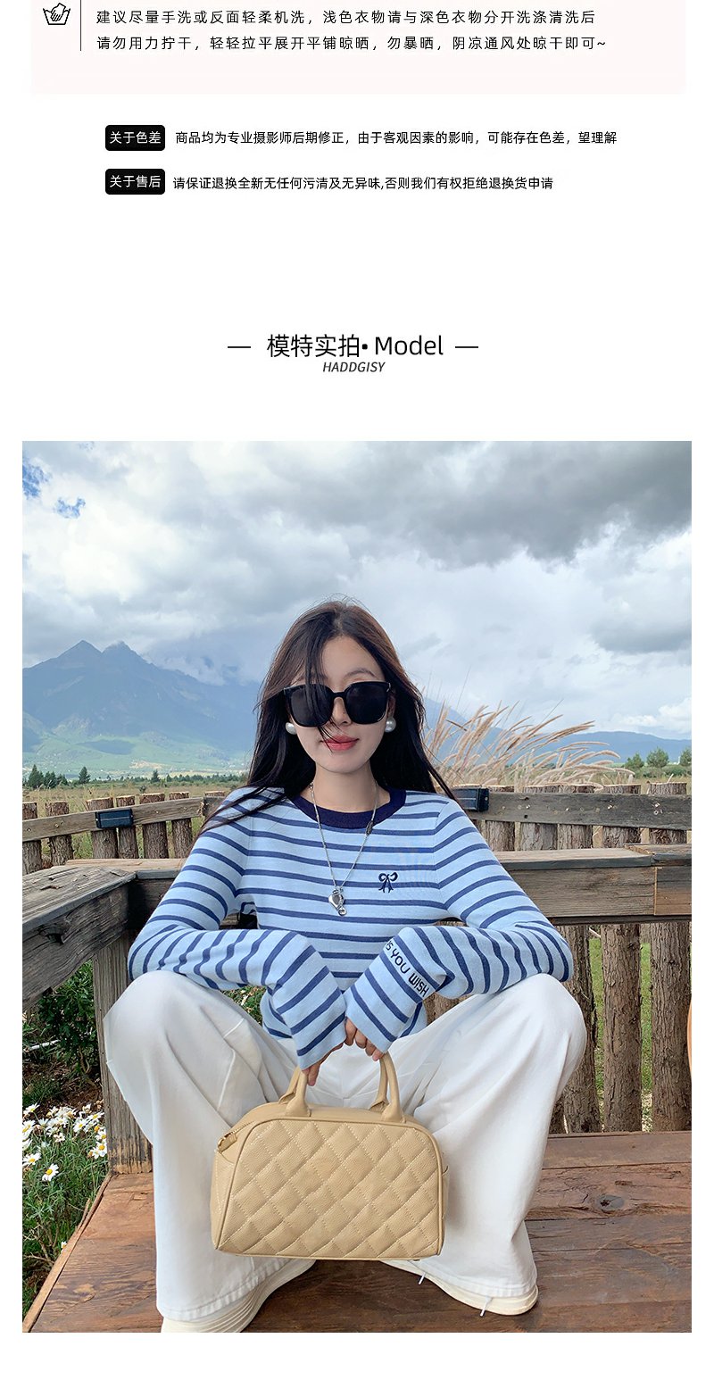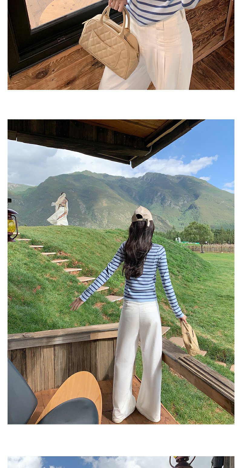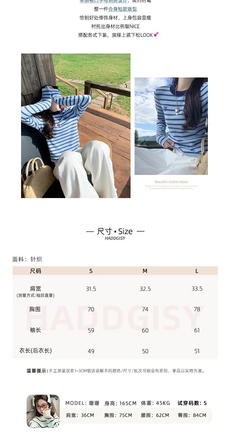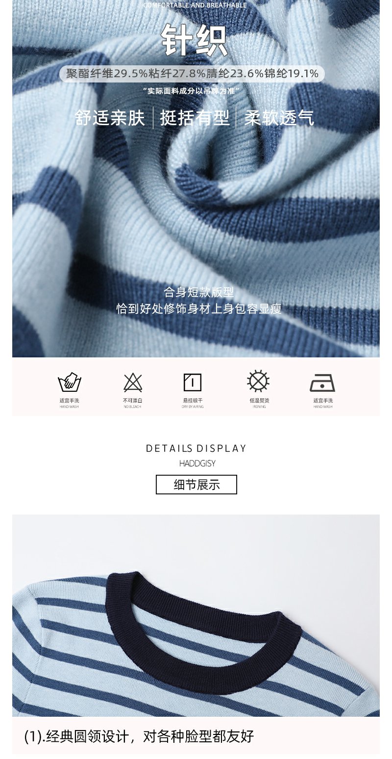 <曾小咸推荐>百搭休闲蓝色条纹修身针织衫