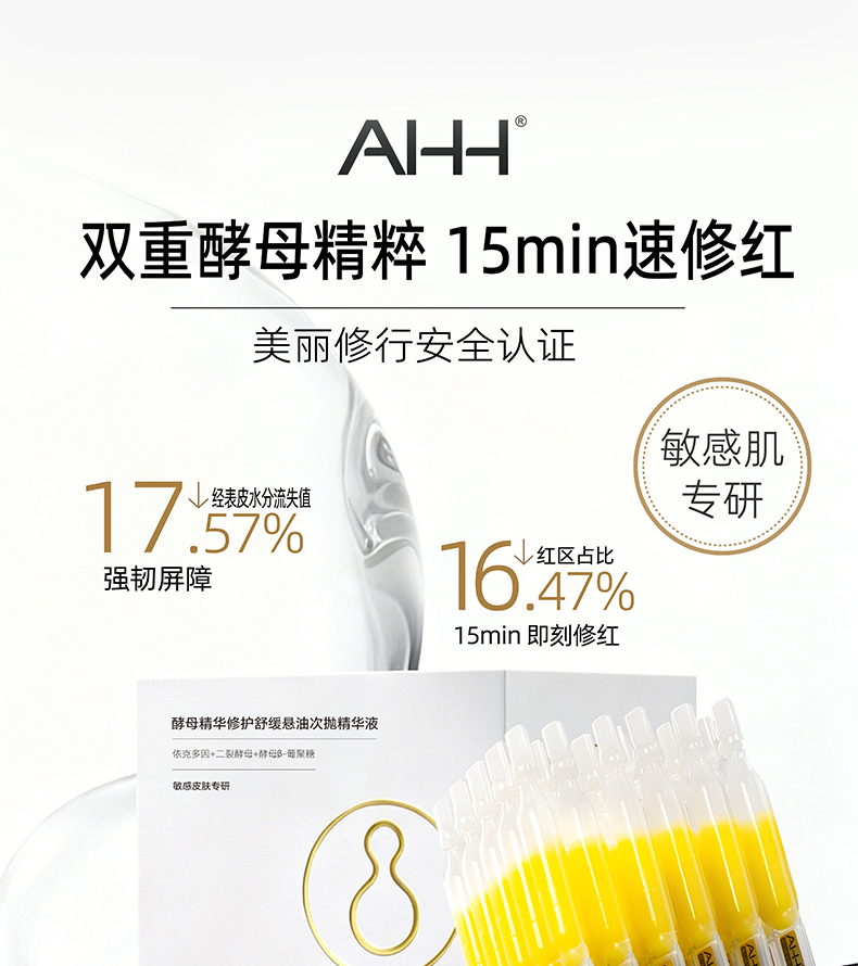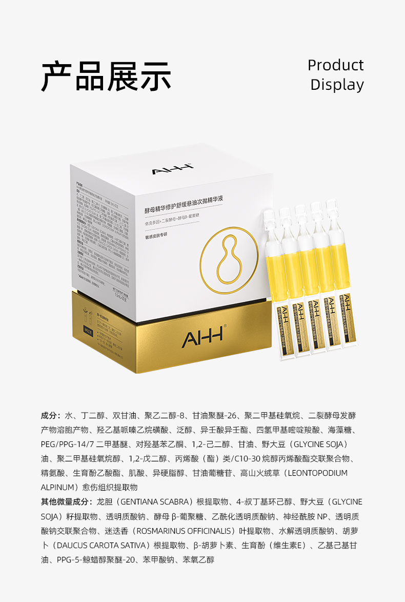 AHH酵母精华修护舒缓悬油次抛精华液1.5ML*30支/盒