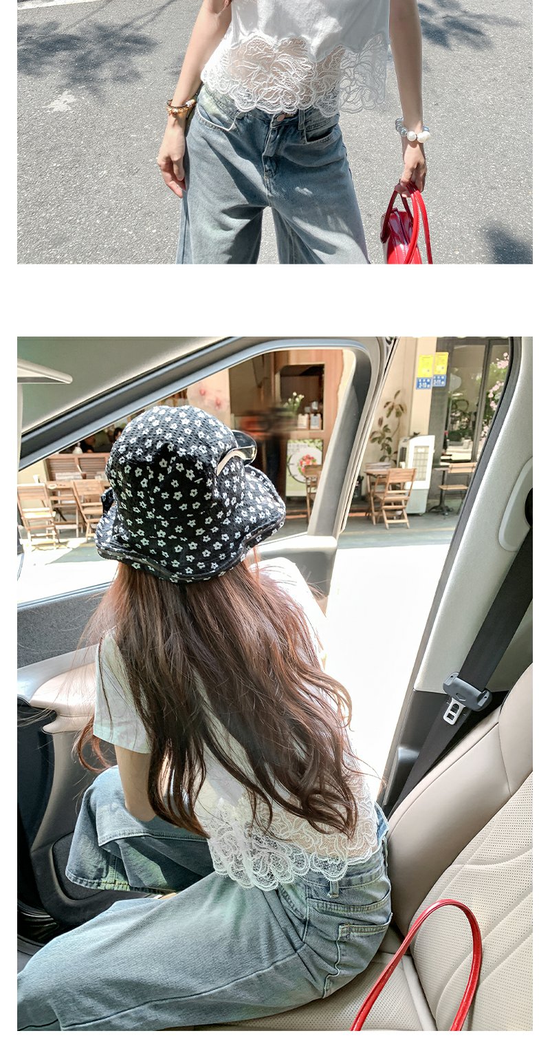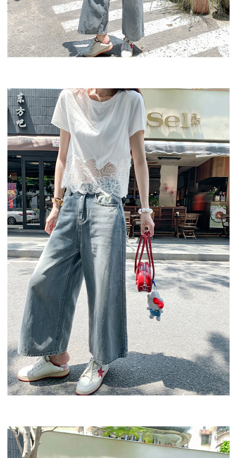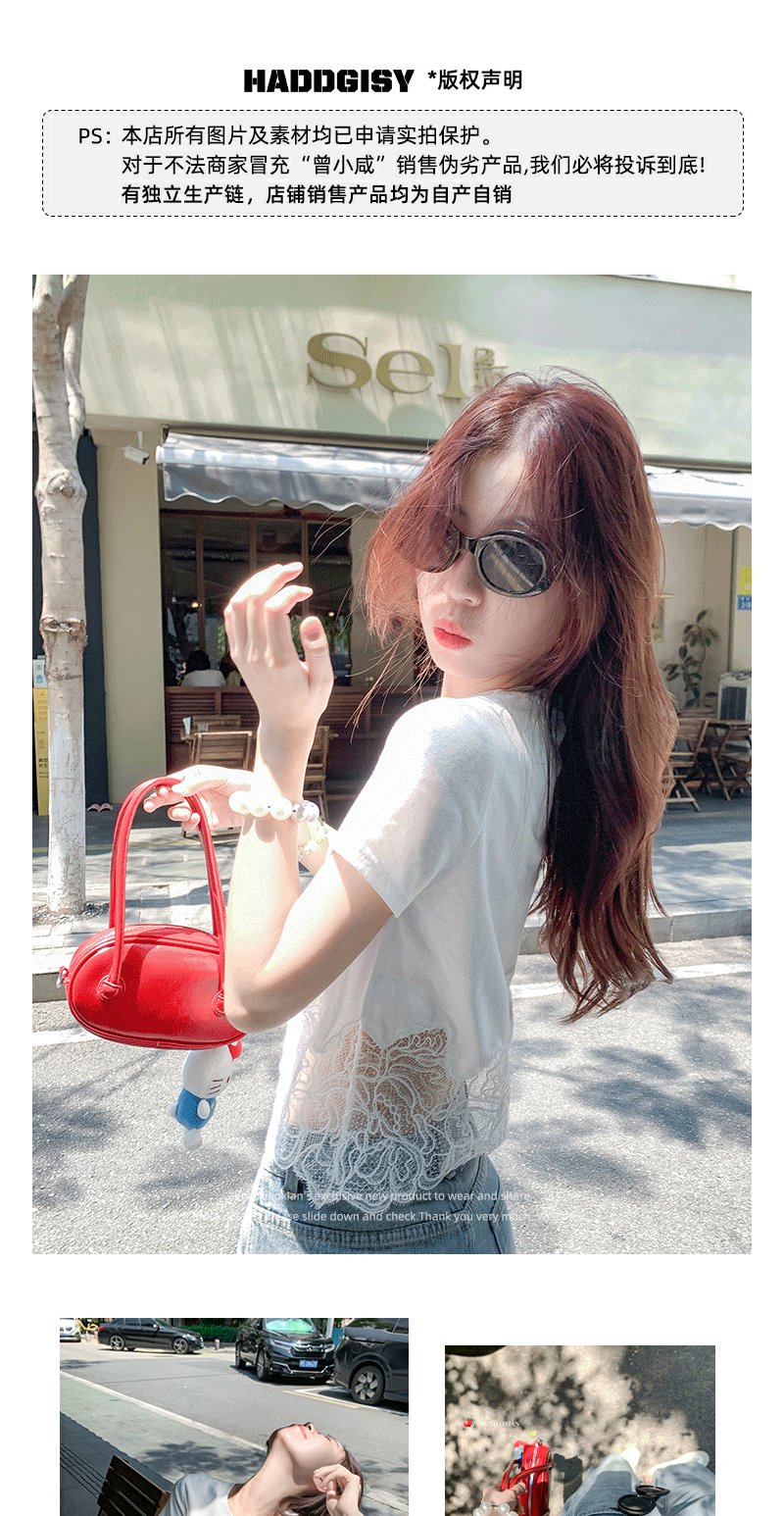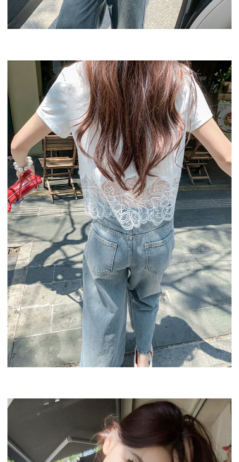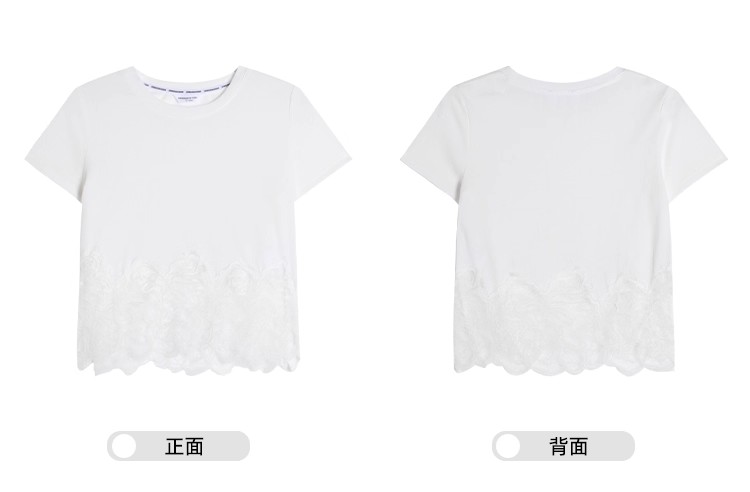 <曾小咸推荐>纯欲不规则蕾丝花边短袖T恤