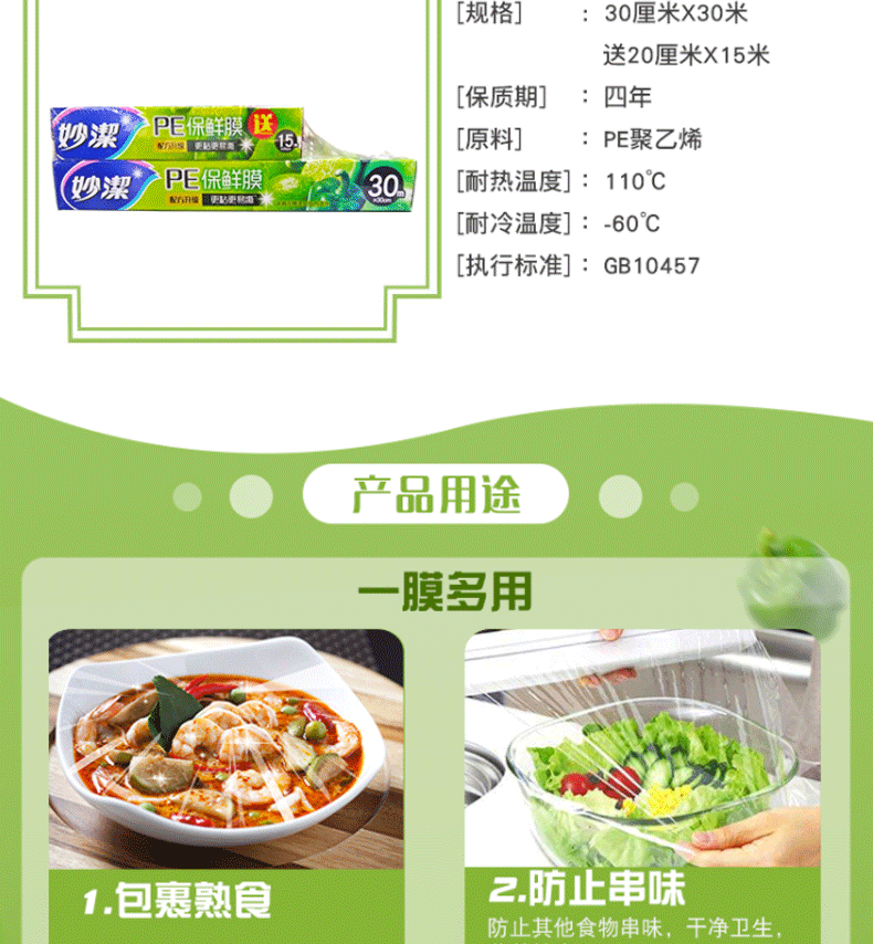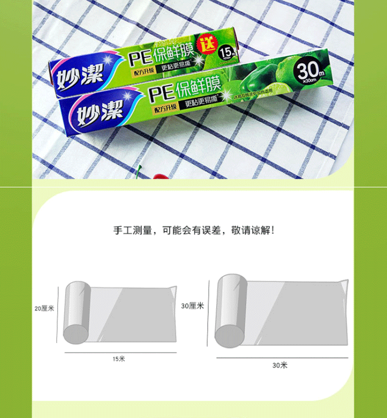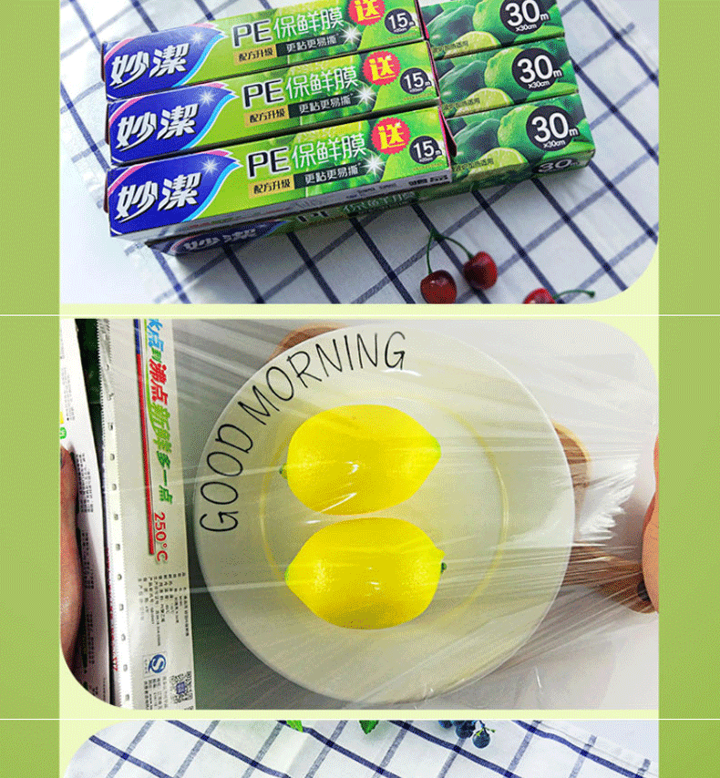 【妙洁】保鲜膜30米大碗送15米小碗 组合盒装(30m*30cm送15m*20cm)*3套