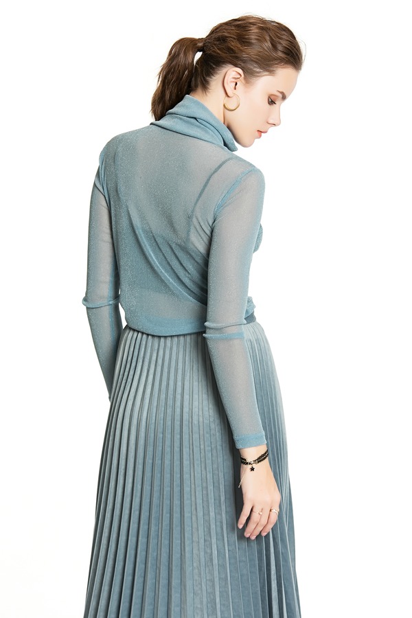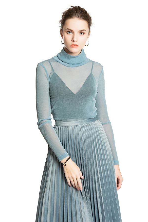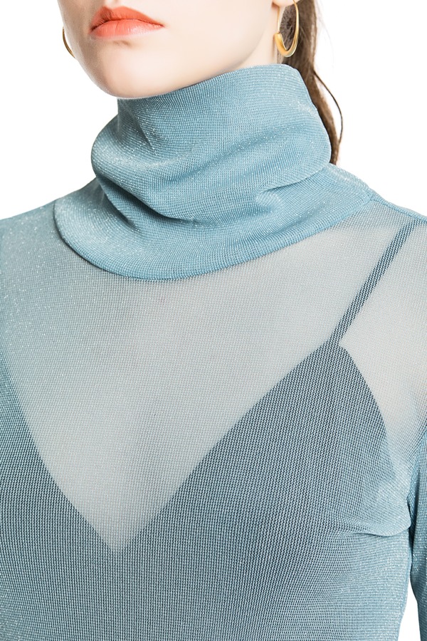 AVA 蓝色透视高领上衣 3888