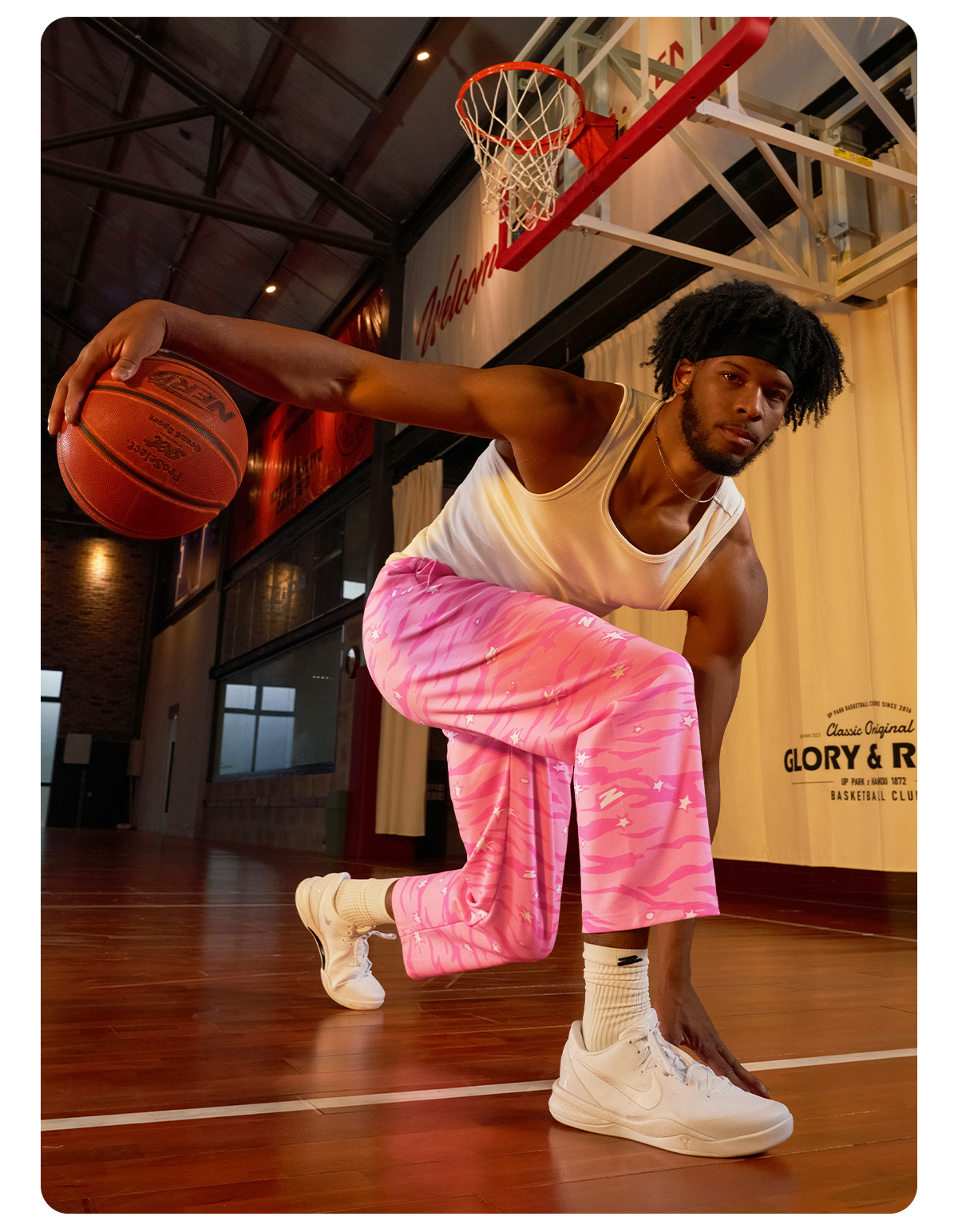 有志者UZIS 针织篮球运动长裤男宽松休闲美式潮流印花直筒裤[星浪