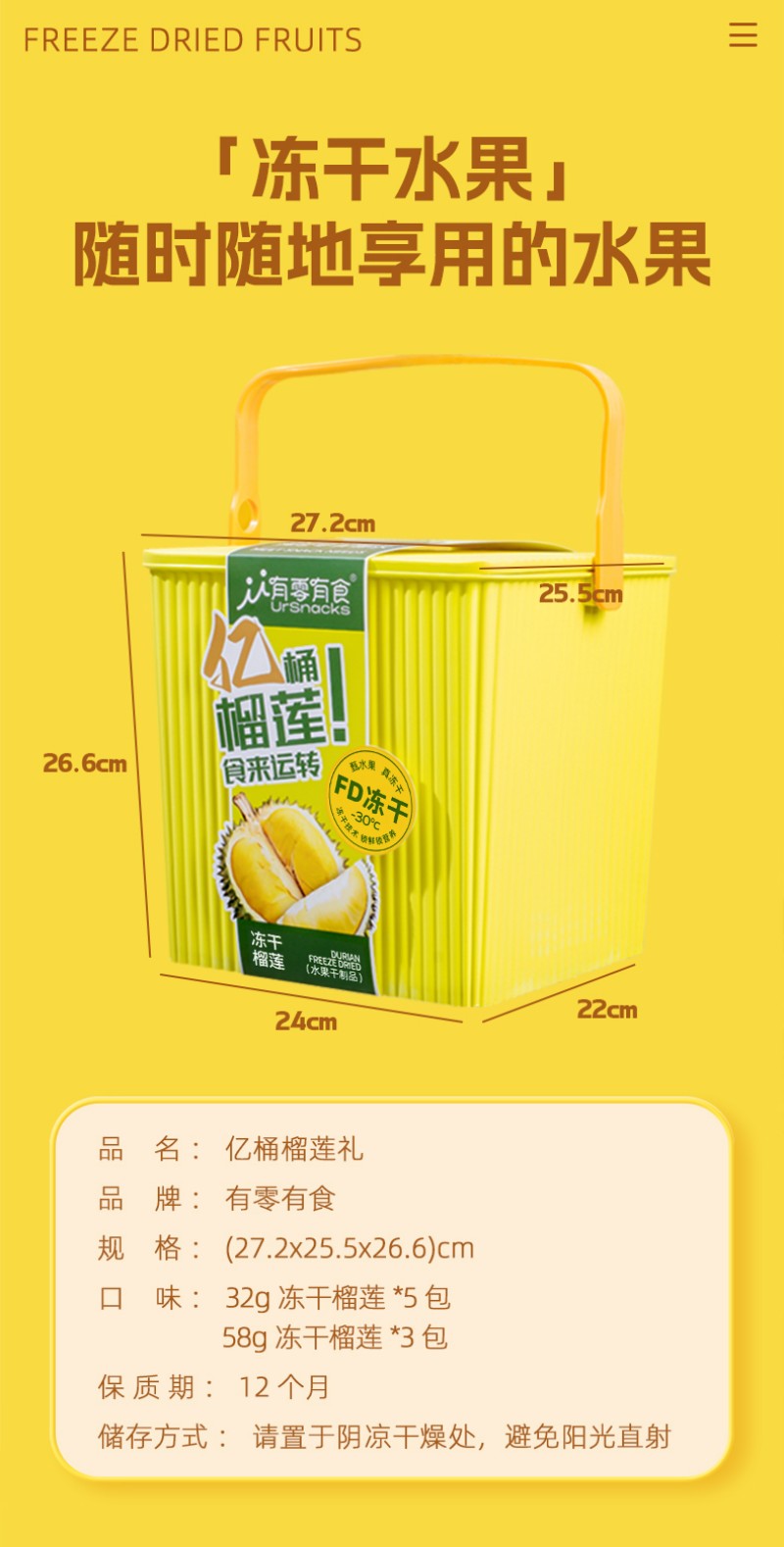 亿桶榴莲334g
