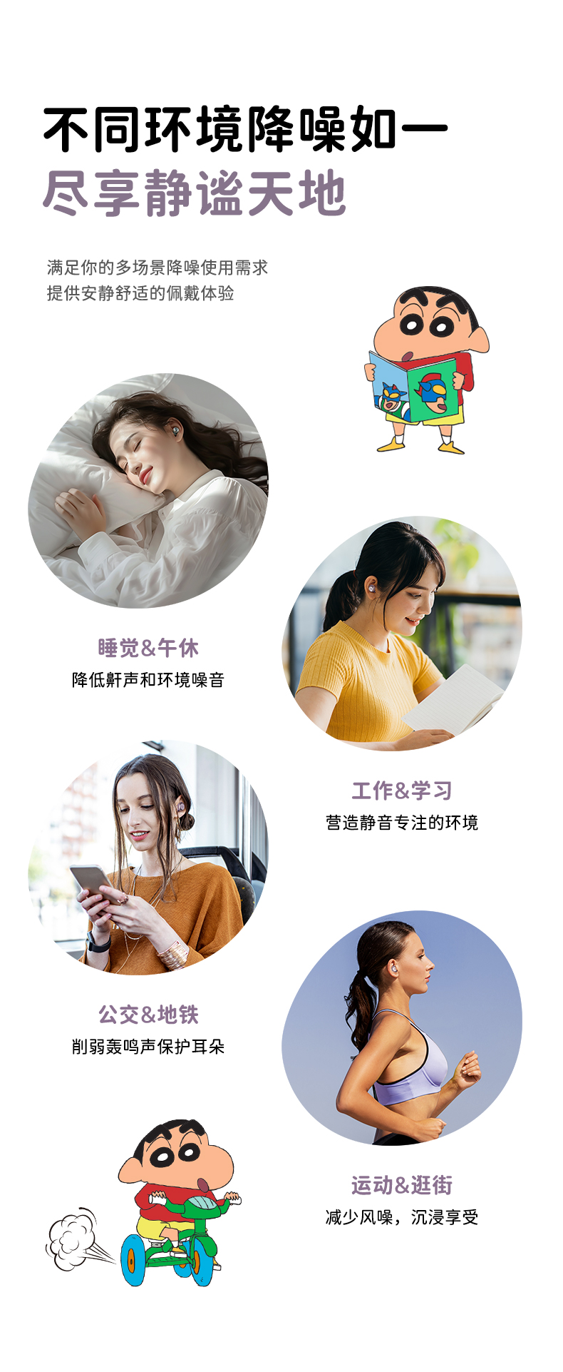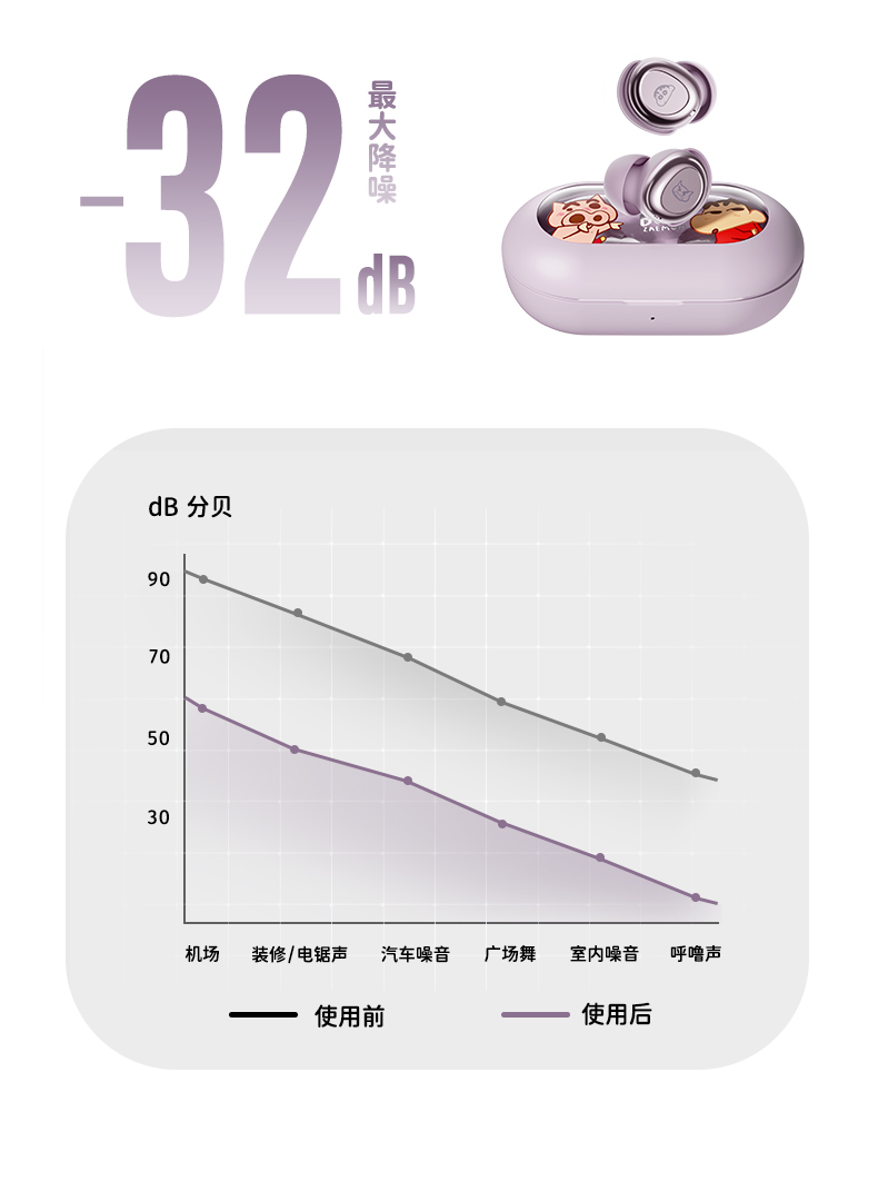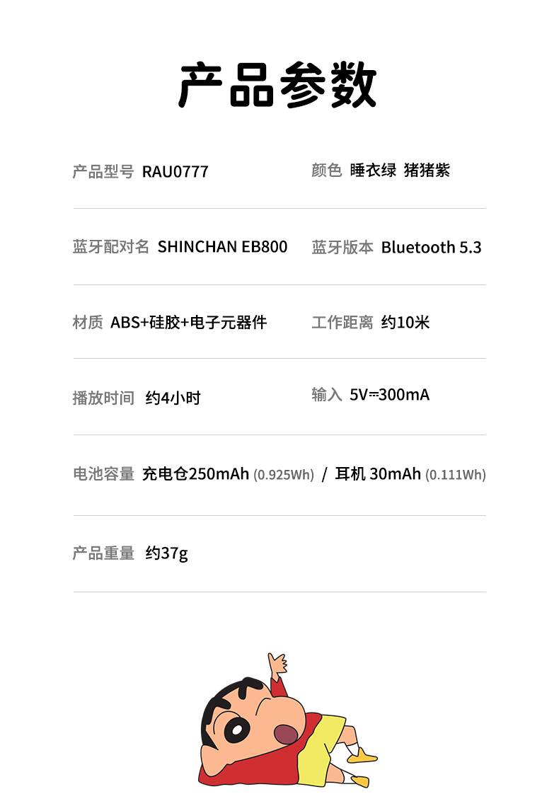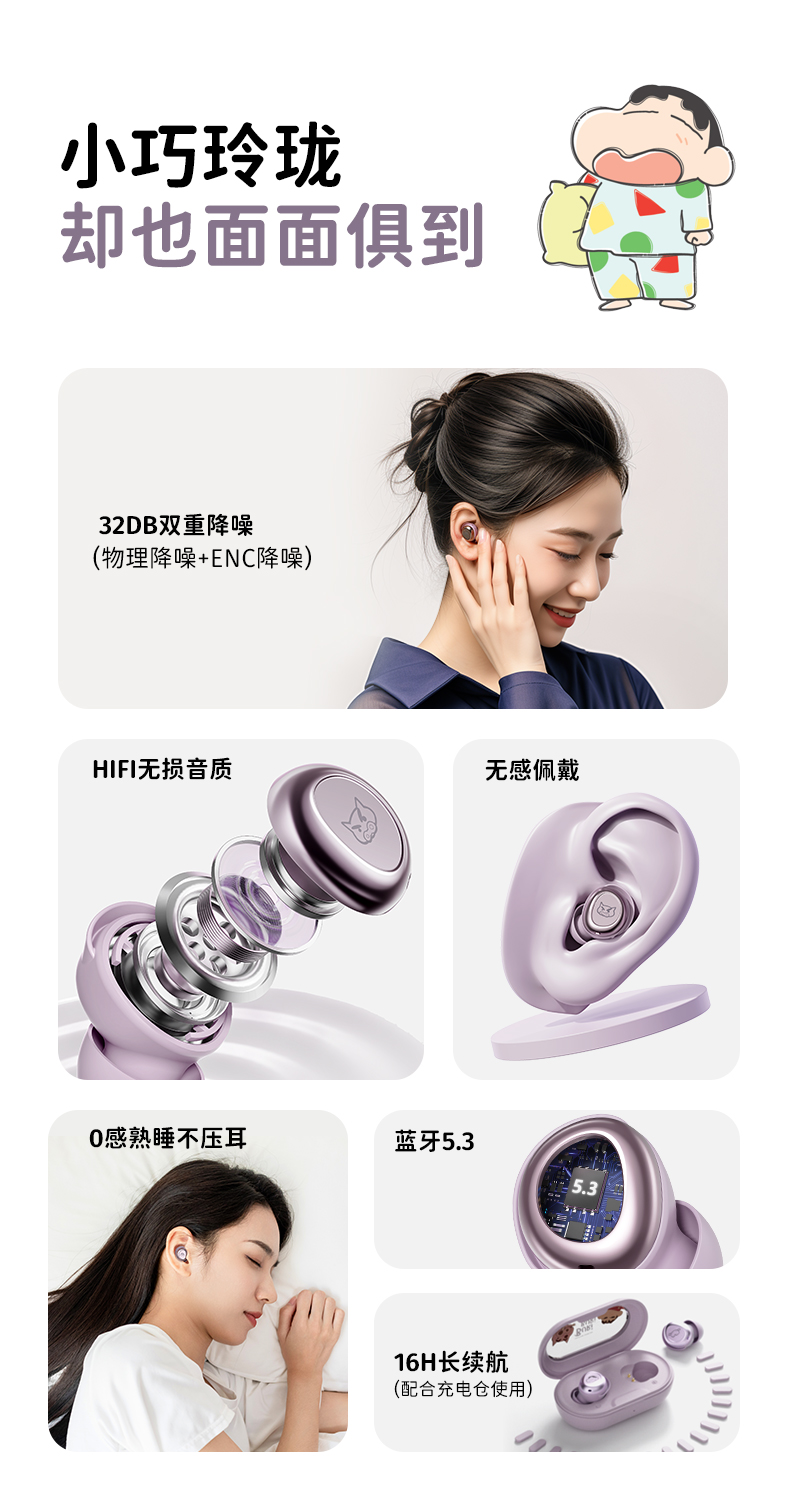 ROCK 蜡笔小新 EB800零感降噪音乐睡眠耳机