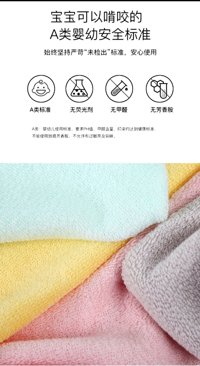 采用新疆阿瓦提长绒棉为原料,A类婴幼儿标准,柔软亲肤,瞬间吸水。无菌密封包装,保证了毛巾的蓬松舒适度,还保证毛巾的干净卫生,适合容易过敏肌肤。100%棉为原料,通过ISO质量管理体系认证,环境管理体系认证,职业健康体系认证。