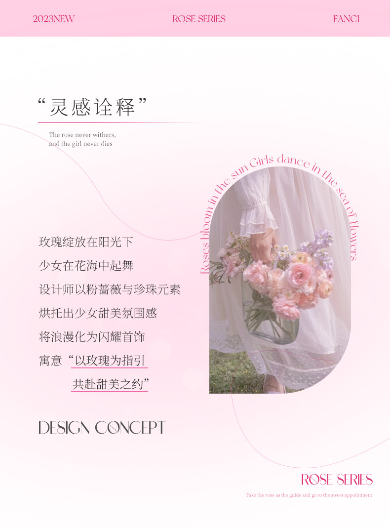FANCI范琦始于2012年,以珠宝表达内心为初衷,聚焦不同亲密关系情感表达,联结无形情感,以情感符号「I FANCI U」传情达意,诠释“恋爱戴范琦,起点是你,终点亦是你”始终如一的恋爱价值观。