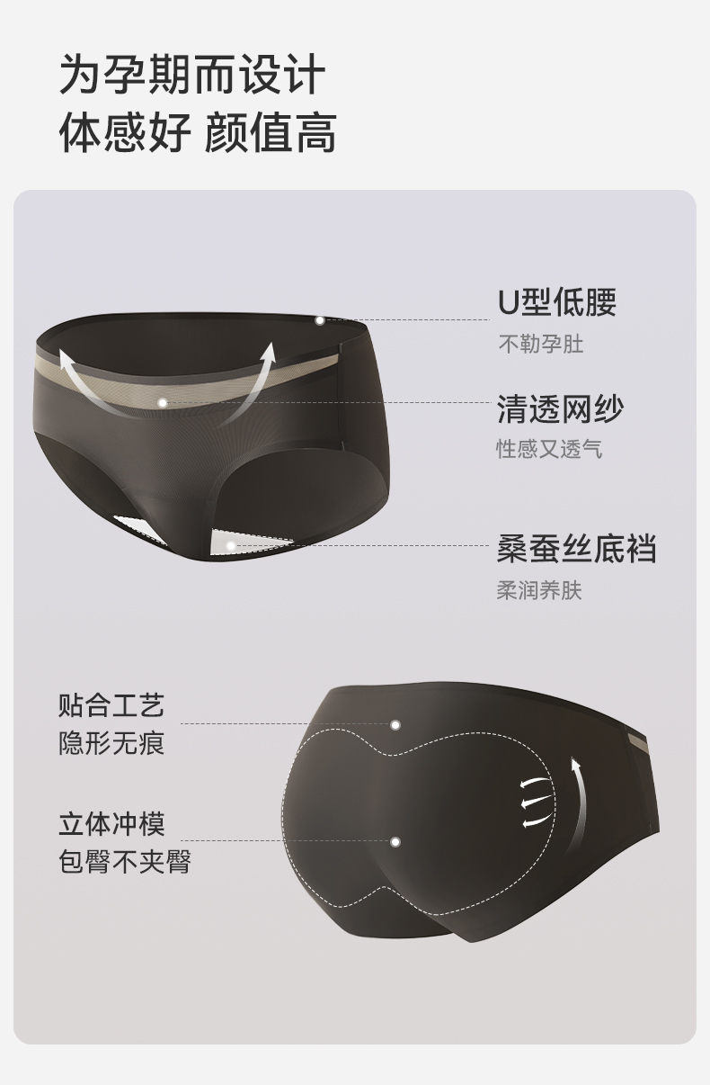【红品限定】嫚熙超皮孕妇低腰内裤孕早中晚期透气网纱桑蚕丝短裤