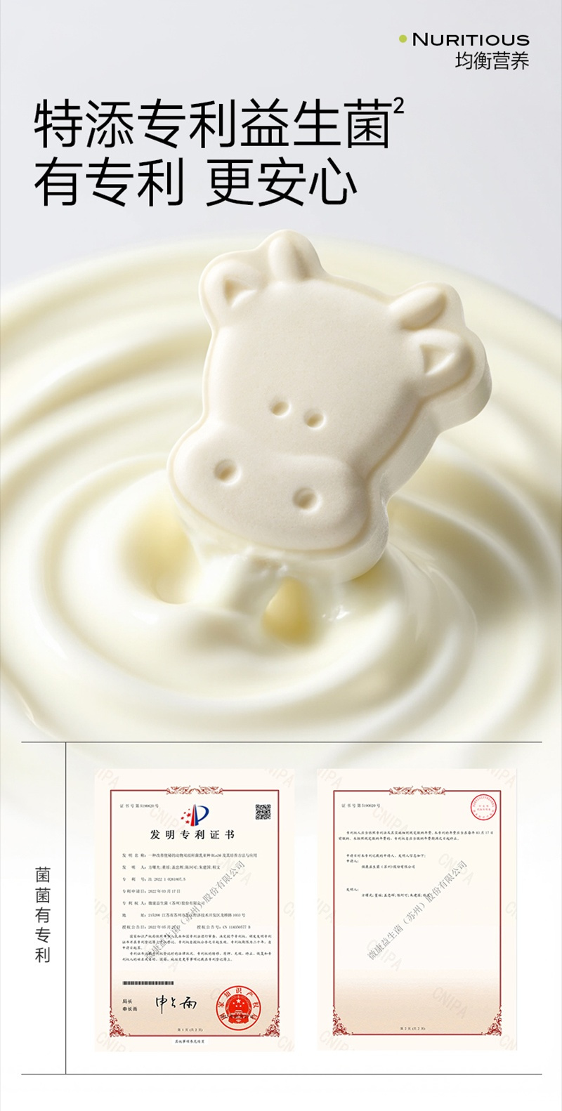 · 特添100亿专利活性益生菌,专利号查得到,安心感看得见。