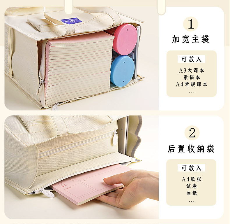 开学必备【课本轻松放~大小刚刚好!】手提背包,轻盈便捷,美术补习班必备,3层6袋,立体胶章拉链头,书籍文具随意存放,轻便耐用,多功能收纳,男女生通用,无味环保,让学子更加自信!