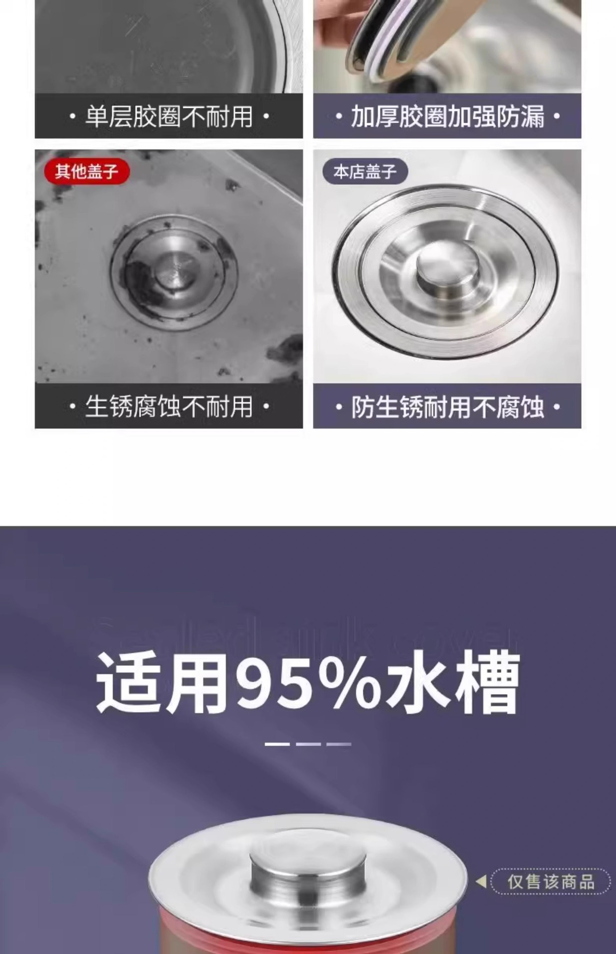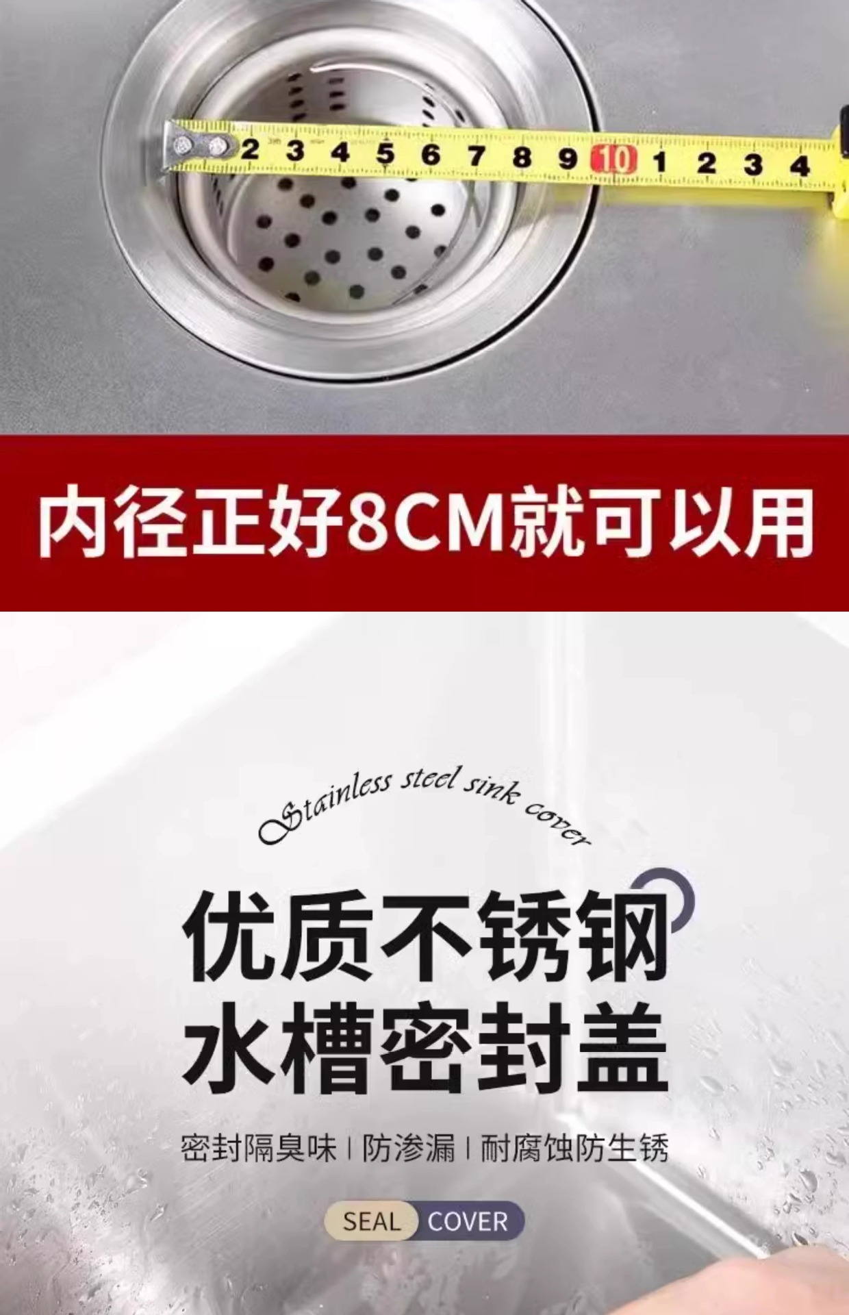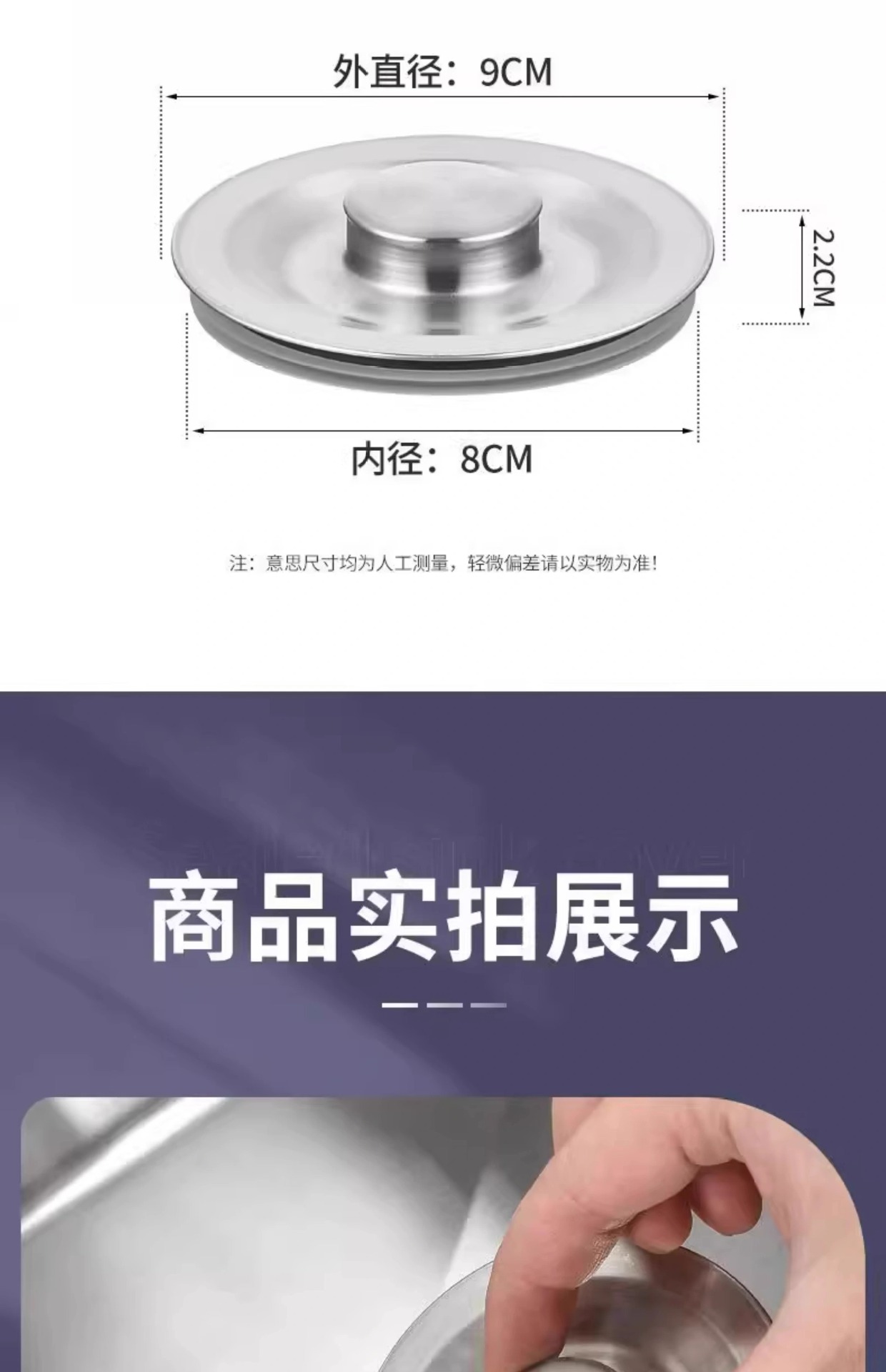 【升级加厚款】厨房水槽盖洗碗池不锈钢盖子 水槽封口盖洗脸盆堵水塞 洗菜盆塞子