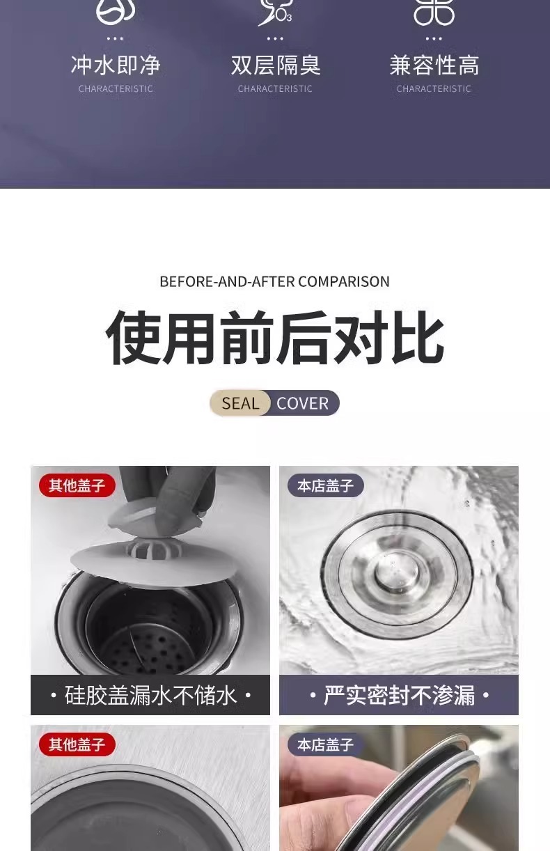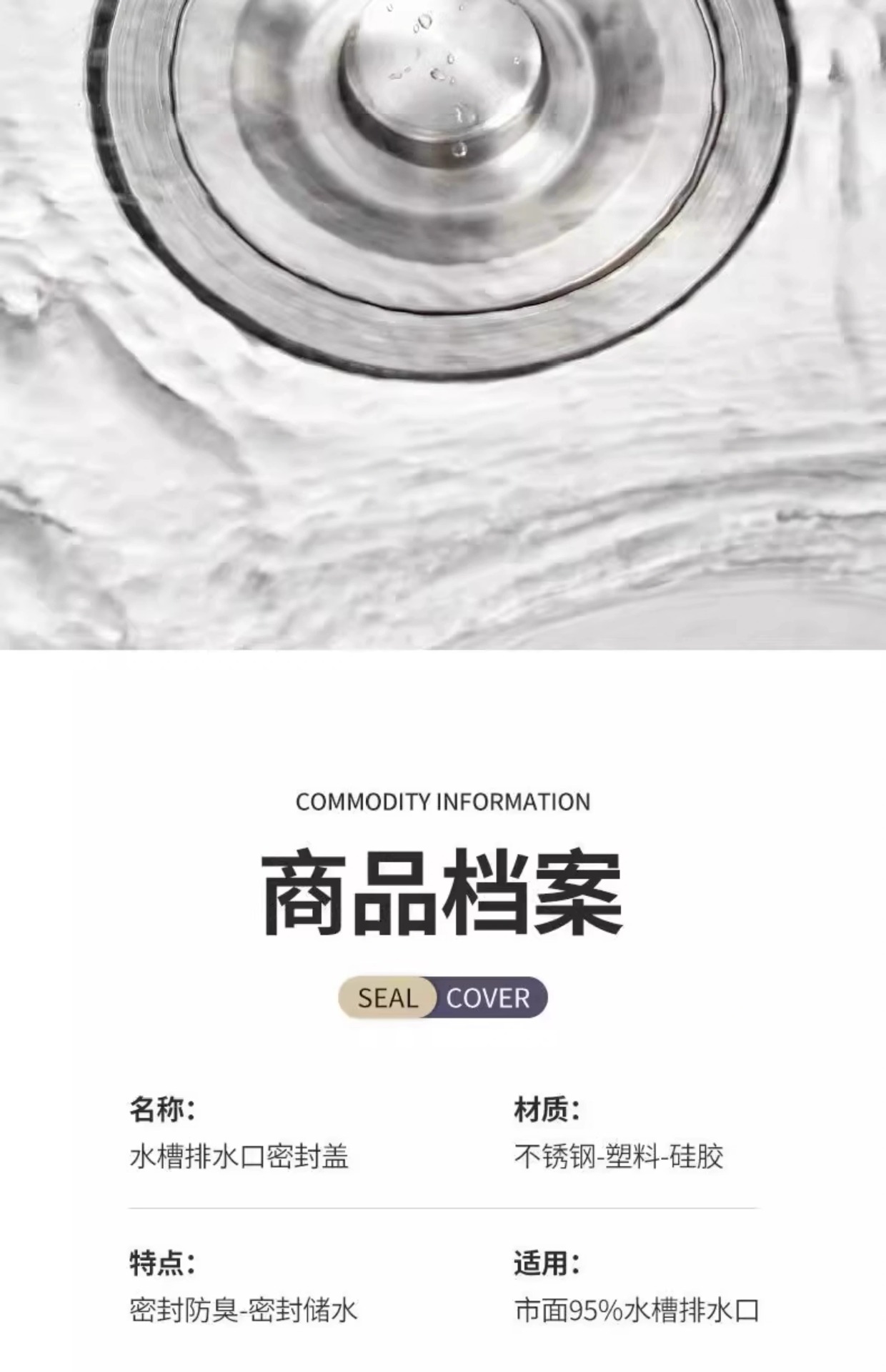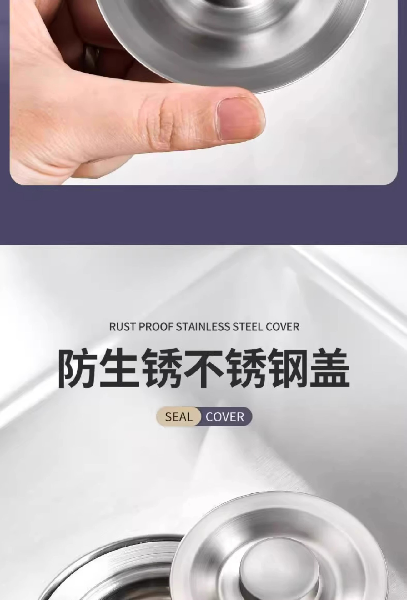 【升级加厚款】厨房水槽盖洗碗池不锈钢盖子 水槽封口盖洗脸盆堵水塞 洗菜盆塞子