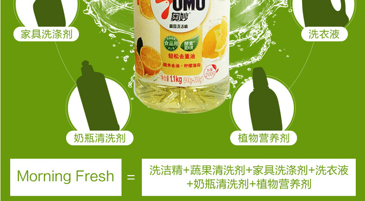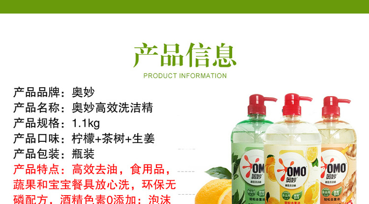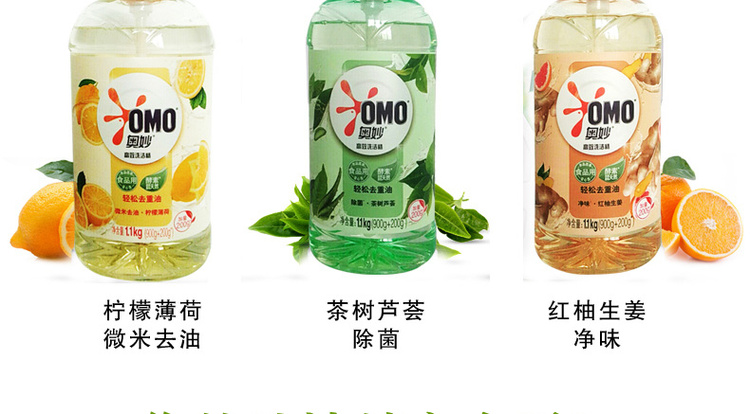 奥妙果蔬净高效去油农残洗洁精1.1kg*3瓶