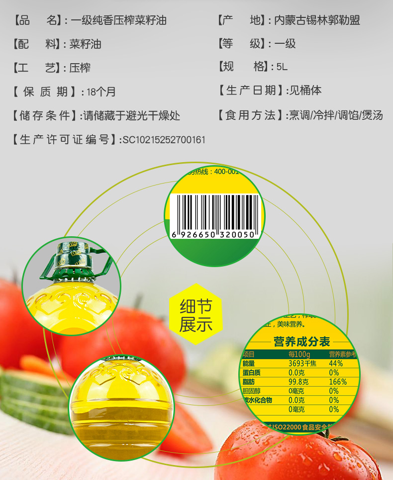山榨坊浓香菜籽油5L【XPTX】