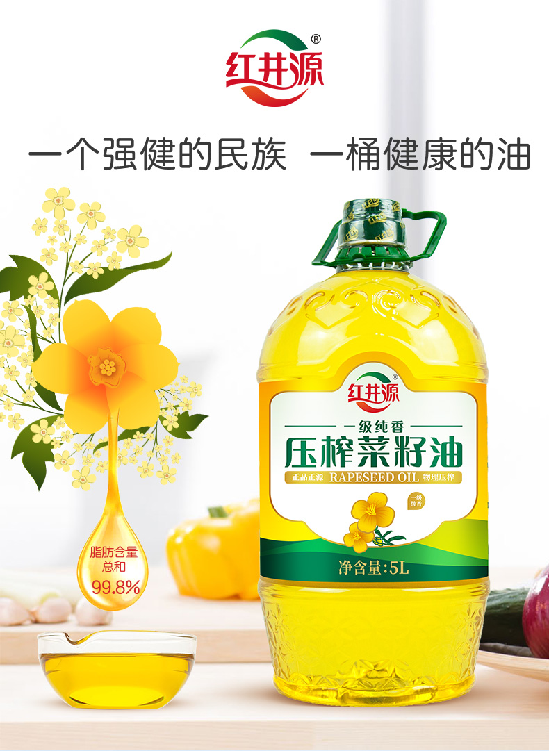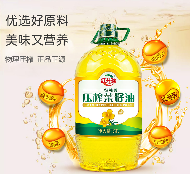 红井源一级纯香压榨菜籽油5L桶(内蒙古老字号)【XPTX】