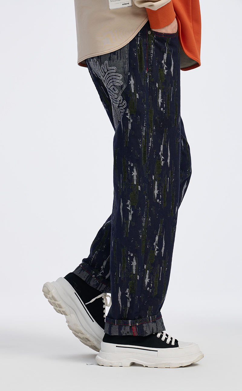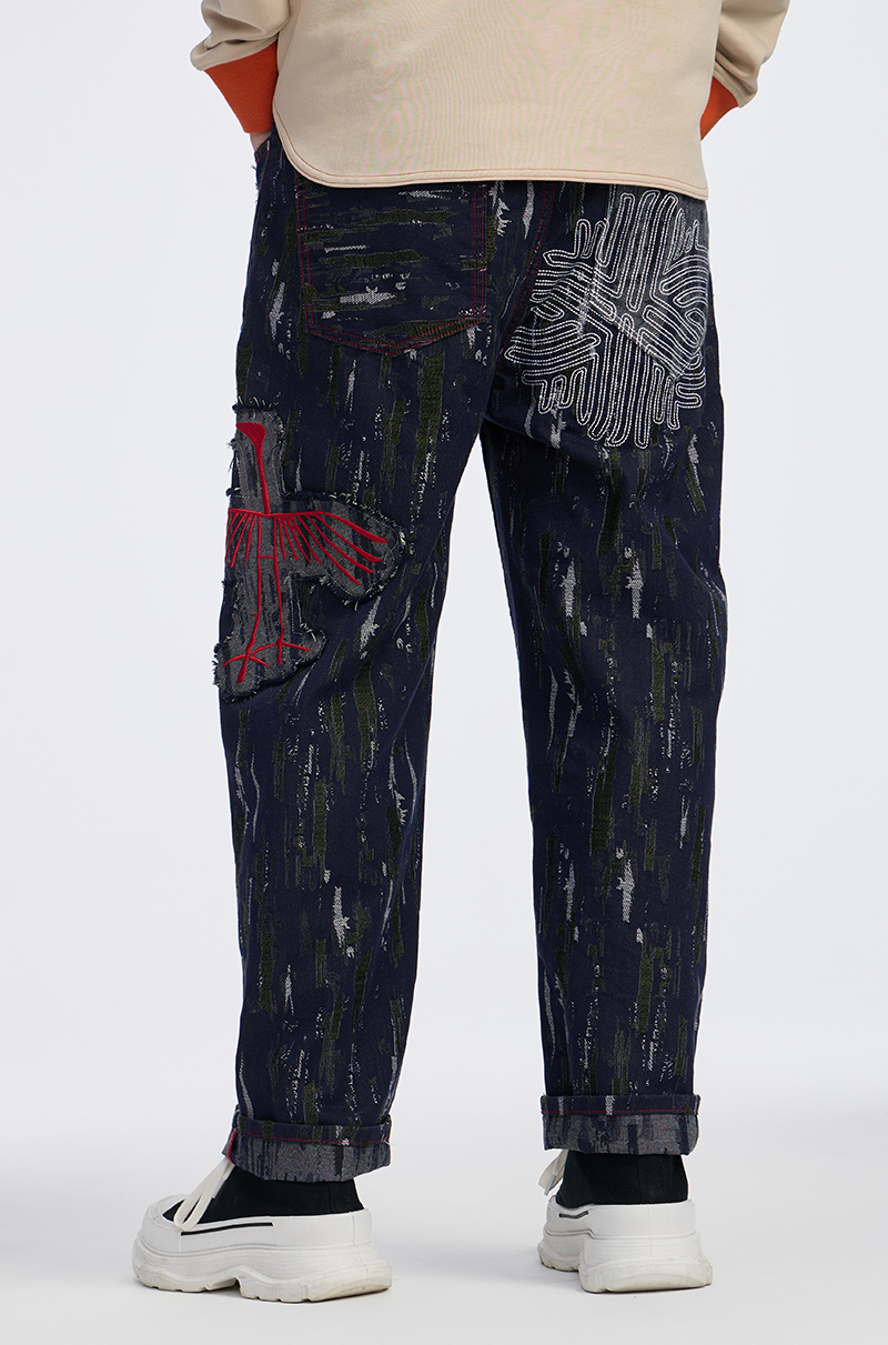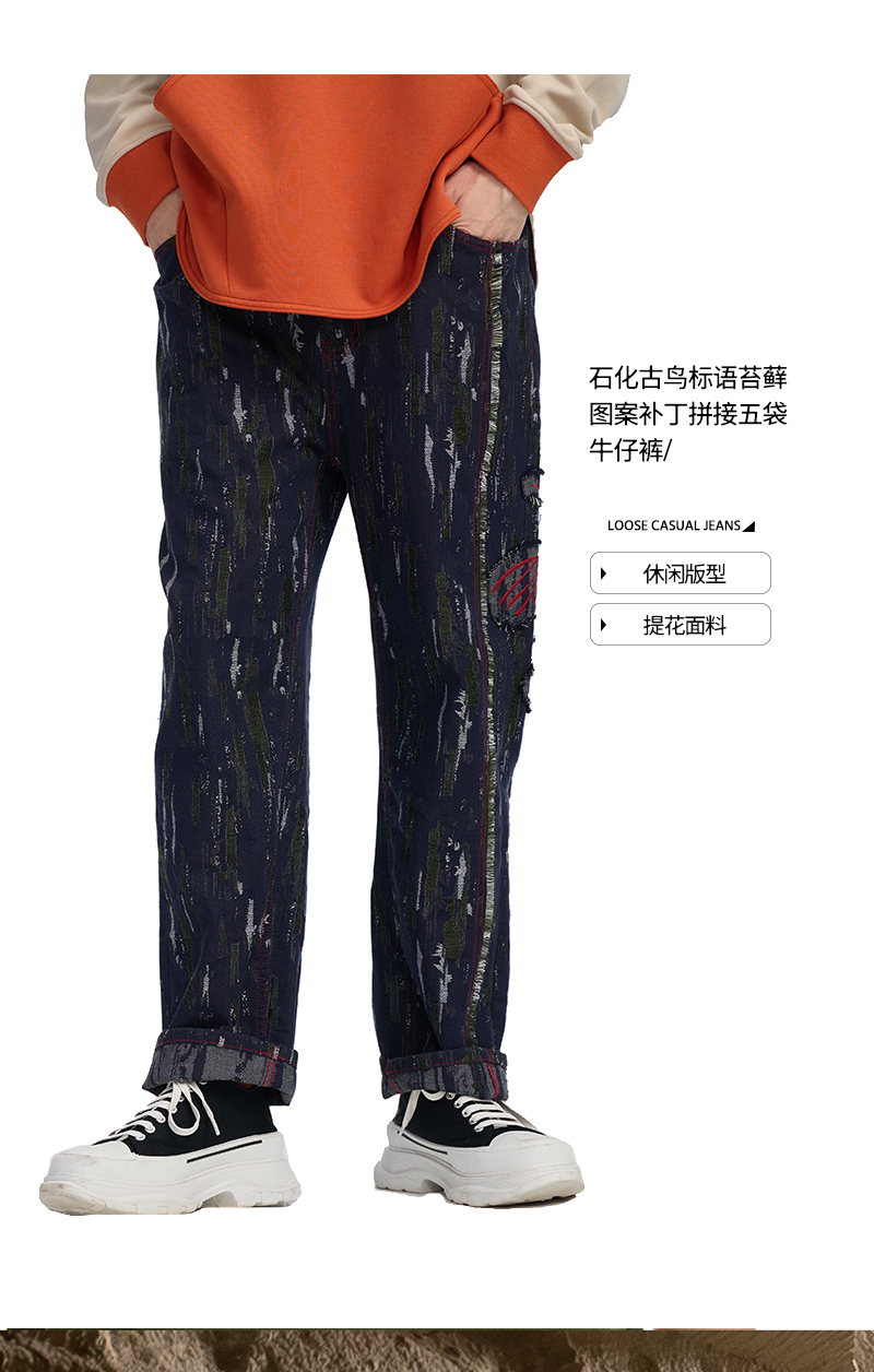 ONIARAI/鬼洗 石化古乌标语苔藓图案补丁拼接五袋牛仔裤 24A7406