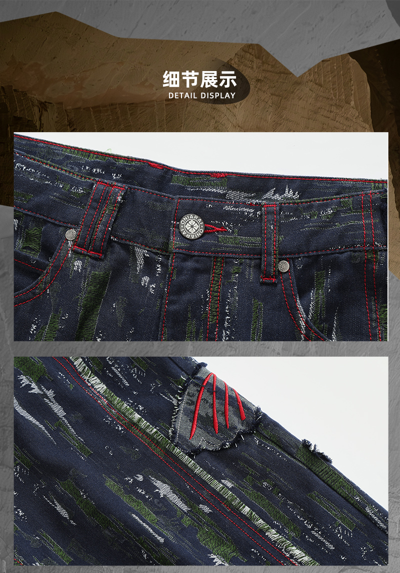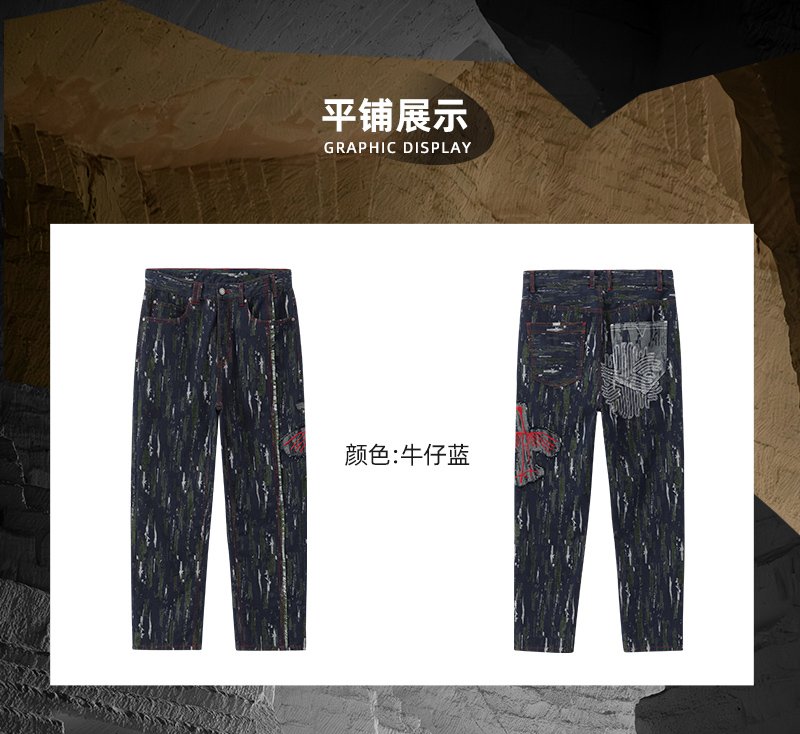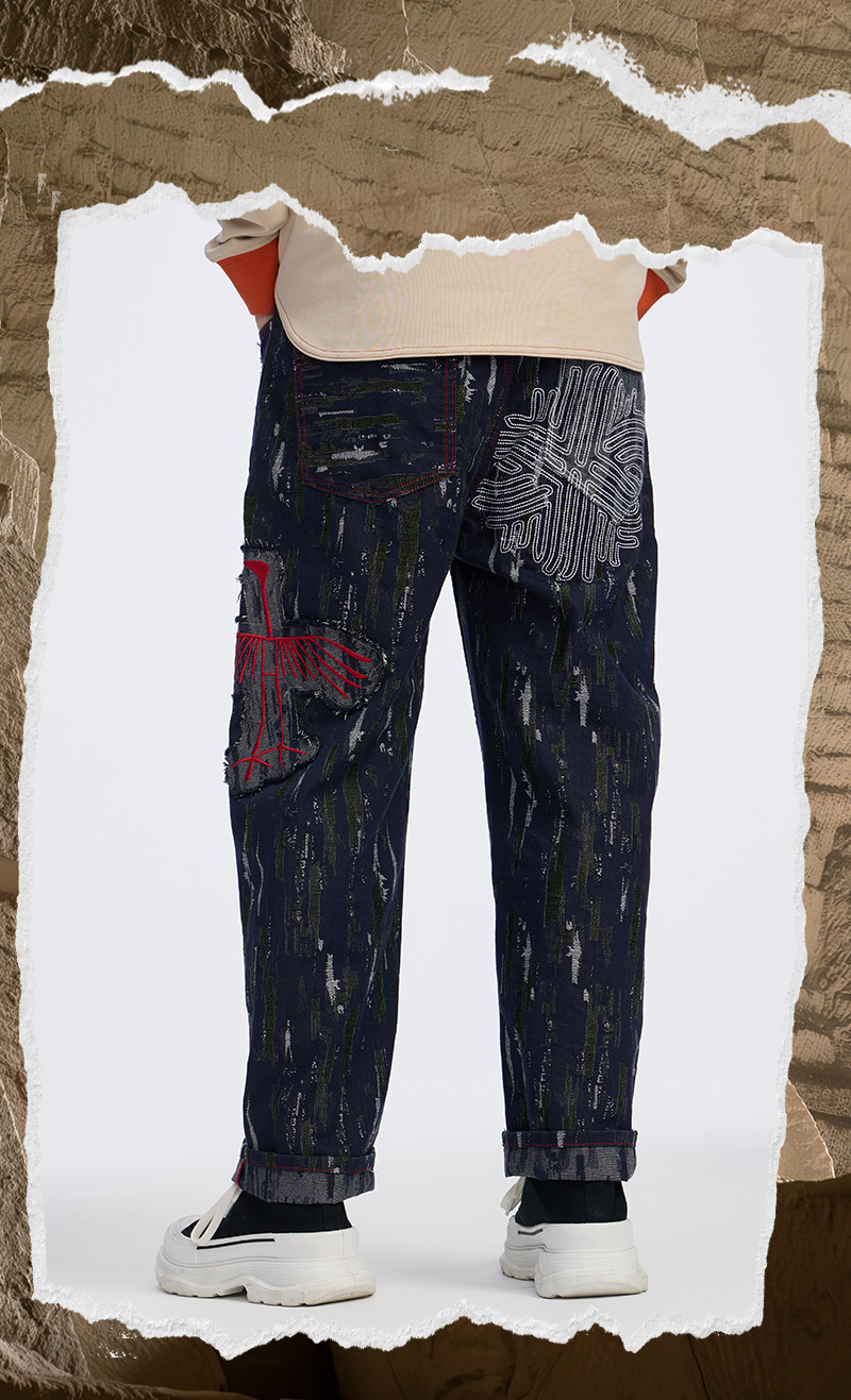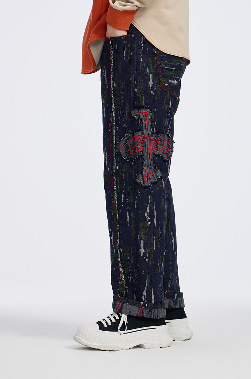 ONIARAI/鬼洗 石化古乌标语苔藓图案补丁拼接五袋牛仔裤 24A7406