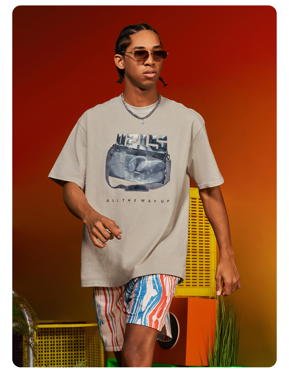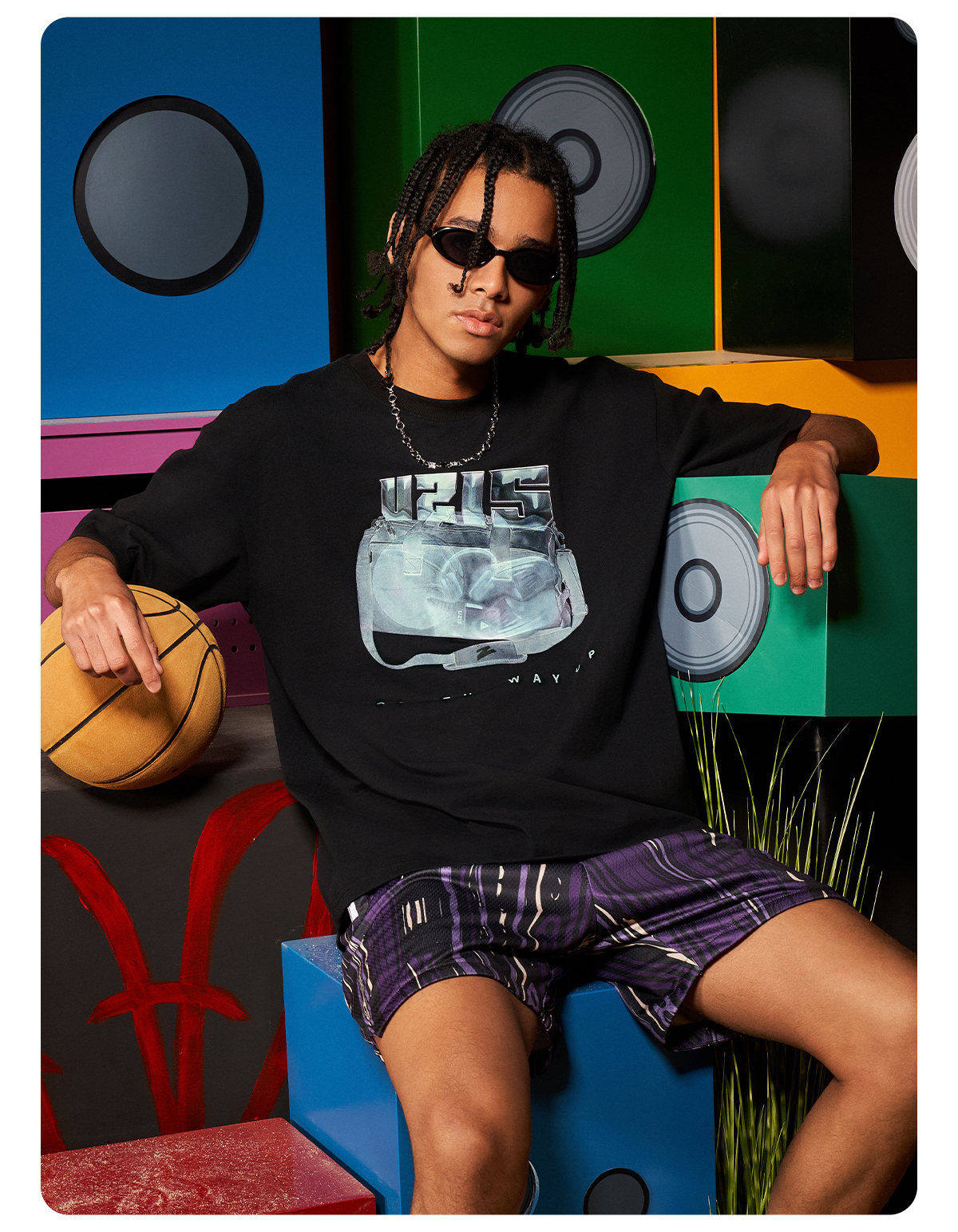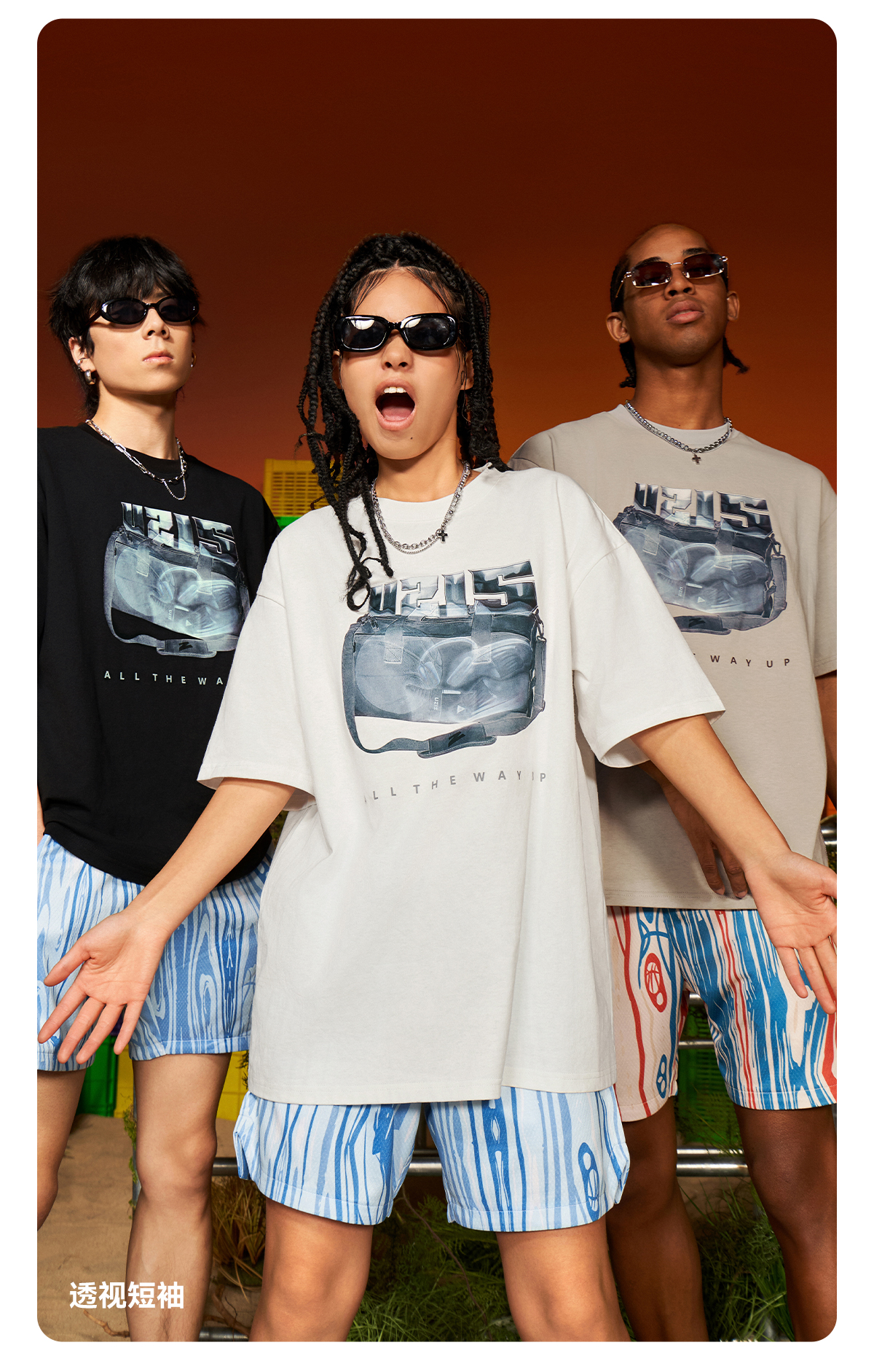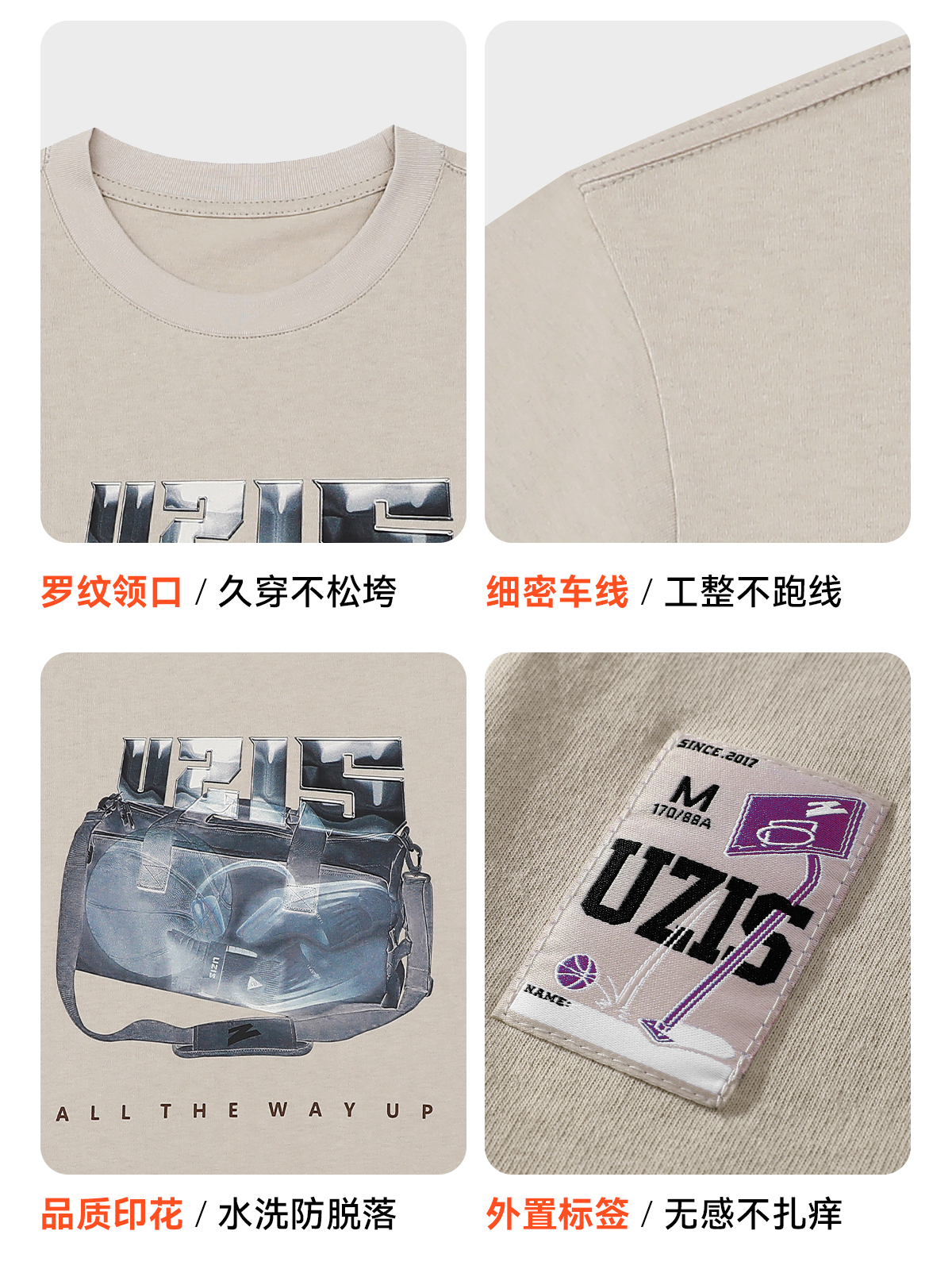 有志者UZIS 美式潮流印花T恤男夏季宽松透气纯棉篮球运动短袖透视