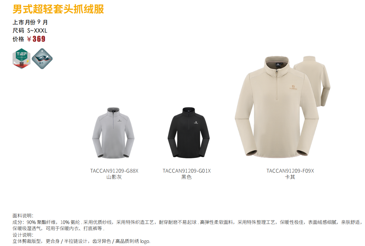 探路者男式超轻套头抓绒服TACCAN91209