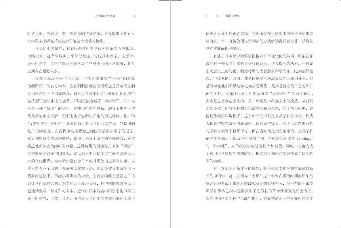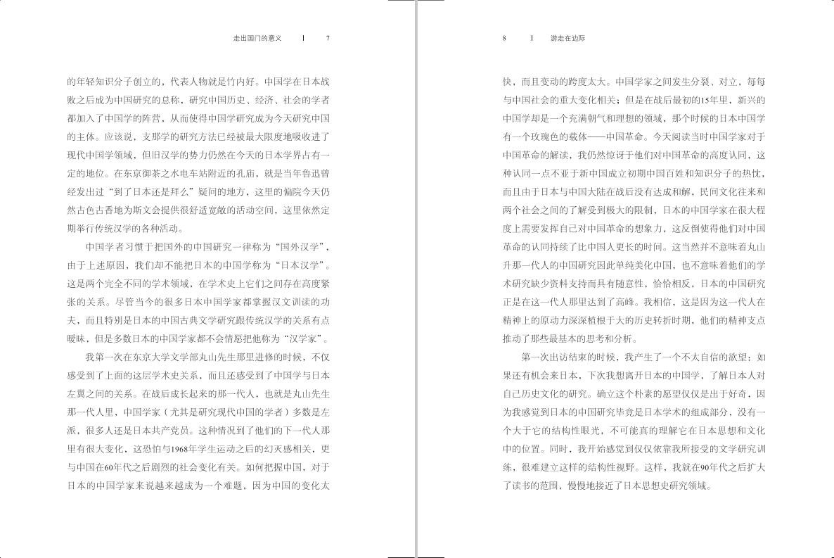 我在本书第一部分试图交代的,正是这样一种“在边际工作”的艰难。从文学领域跨入政治思想史,从中国研究转入日本研究,对我而言并不是“跨界”,而是更加深入地进入“临界状态”。我的日本师友们曾经对我说过,假如我从大学本科开始就学习法学和政治学,那么我大概不会像现在这样工作。换句话说,我并不是抛弃了文学,摇身一变跨进了政治思想史,我有幸把文学研究给我的教养转化成了思想史的思考动力。我那位学生时代师从于丸山真男的导师更是直截了当地替我做出了判断:你们做文学的,胸中有一个“第一文本”,你把它带进了思想史研究。