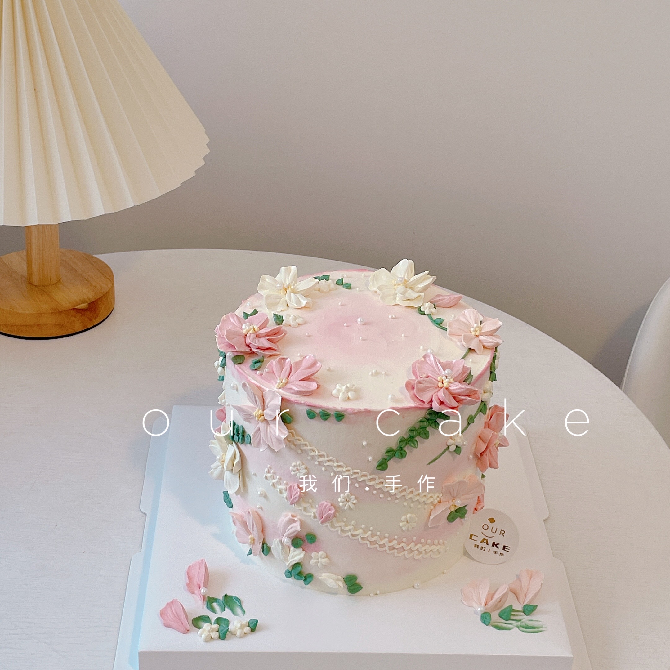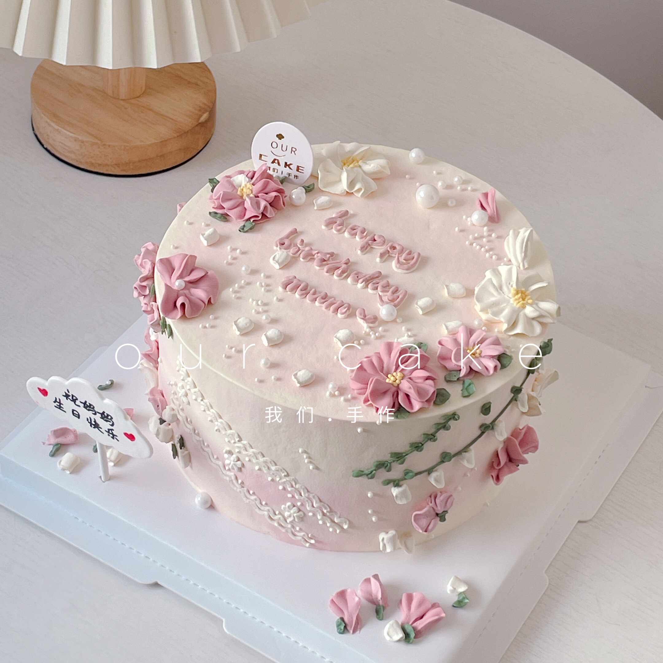 韩式裱花小清新花瓣蛋糕-低糖处理无添加