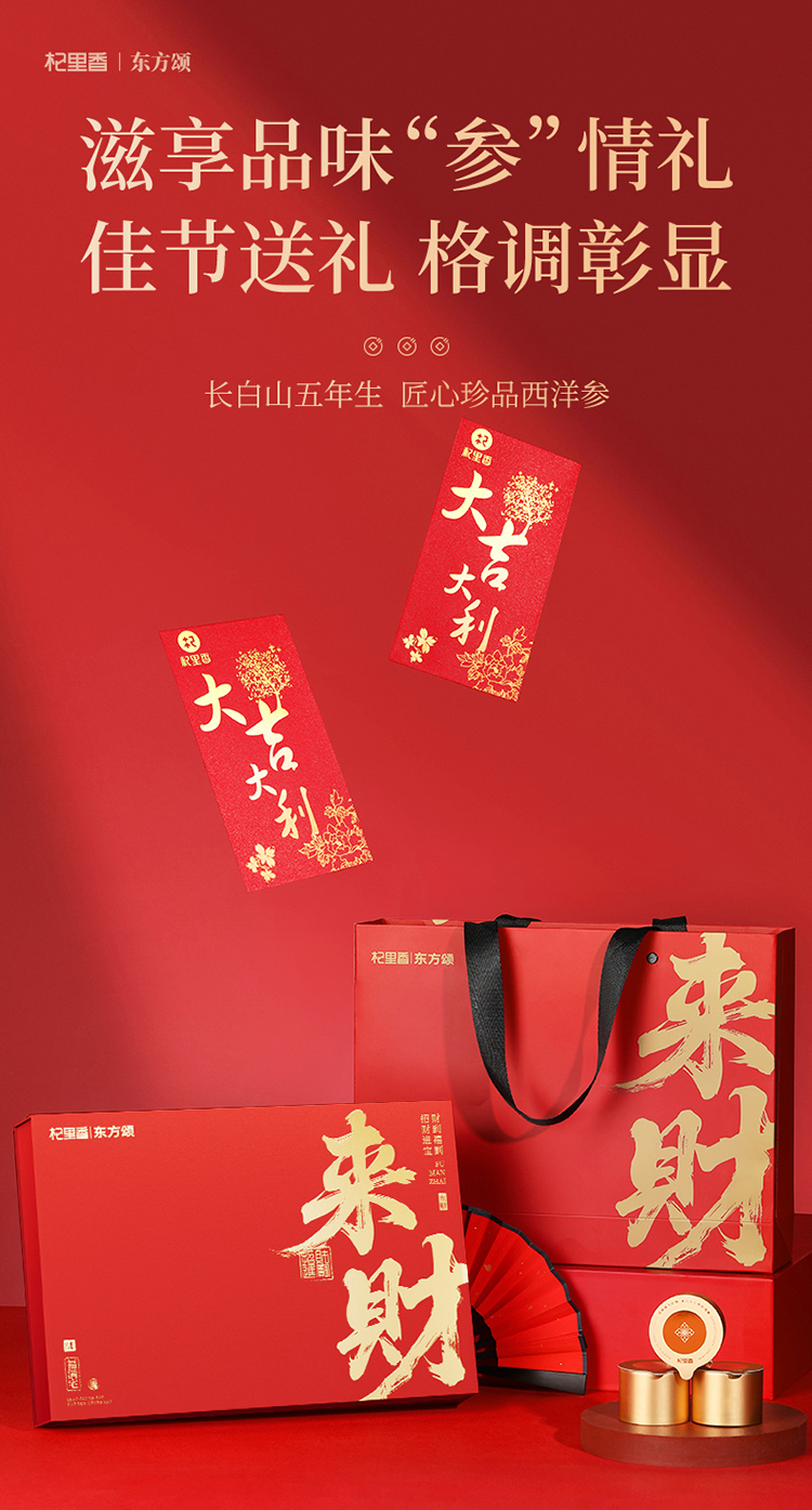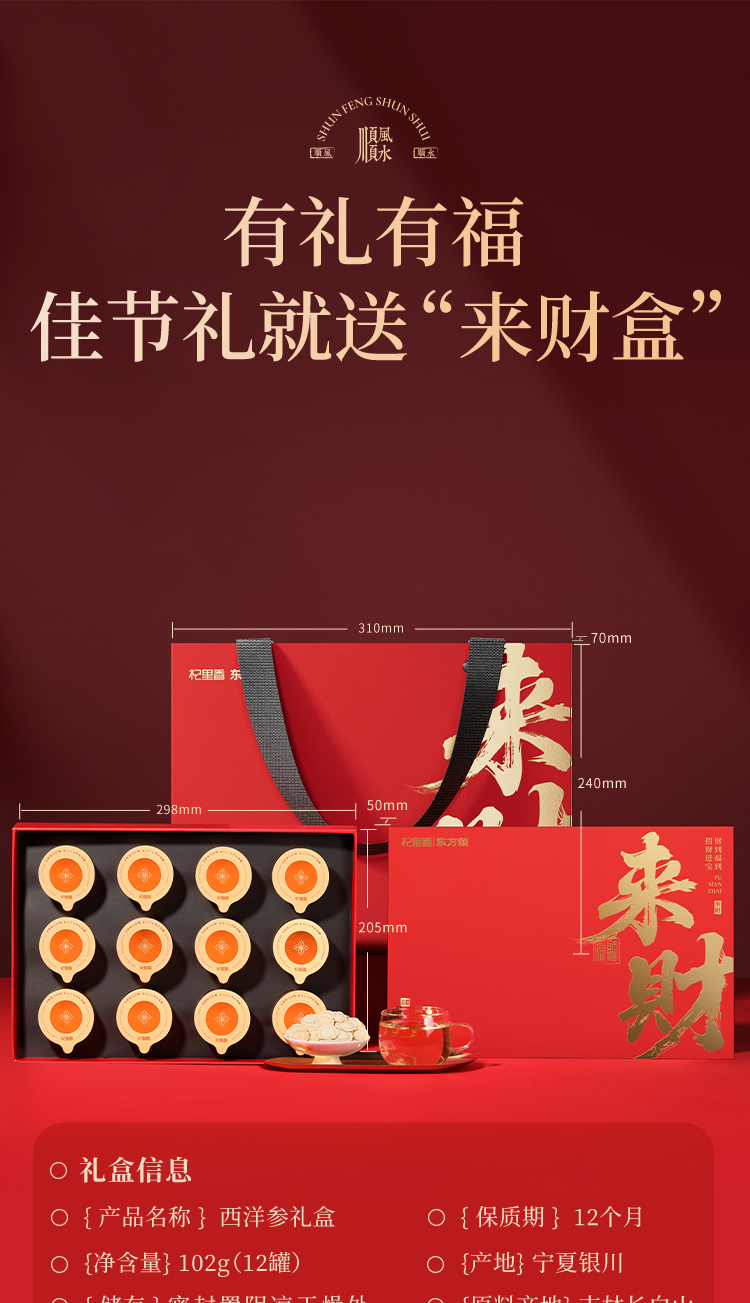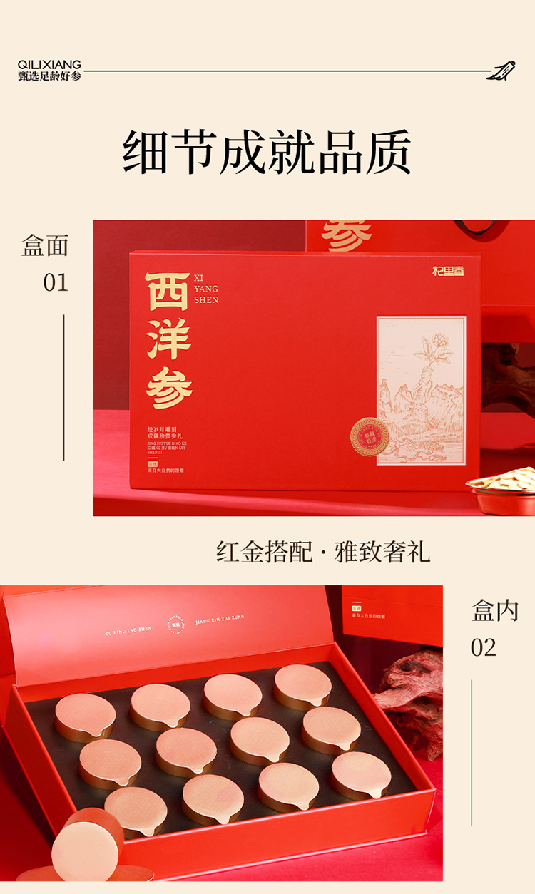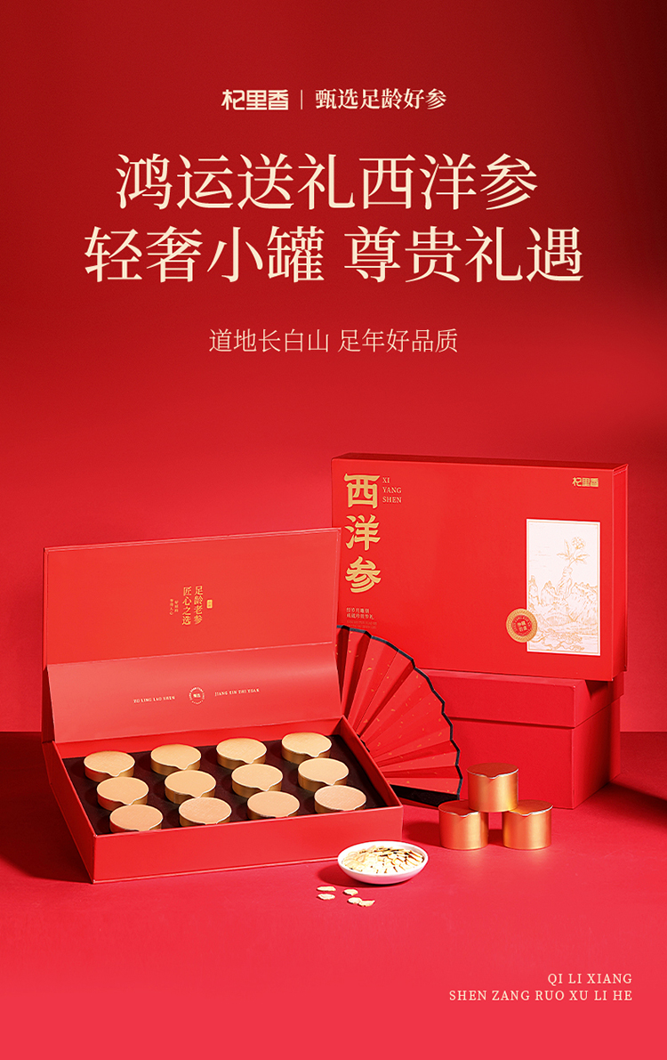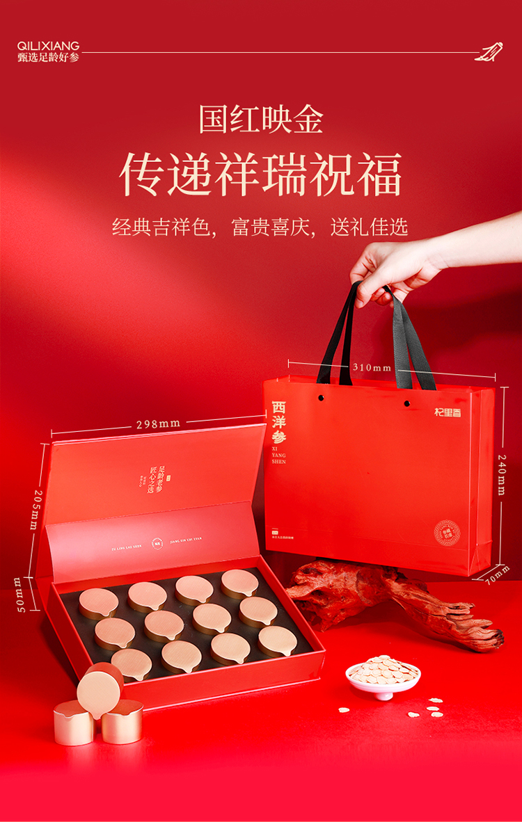 杞里香102g12罐礼盒0.8-1.0cm来财、100g12罐1.0- 1.2cm西洋参参藏若虚礼盒、168g12罐礼盒0.6-0.8cm西洋参来财礼盒长白山5年生足龄老参软枝切片参礼袋