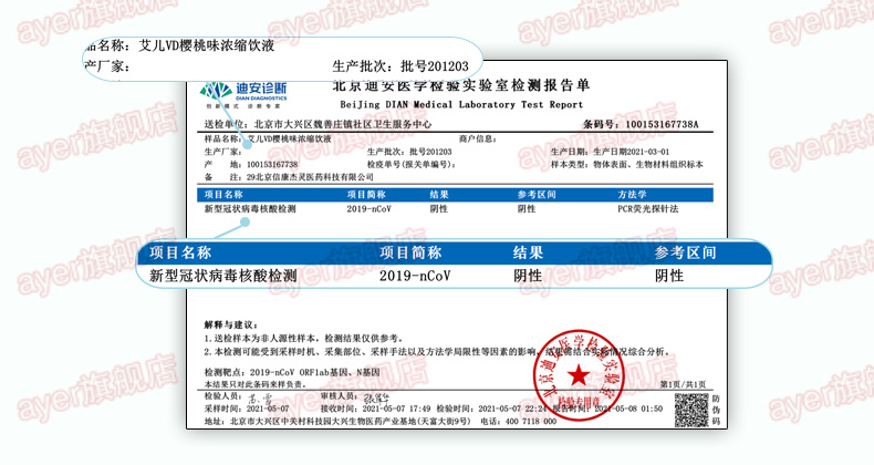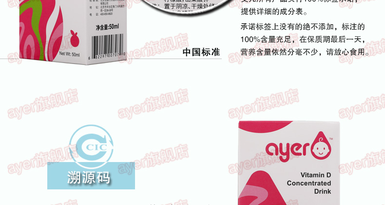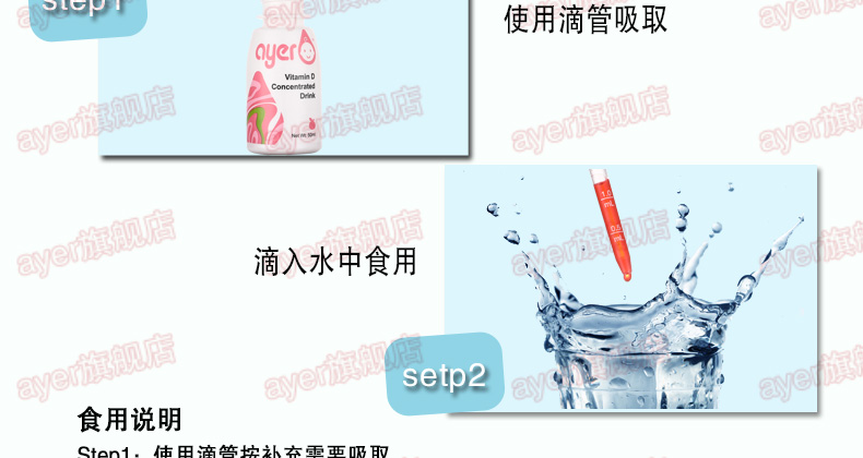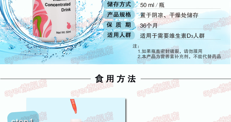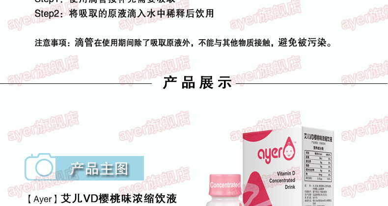 ayer艾儿VD樱桃味浓缩饮液维生素D3,50ml/瓶