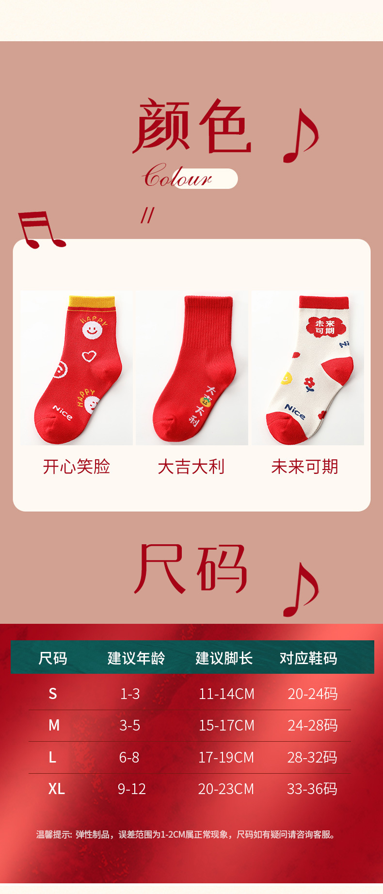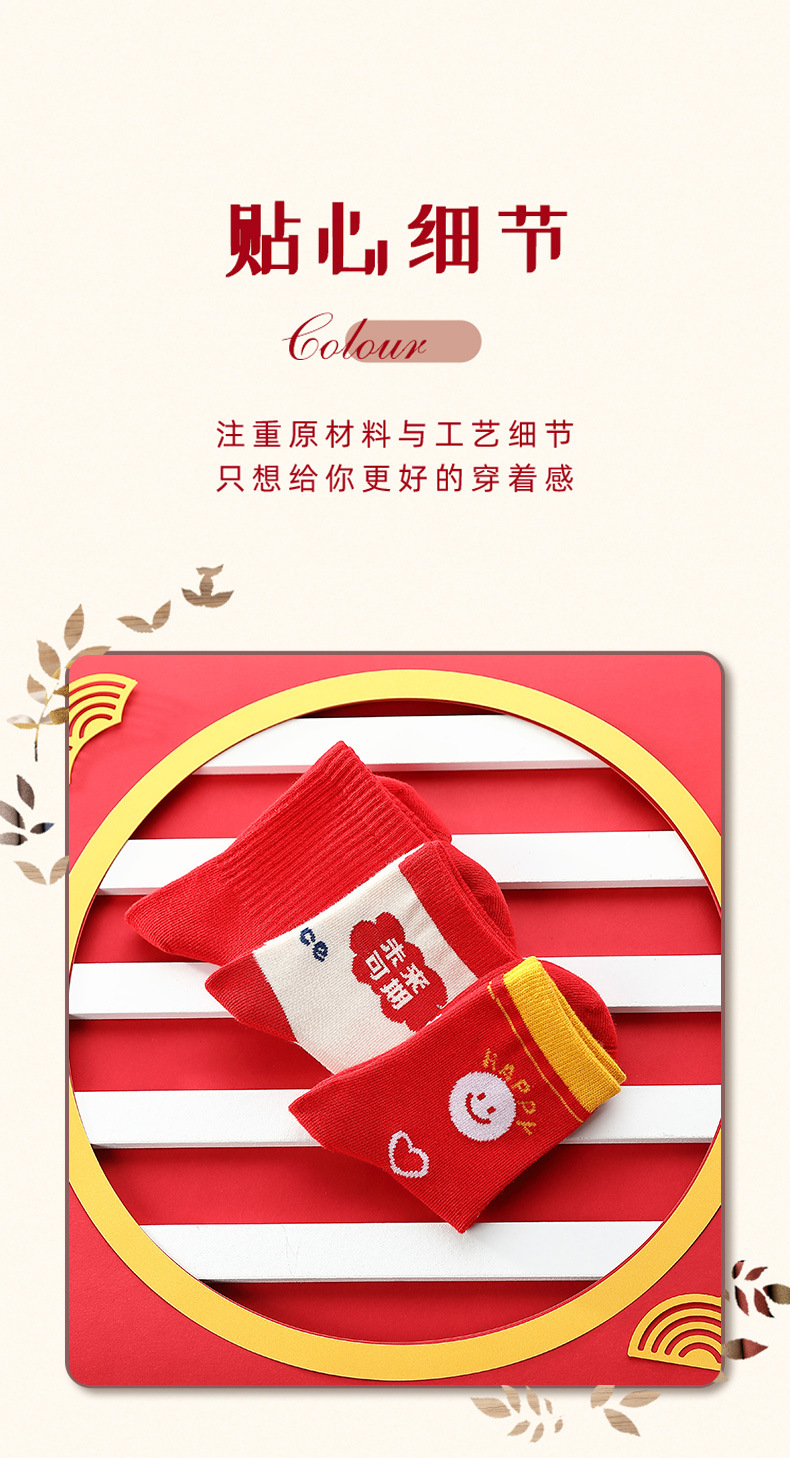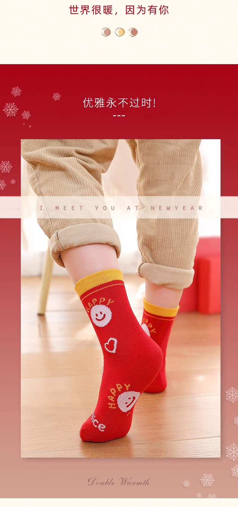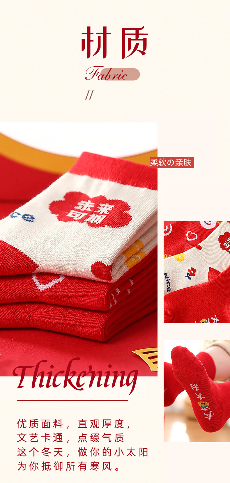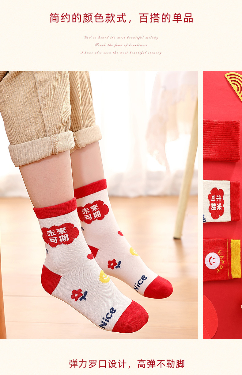 「三双装!新年萌兔袜」儿童袜子秋冬中筒袜红色喜庆新年款男女童中大童宝宝童装婴儿棉袜
