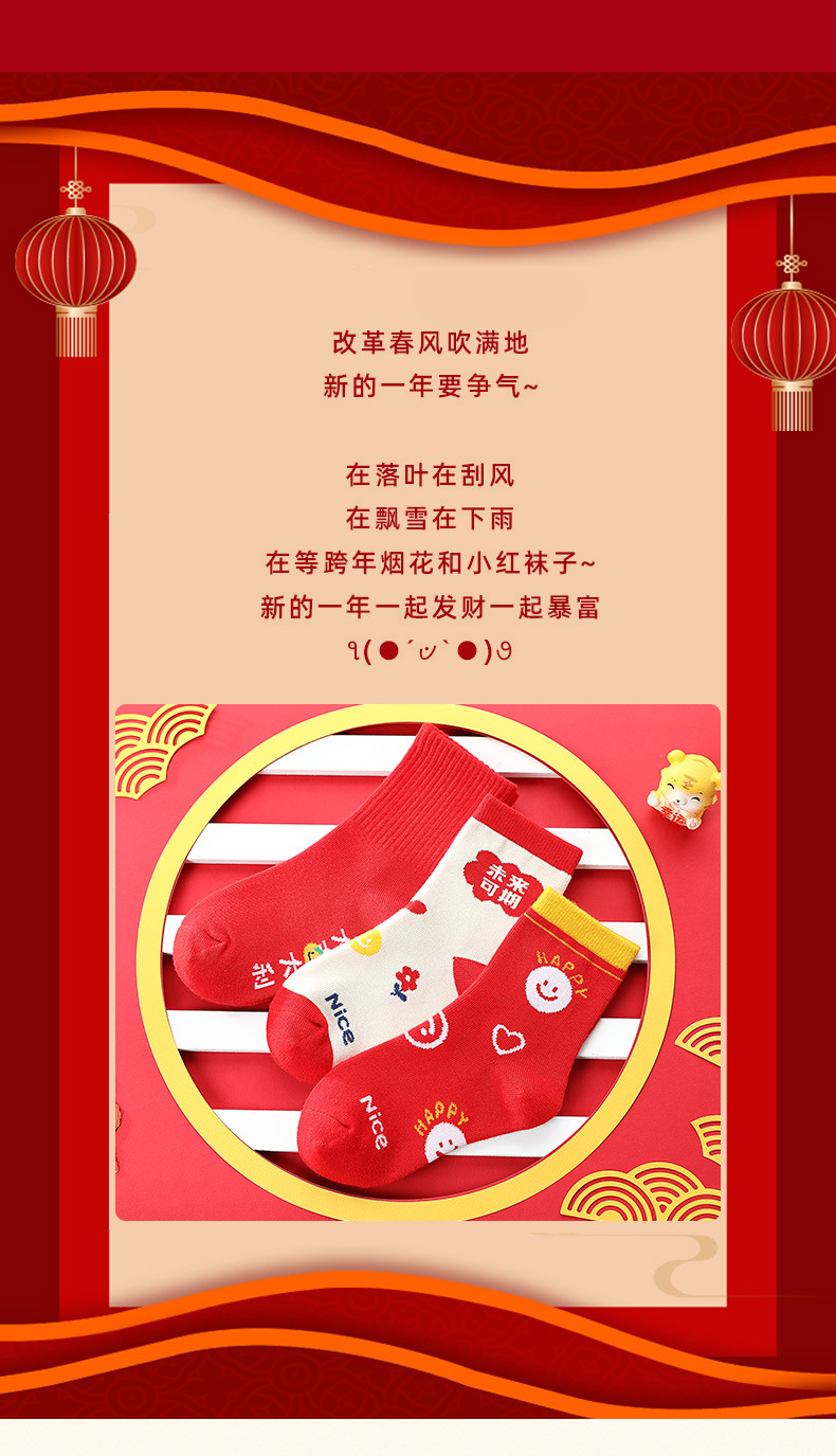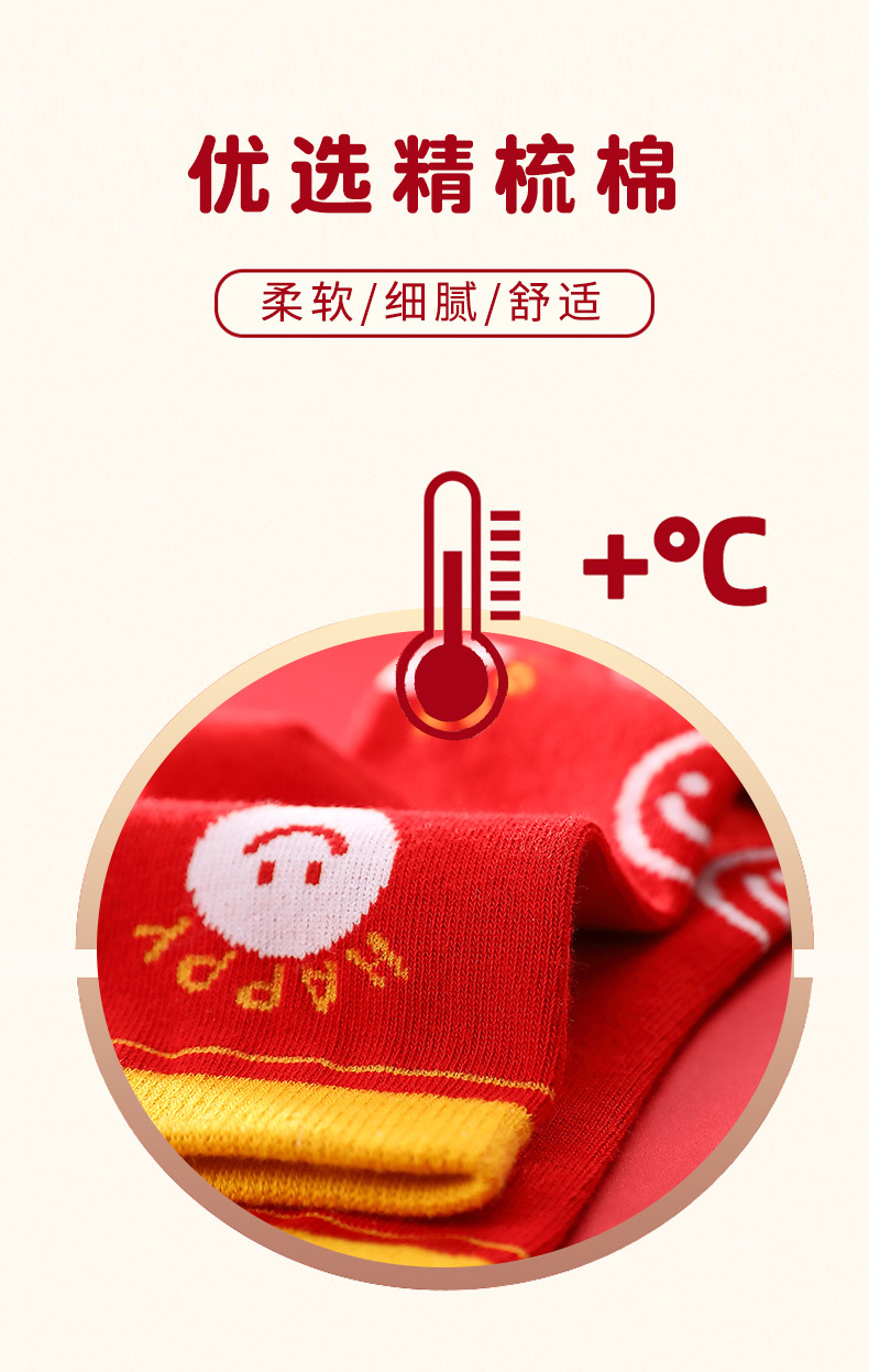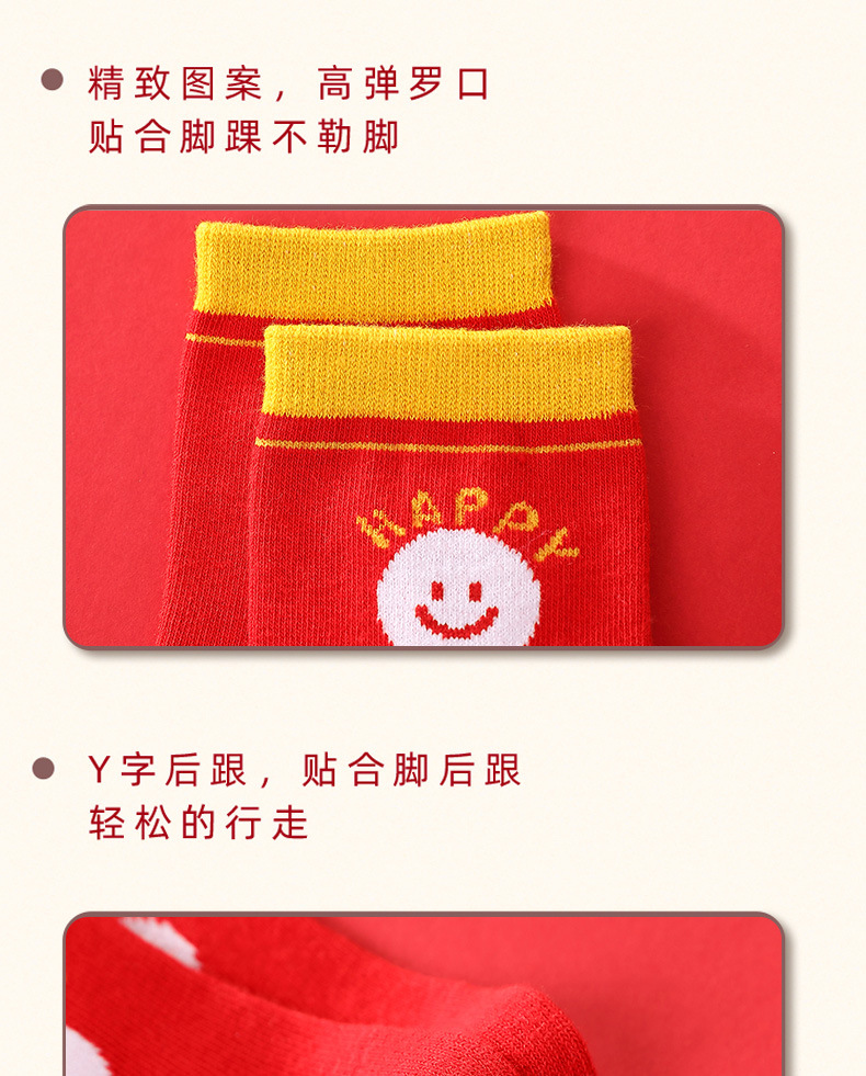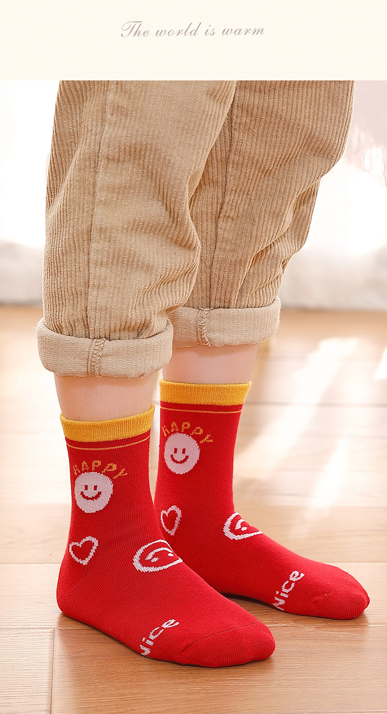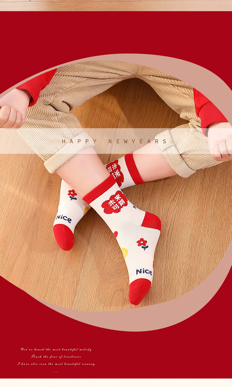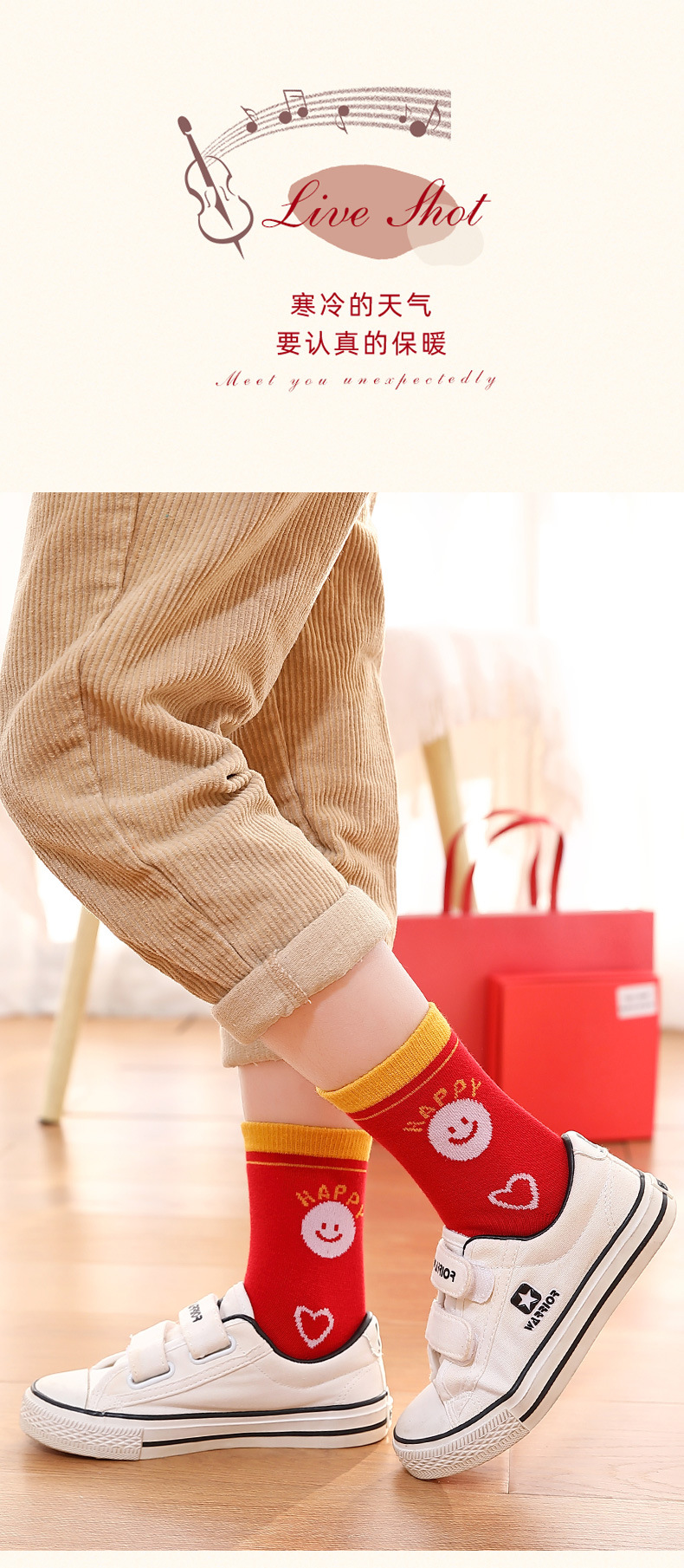 「三双装!新年萌兔袜」儿童袜子秋冬中筒袜红色喜庆新年款男女童中大童宝宝童装婴儿棉袜