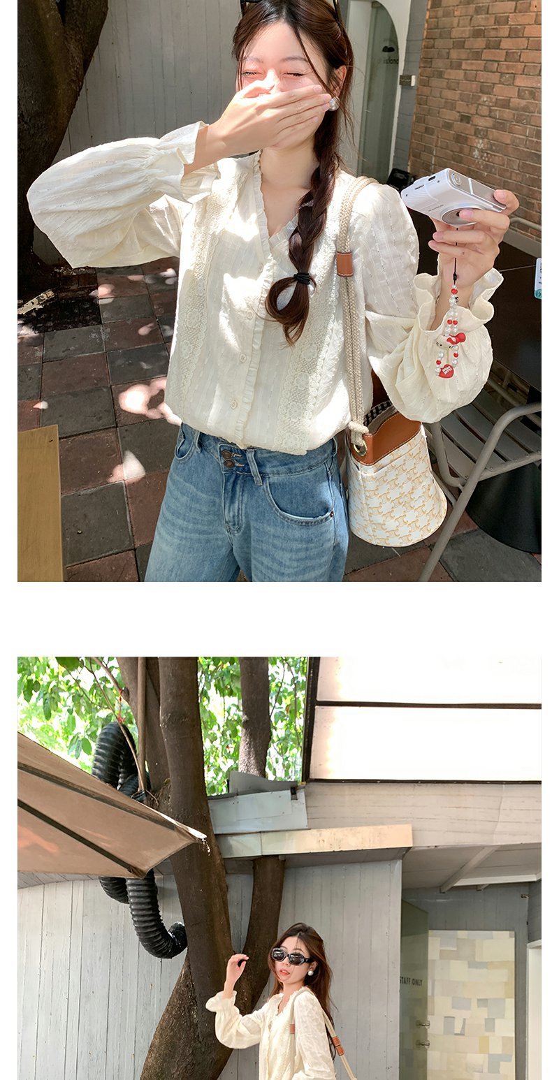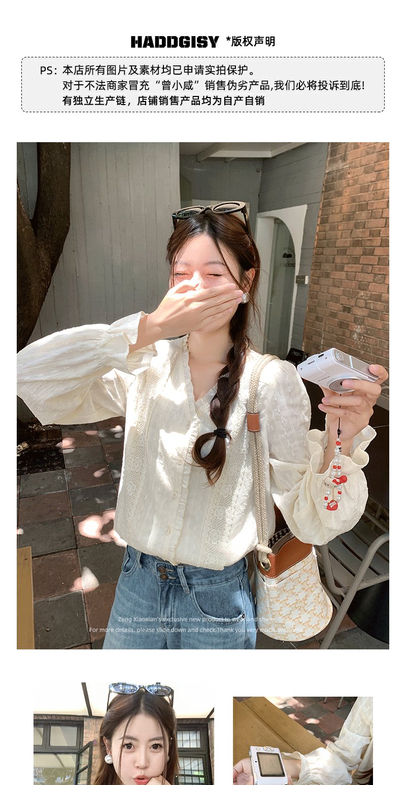 <曾小咸推荐>法式泡泡袖花边衬衫