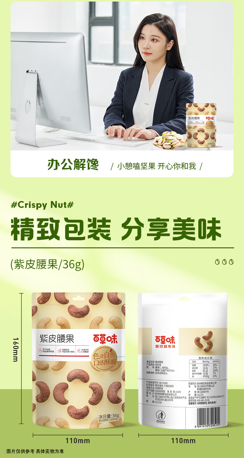 百草味黄瓜味腰果25g百草味开心果30g百草味蔬菜干60g百草味原切薯条原味30g百草味紫皮腰果36g