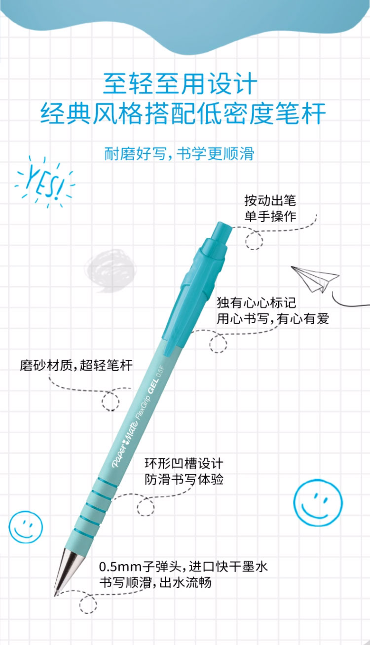✅ 磨砂防滑笔身,贴合手握习惯,长时间书写不累手