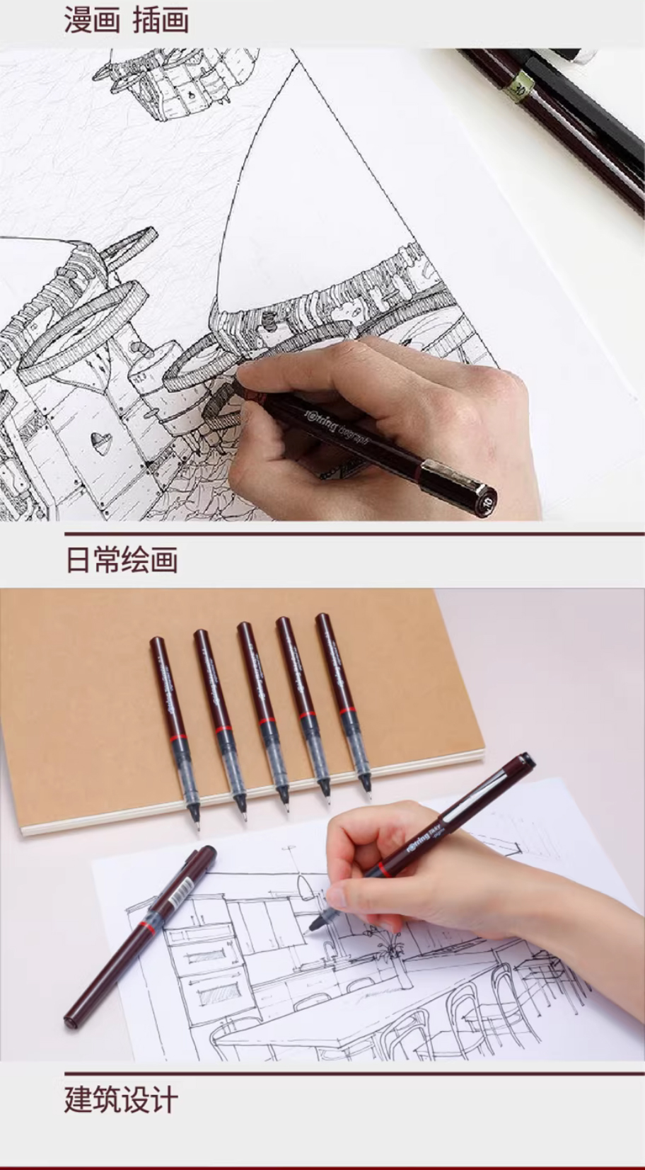 ✅ 三档笔尖规格:0.1mm描细节、0.2mm写小字/画简笔、0.3mm勾轮廓/日常书写
