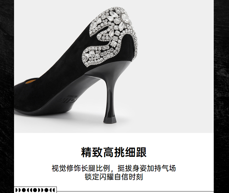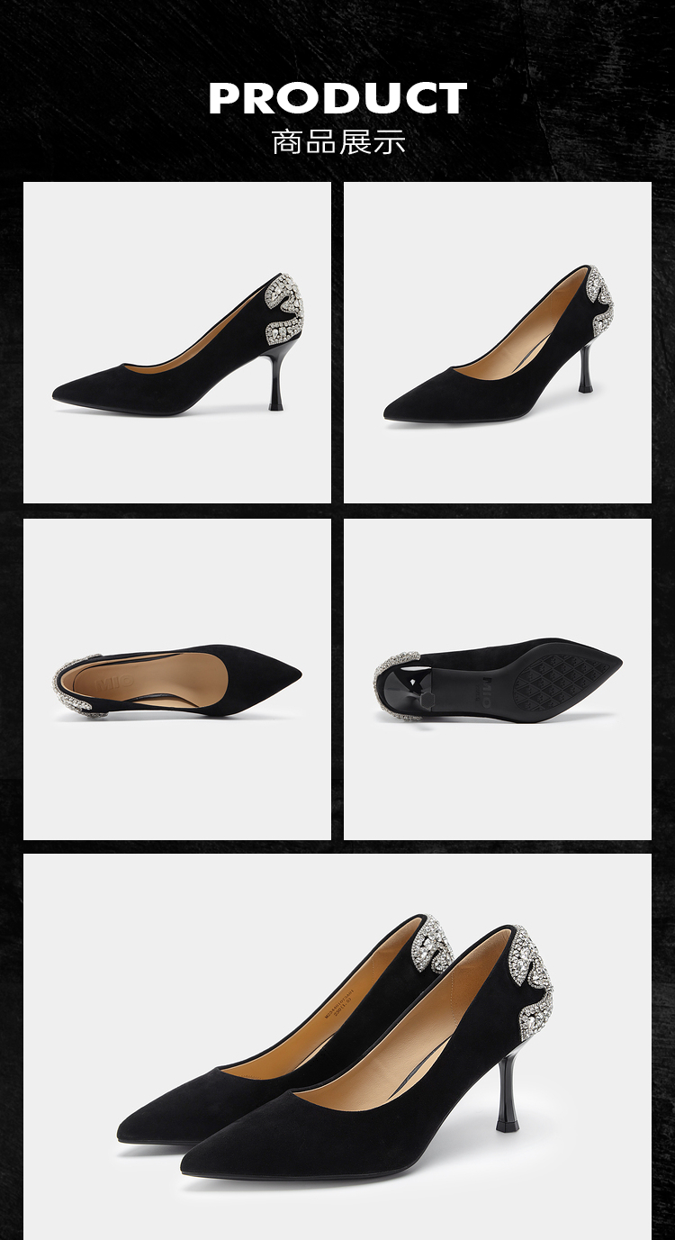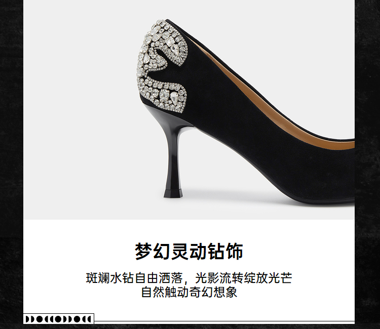 MIO米奥尖头浅口羊皮婚鞋优雅灵动钻饰细跟宴会高跟鞋质感女鞋M234401073